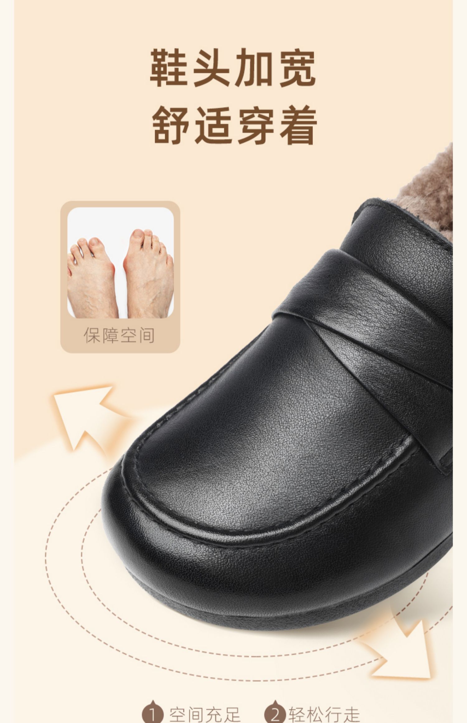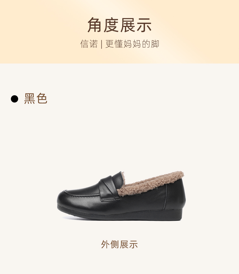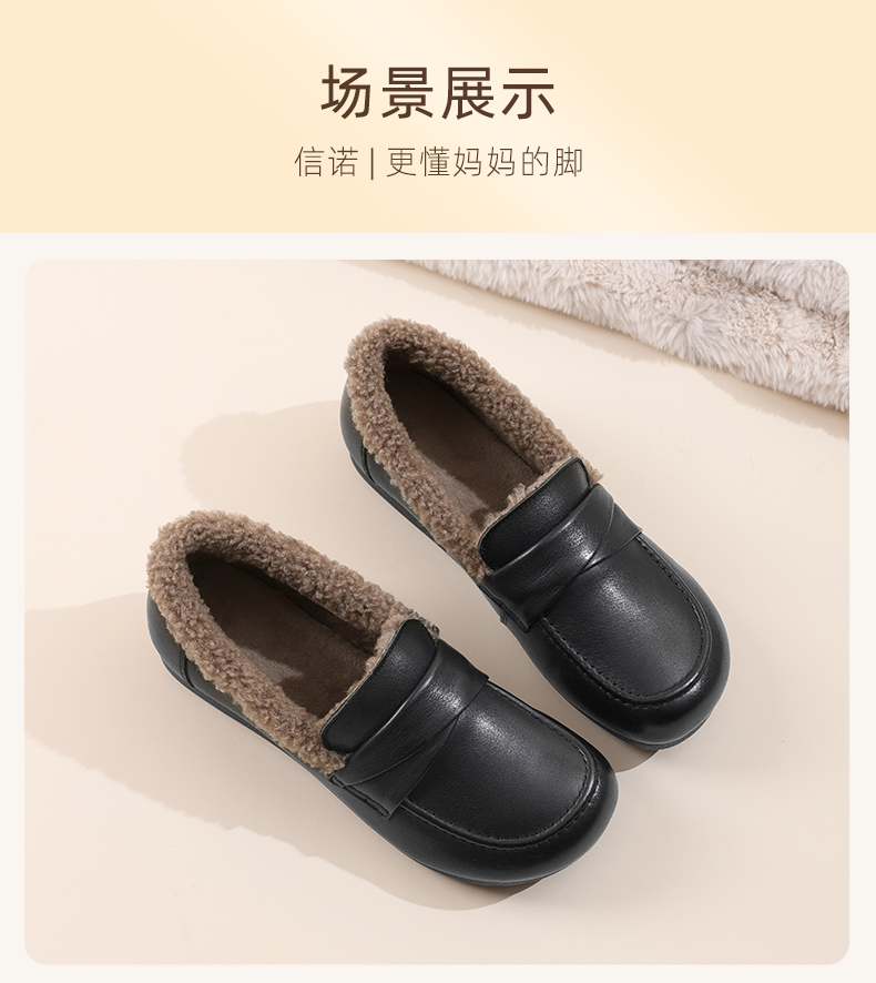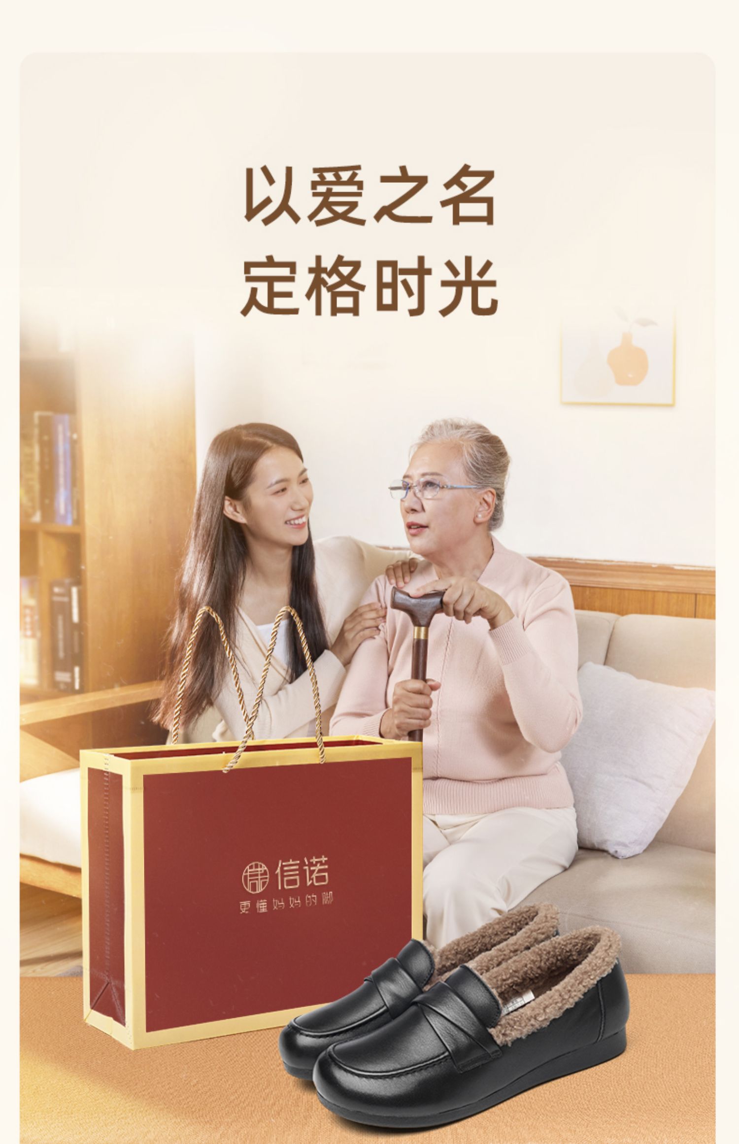 信诺真皮拇指外翻宽头女鞋冬季新款加绒棉鞋中老年平底皮鞋妈妈鞋M5992-32