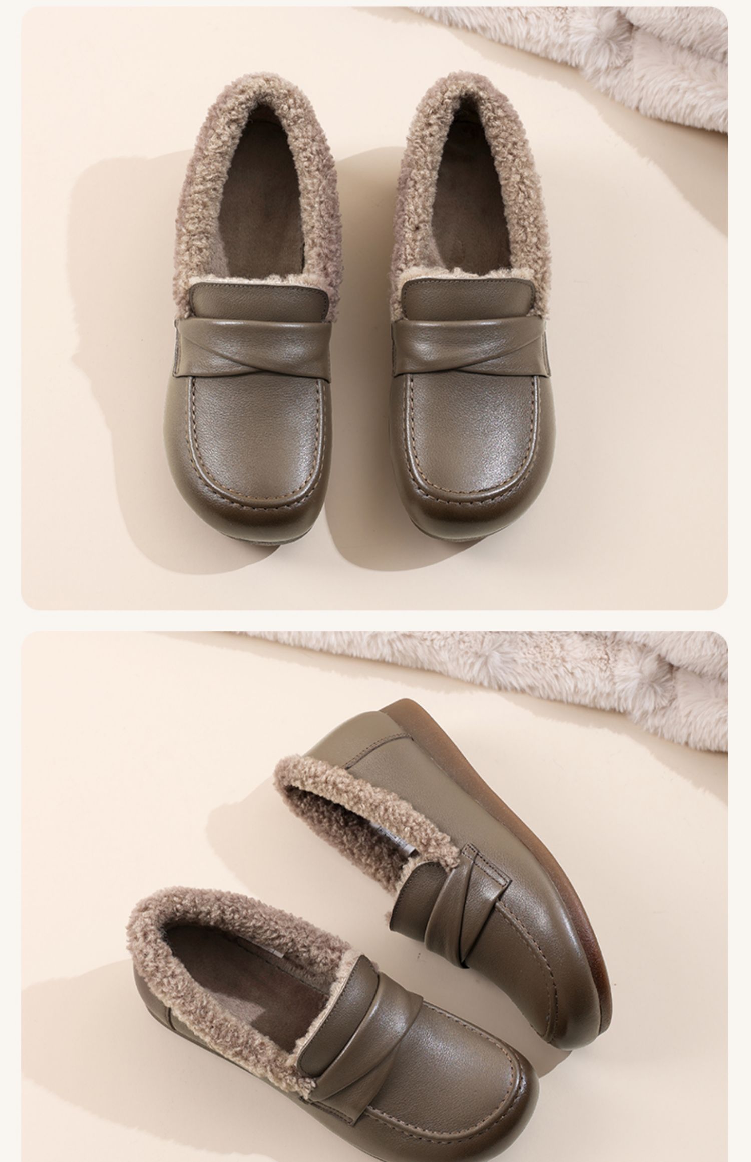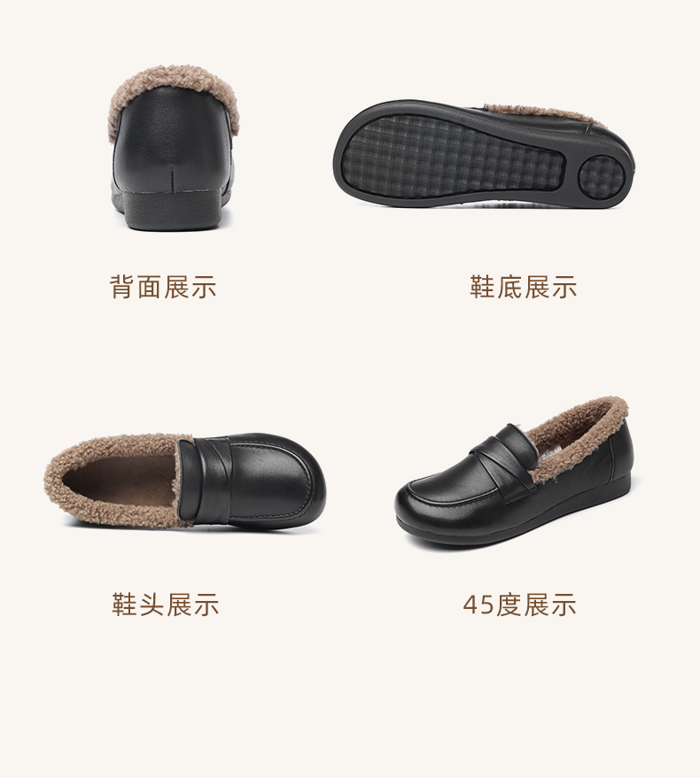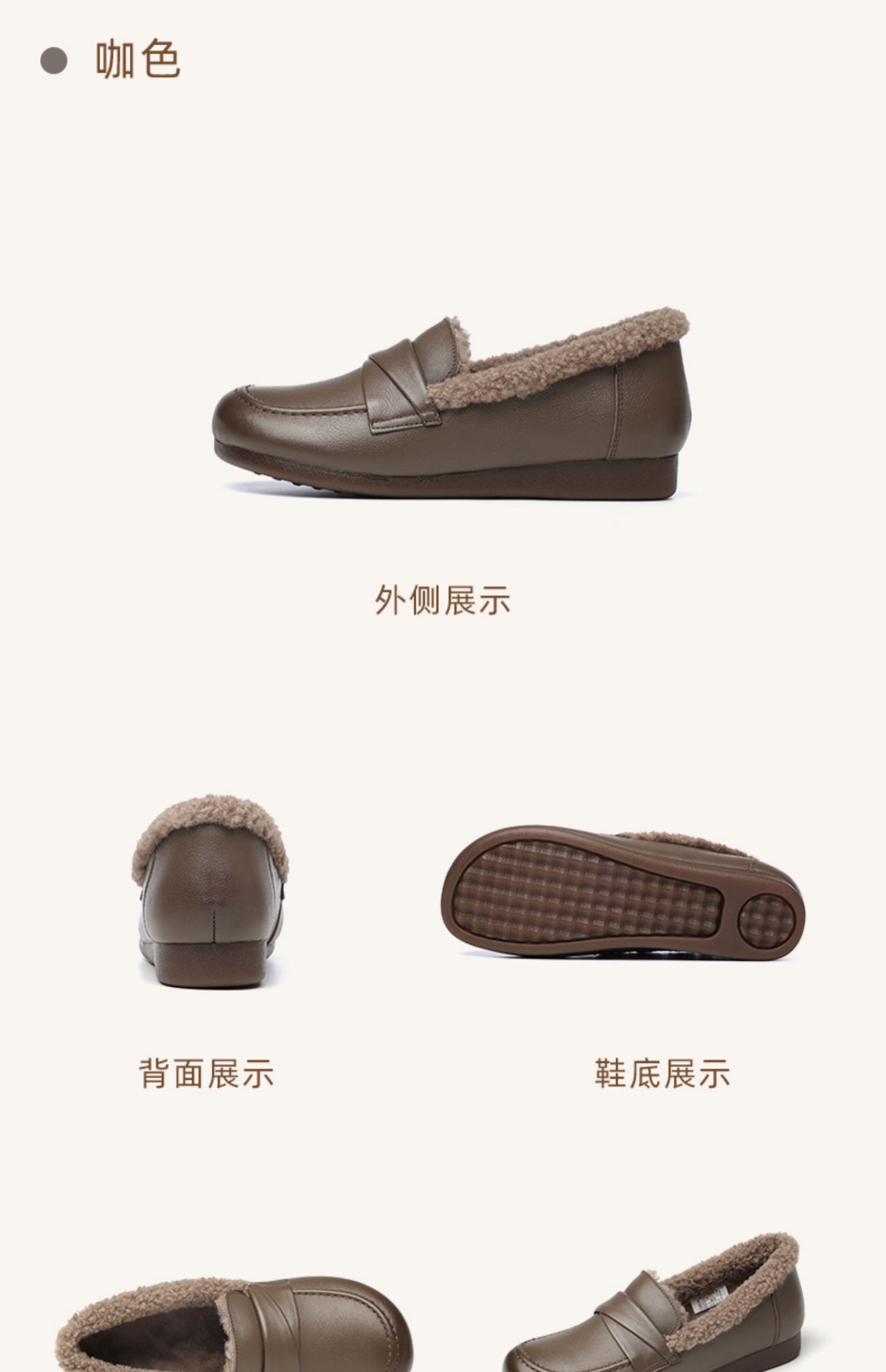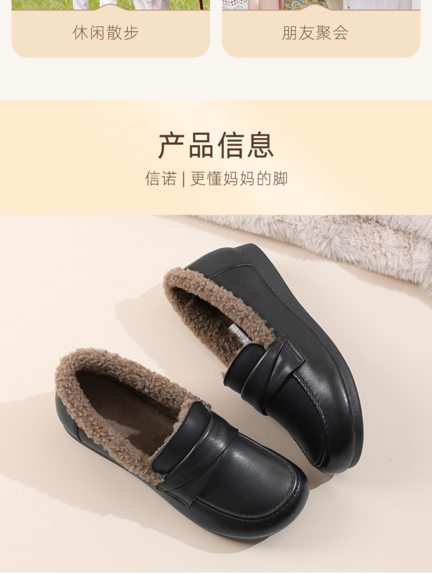 信诺真皮拇指外翻宽头女鞋冬季新款加绒棉鞋中老年平底皮鞋妈妈鞋M5992-32