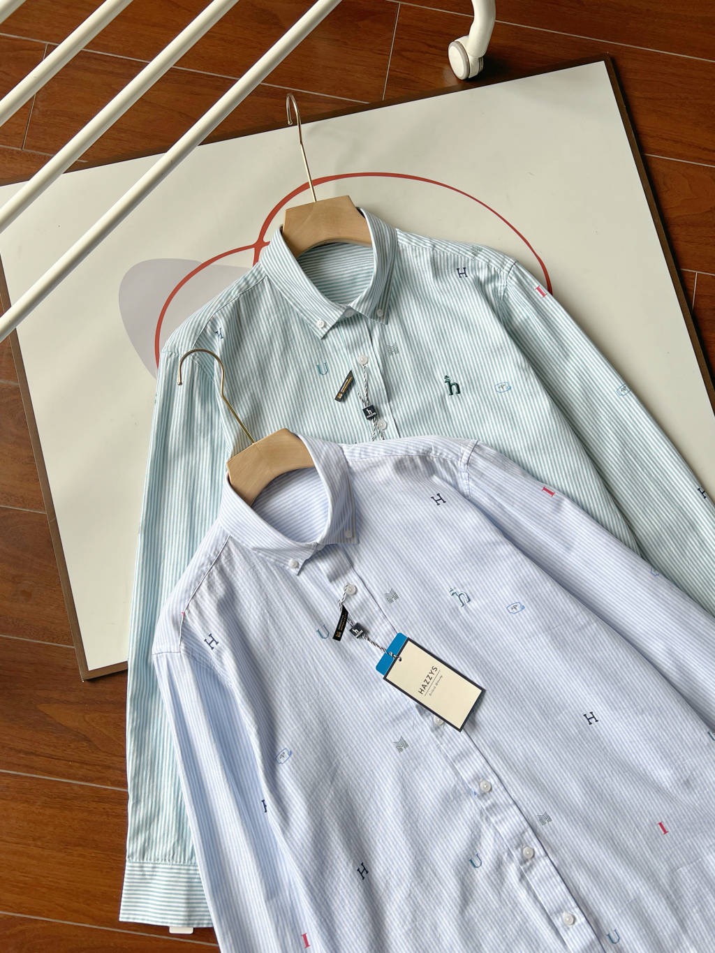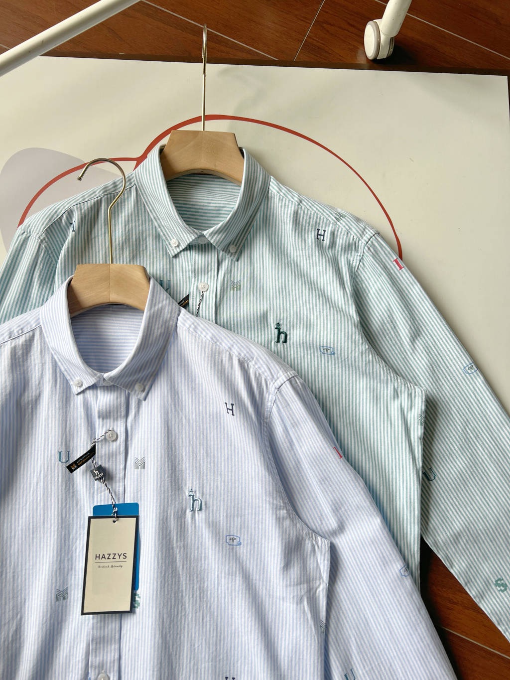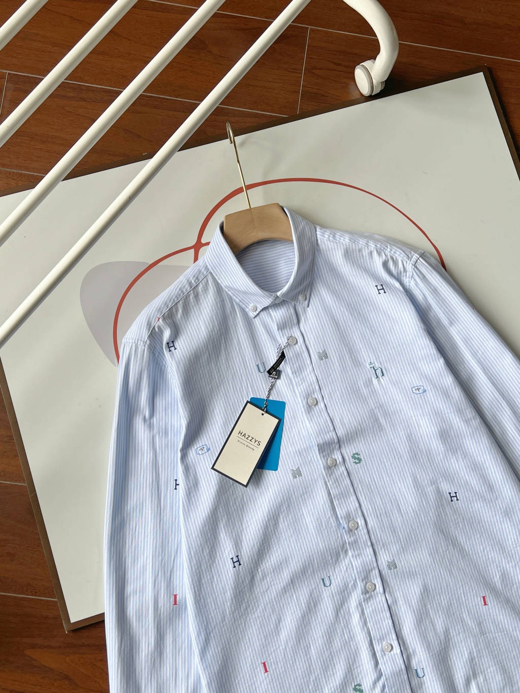 H@ZZYS 字母提花条纹纯棉长袖衬衫 Z-15079