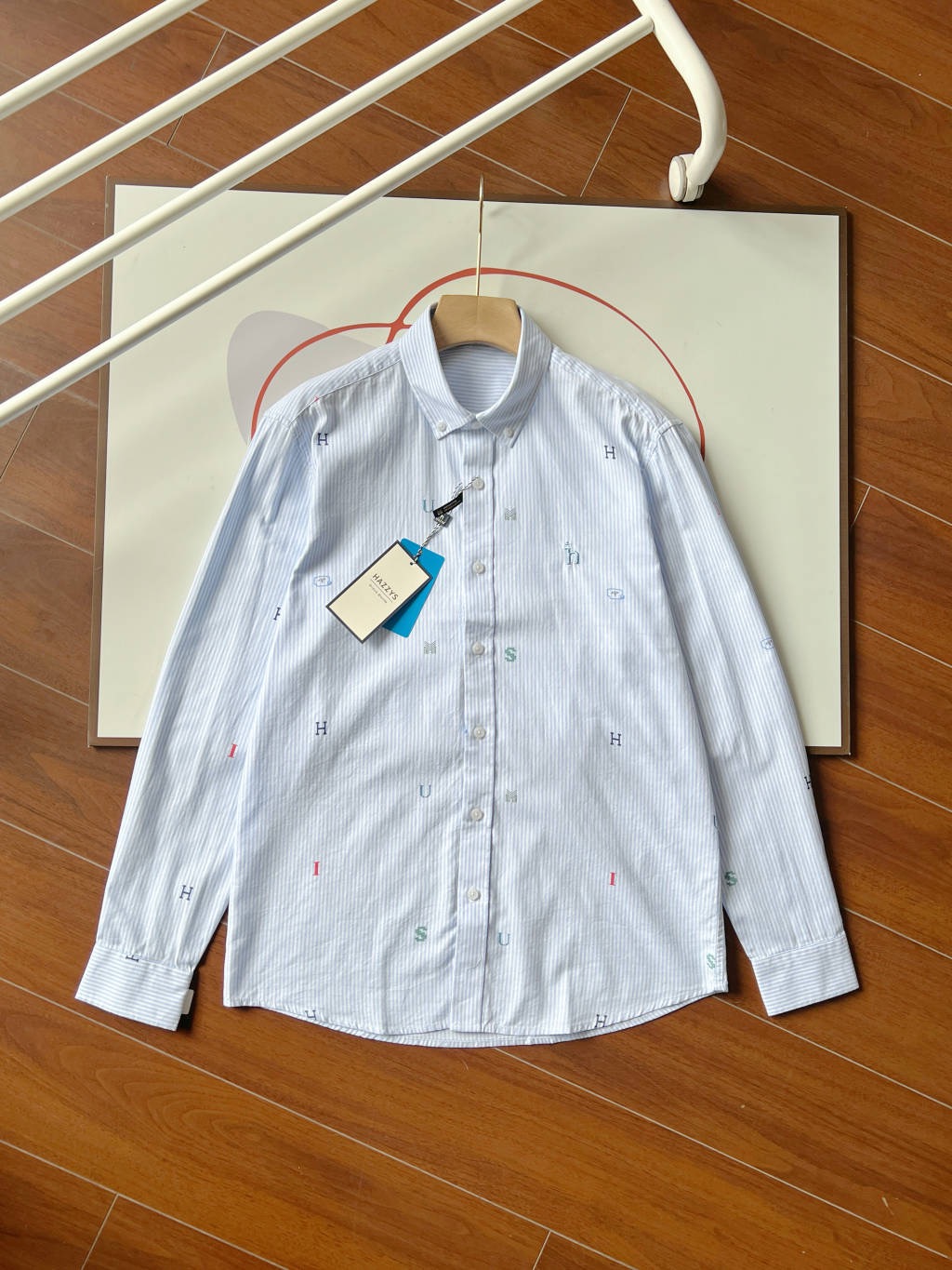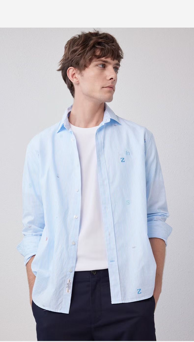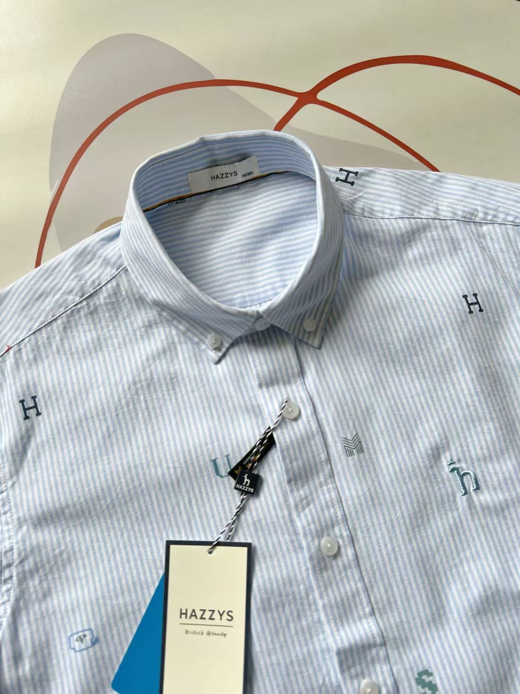 H@ZZYS 字母提花条纹纯棉长袖衬衫 Z-15079