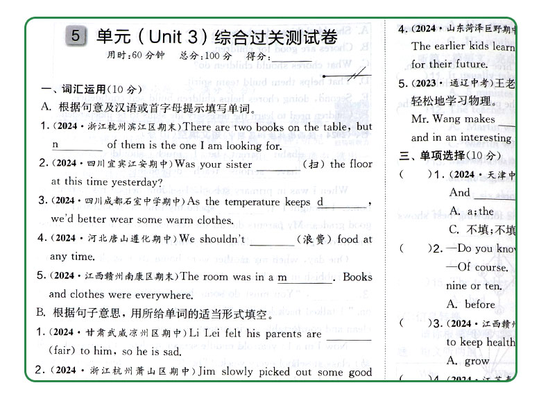 2025春 【新目标版】八年级英语(下) 实验班提优大考卷