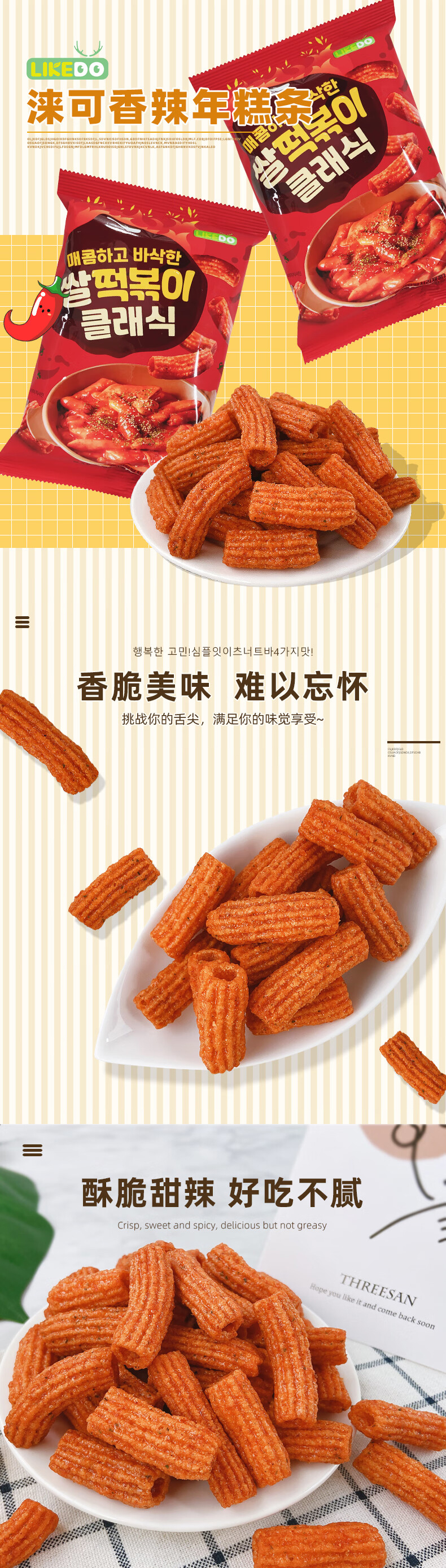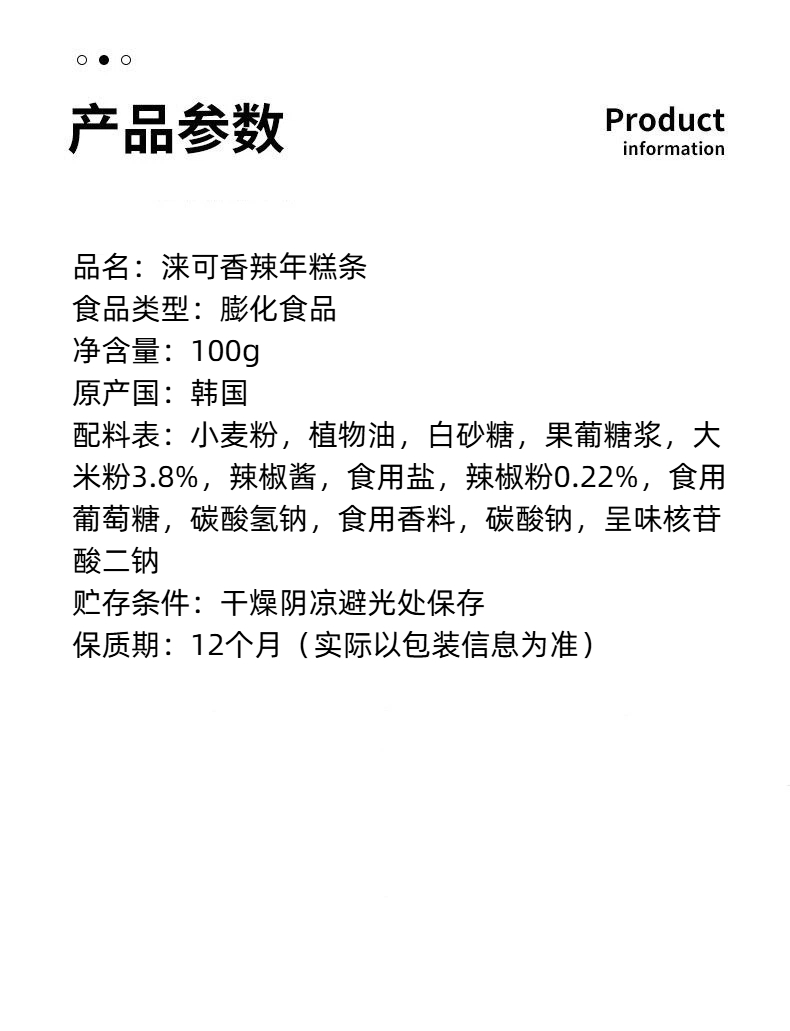 韩国进口涞可香辣年糕条100g