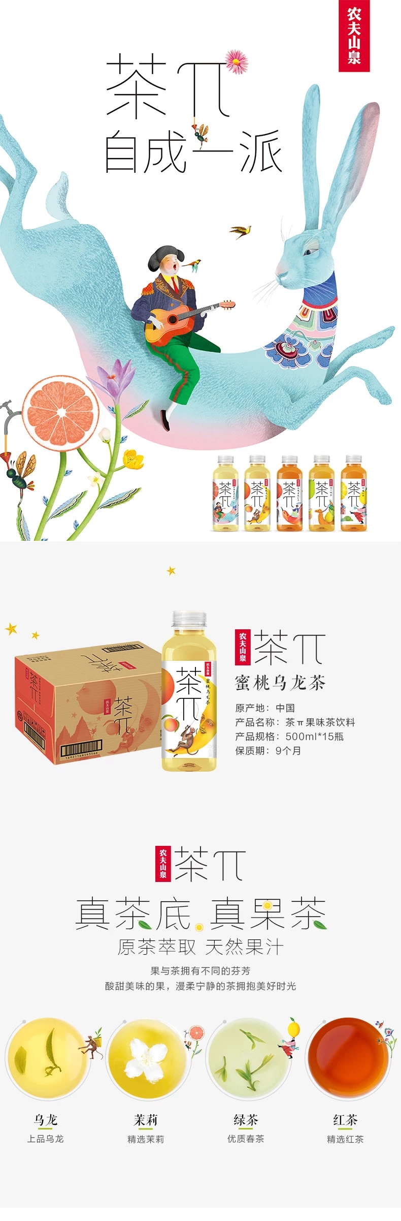 农夫山泉茶π蜜桃乌龙茶500ml*15瓶