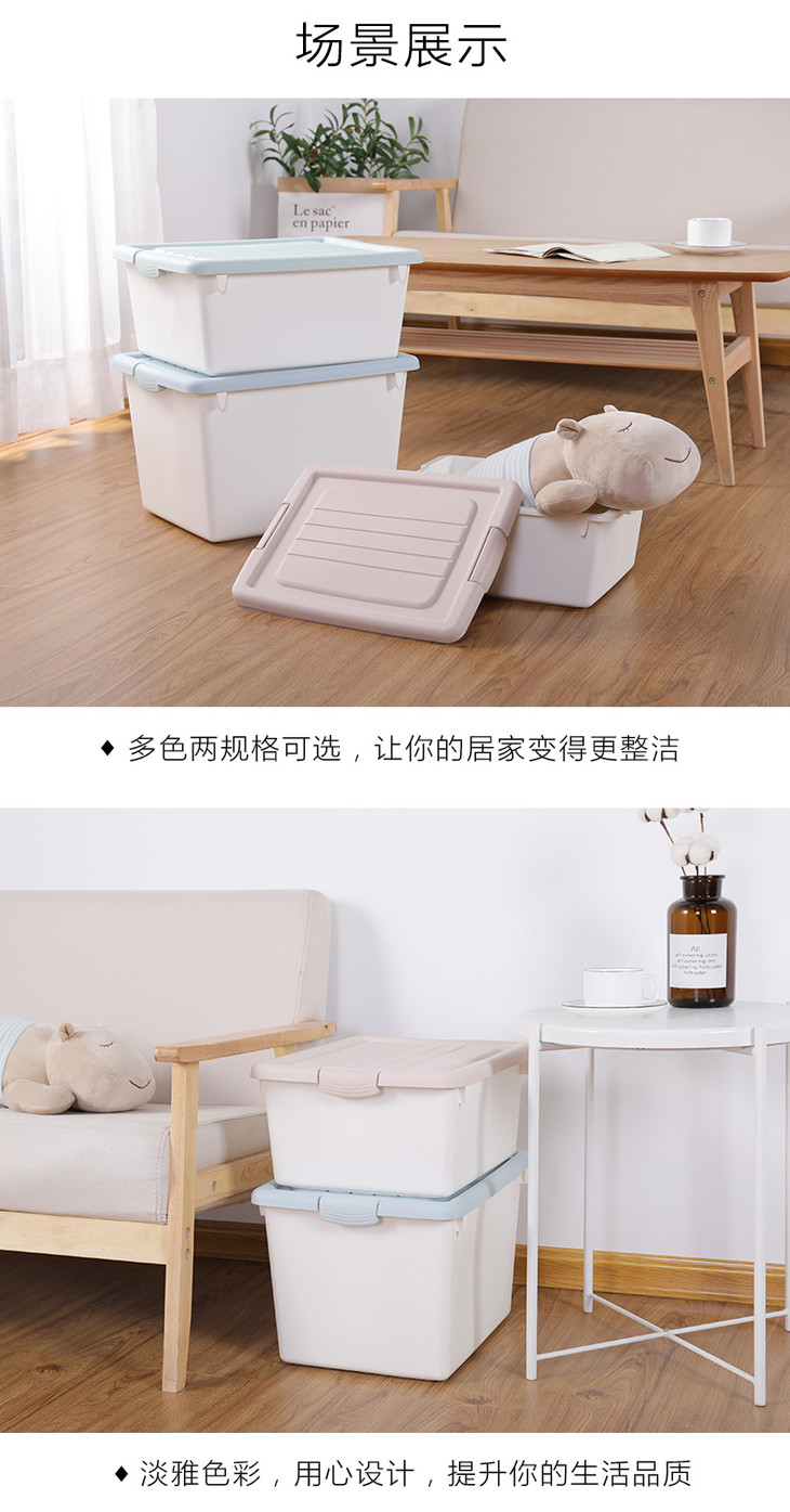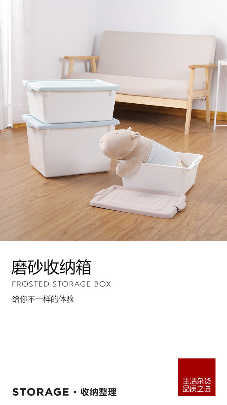 塑料收纳箱磨砂质感家用透明有盖衣服零食书籍整理箱