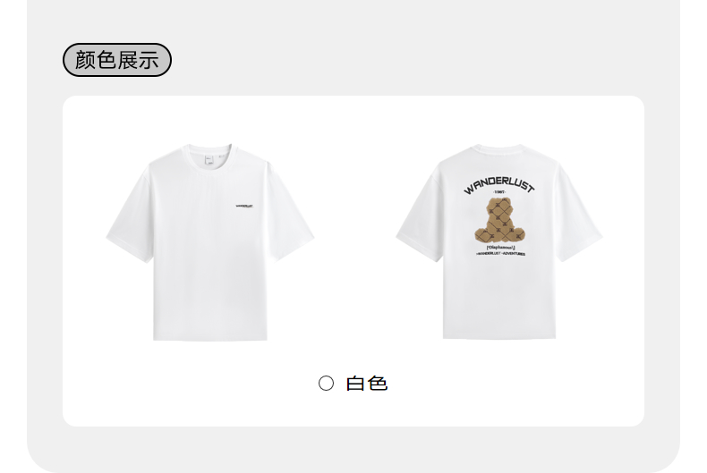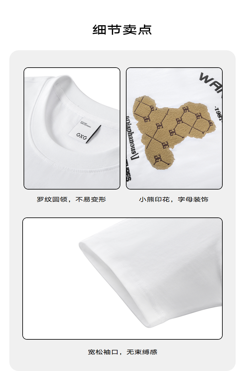 GXG男装 白色小熊印花潮流时尚圆领短袖T恤男生上衣 24年夏季热卖