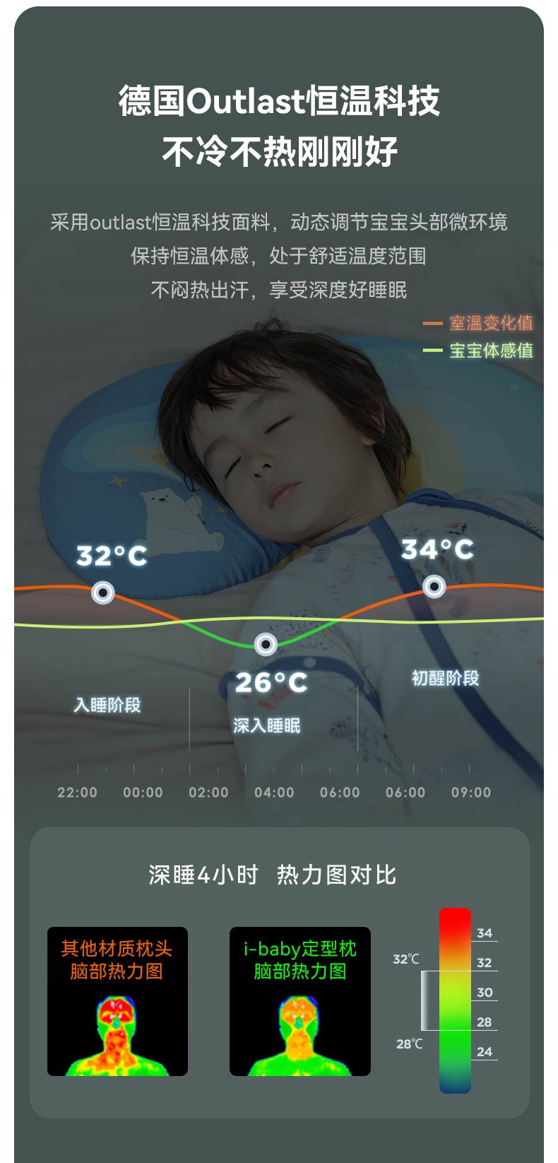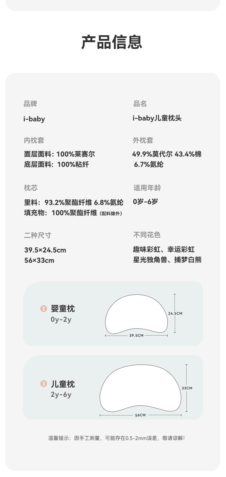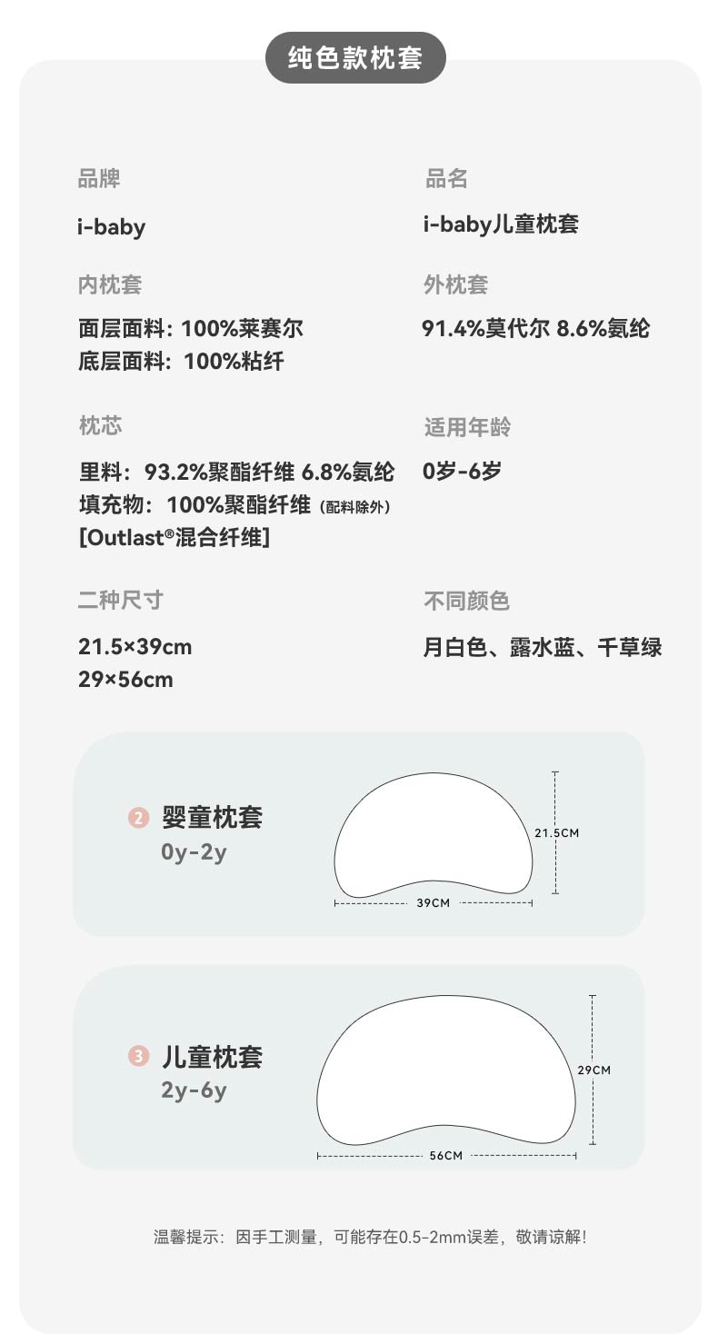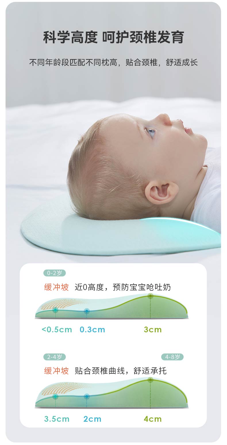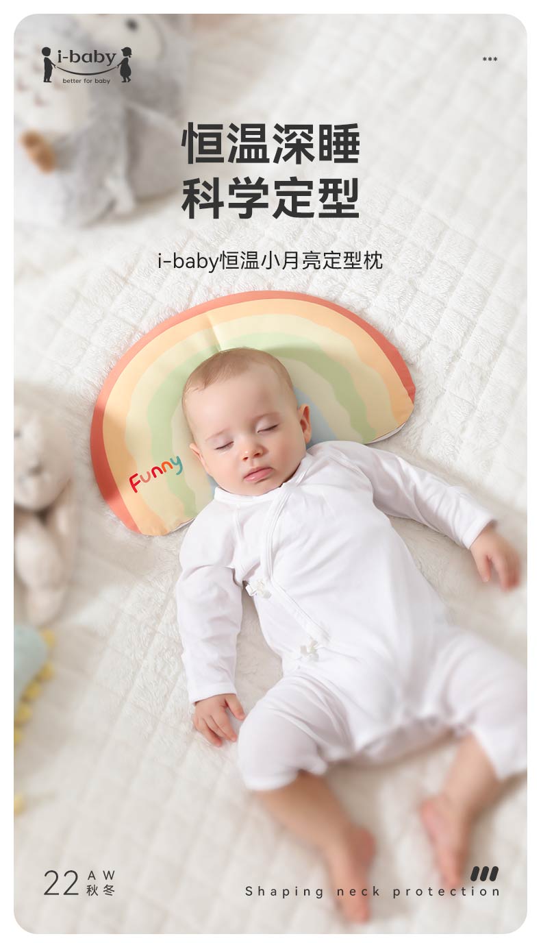 【QHXJ】i-baby恒温深睡月亮定型枕 1-6岁宝宝儿童枕头透气