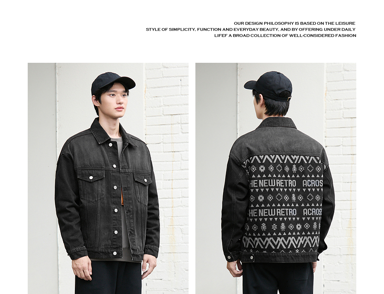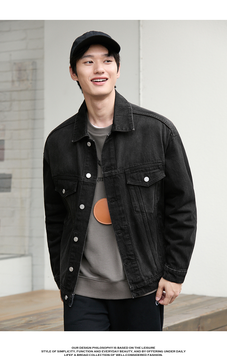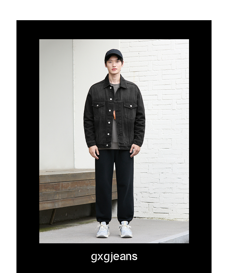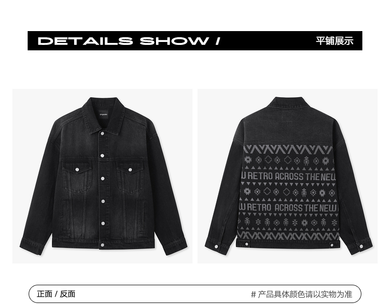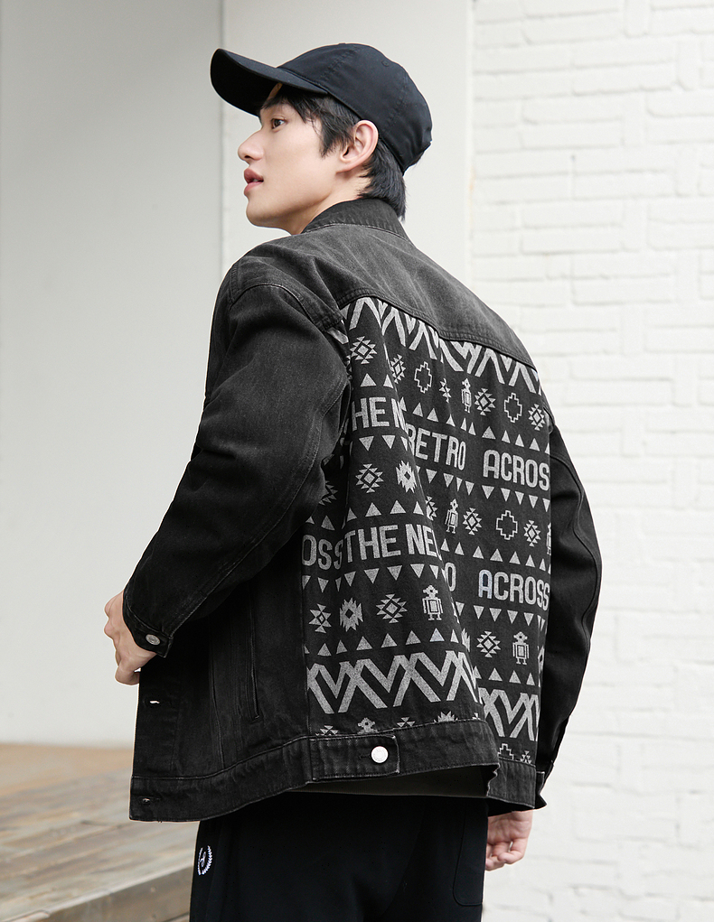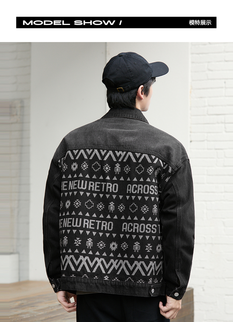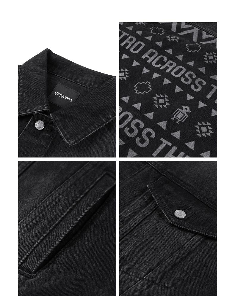 gxgjeans男装秋季个性印花夹克黑色翻领牛仔夹克外套男
