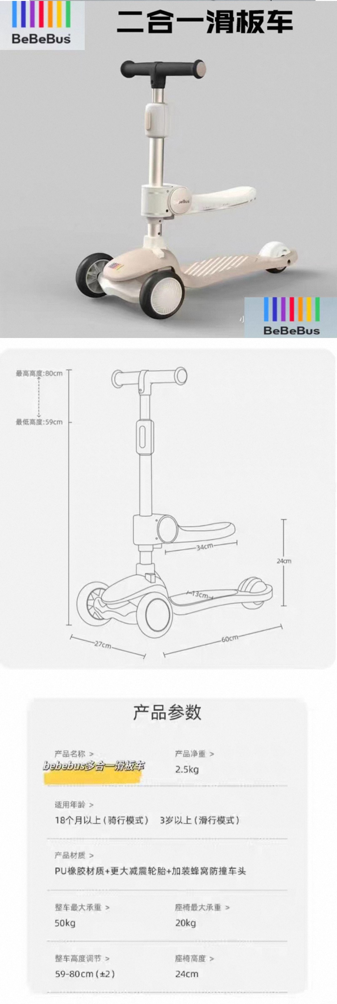 bebebus二合一儿童滑板车1一3岁5岁可坐可骑滑步车宝宝平衡车