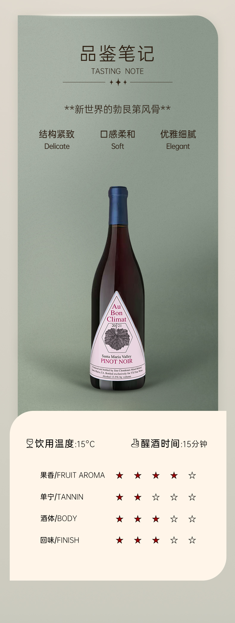 奥邦酒庄圣玛利亚黑皮诺 2021 Au Bon Climat Santa Maria Pinot Noir TX Private Label 2021
