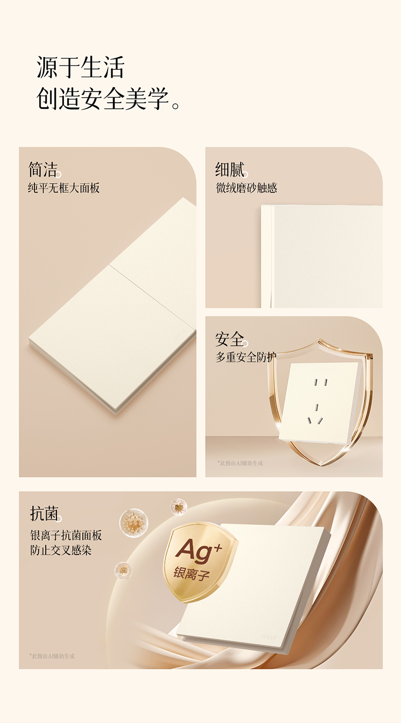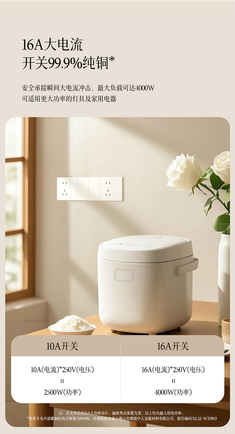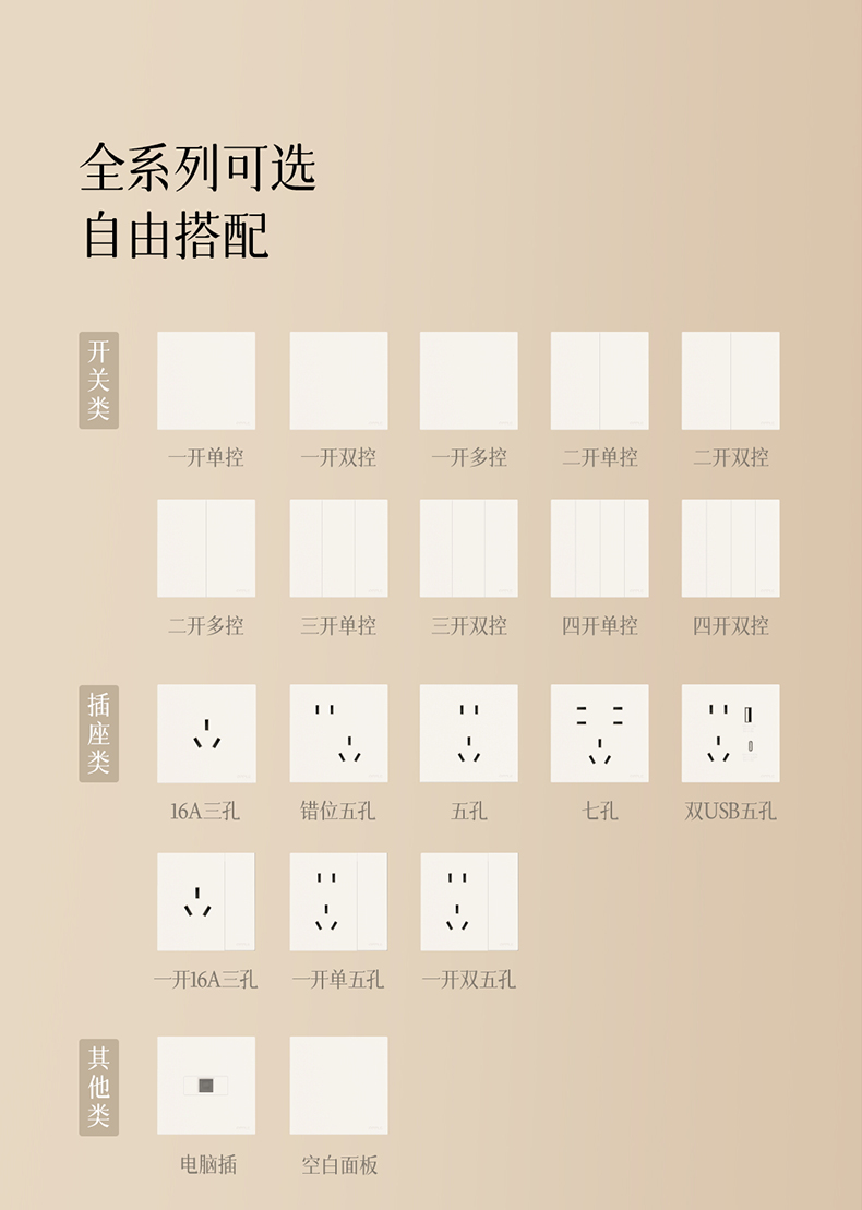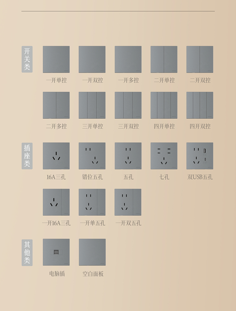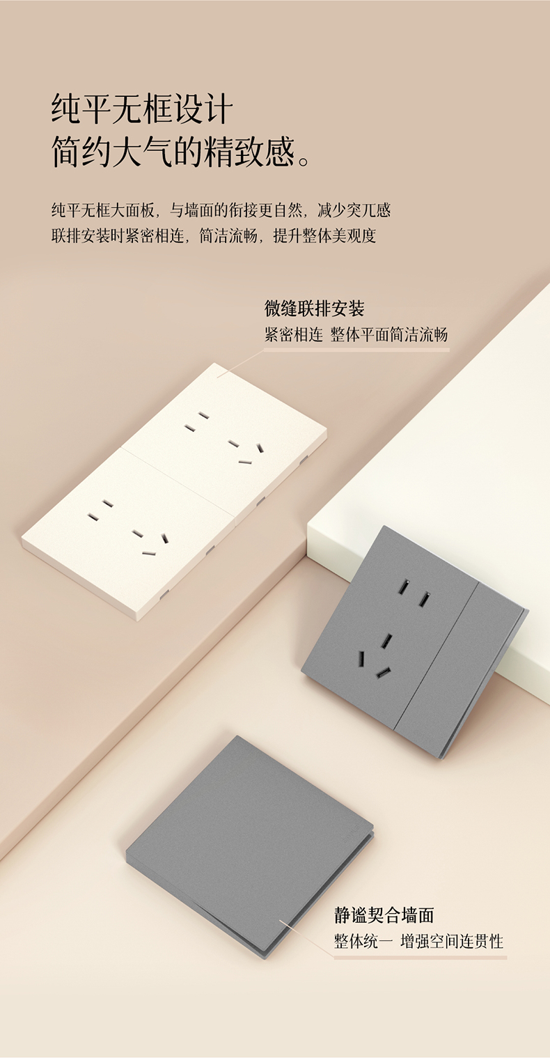 欧普(OPPLE)纯平无边框开关插座面板W80悦颜16a五孔家用二开多控86型墙壁