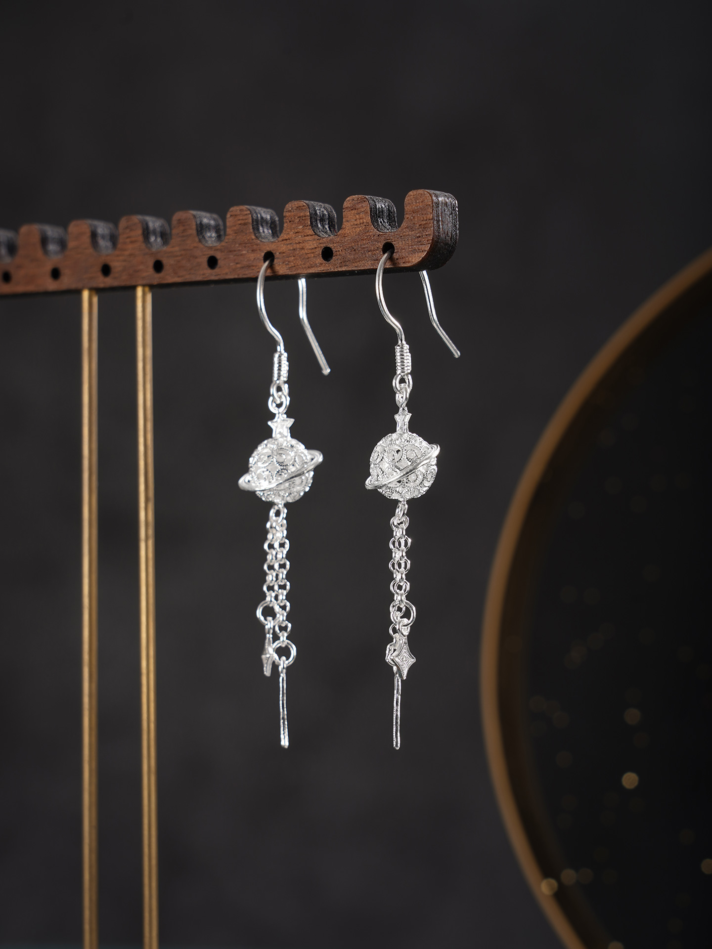 【寓意】:以银花丝工艺勾勒星辰轨迹,象征爱意绵长、命运相系,亦含天地人和、圆满无缺的美好祈愿。