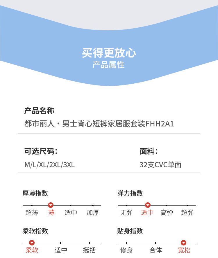 都市丽人超值精选男士棉质背心套装薄32支CVC单面无袖类FHH2A1