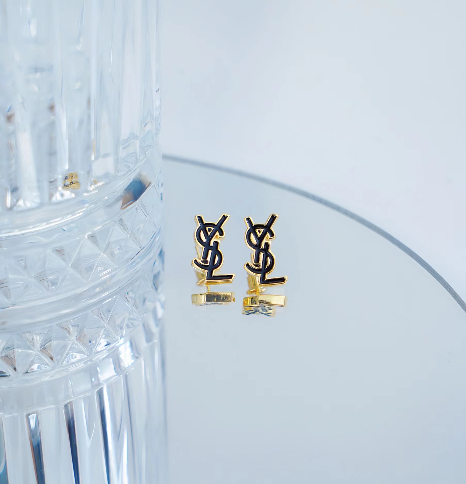 L黑色镶边字母耳钉