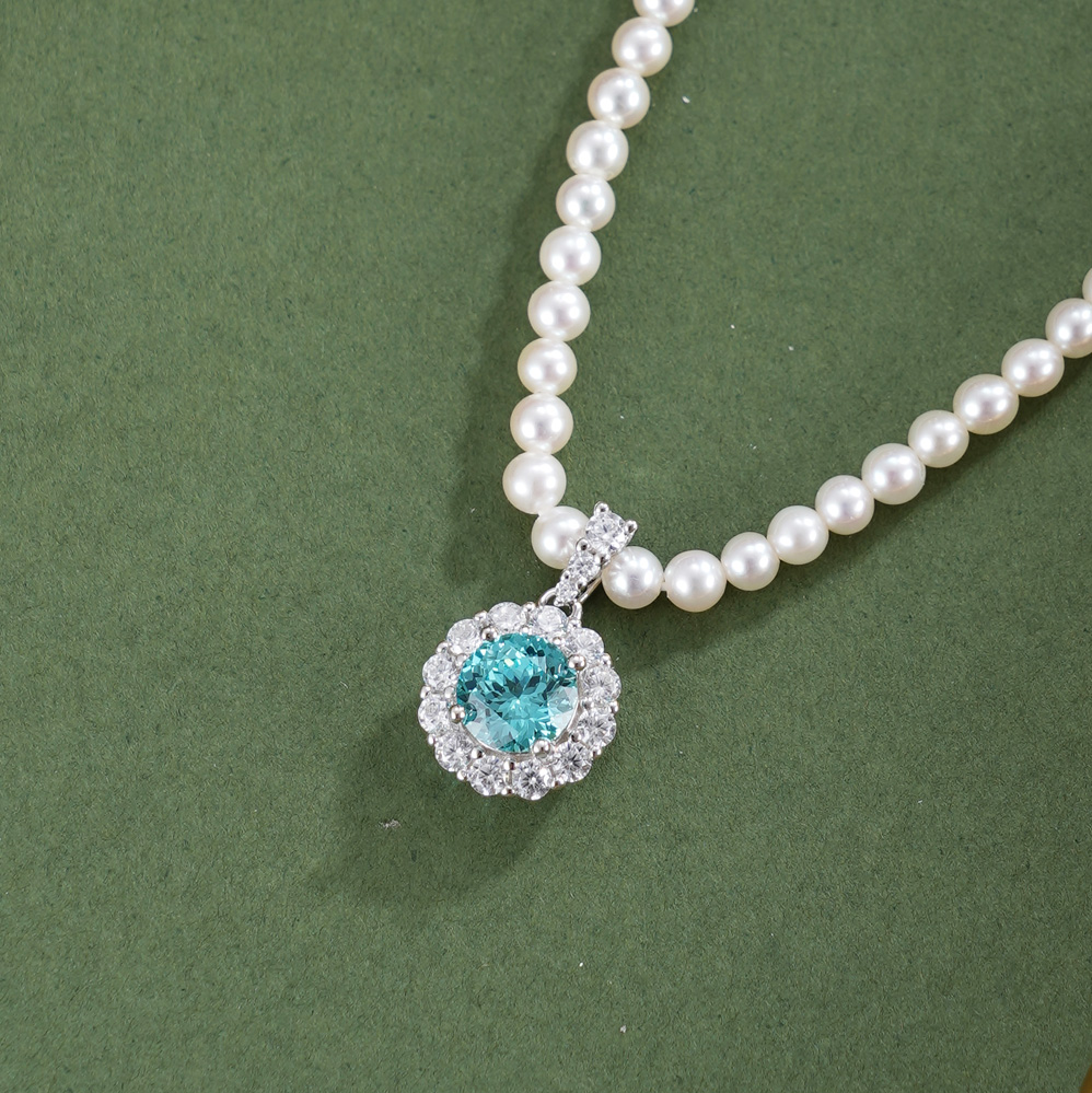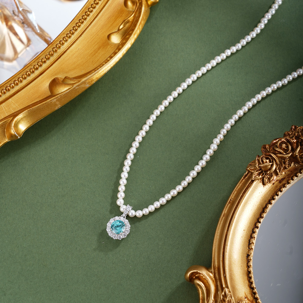 子佩集【蓝海花梦】银S925珍珠惜王妃项链【ZZXL020】2.8mm珠蓝太阳花2601