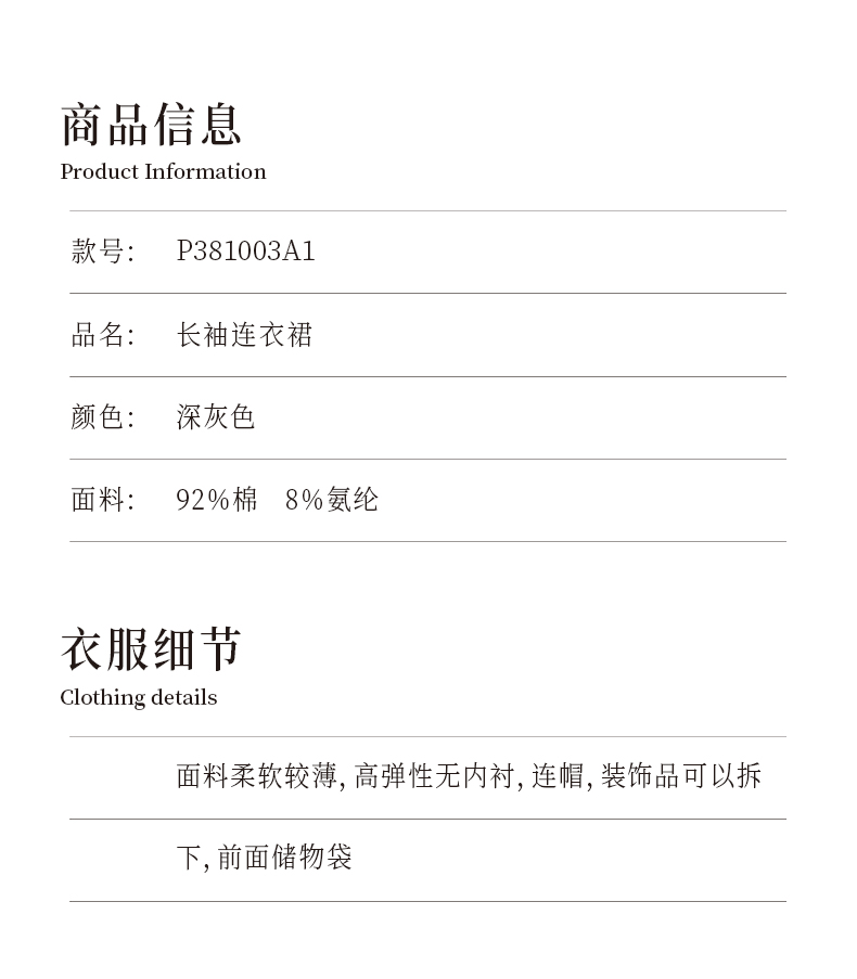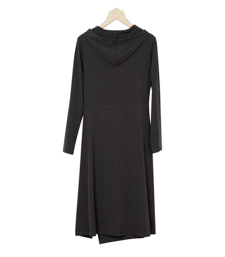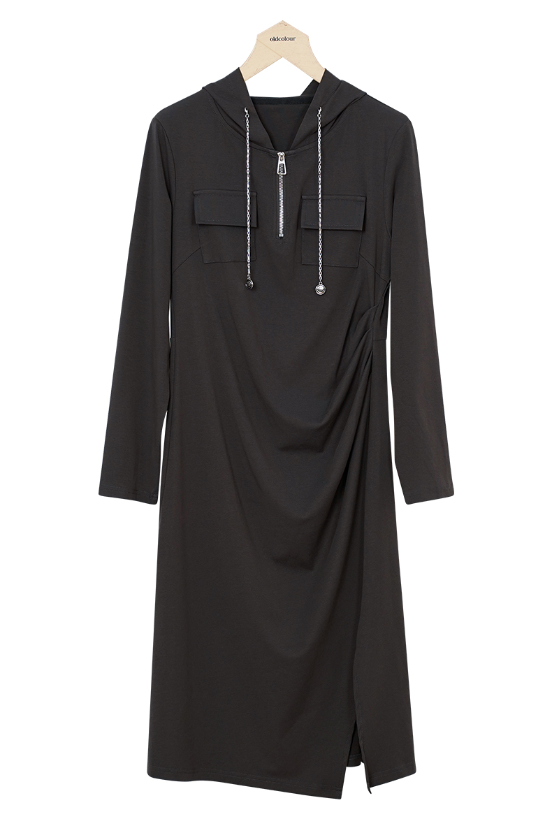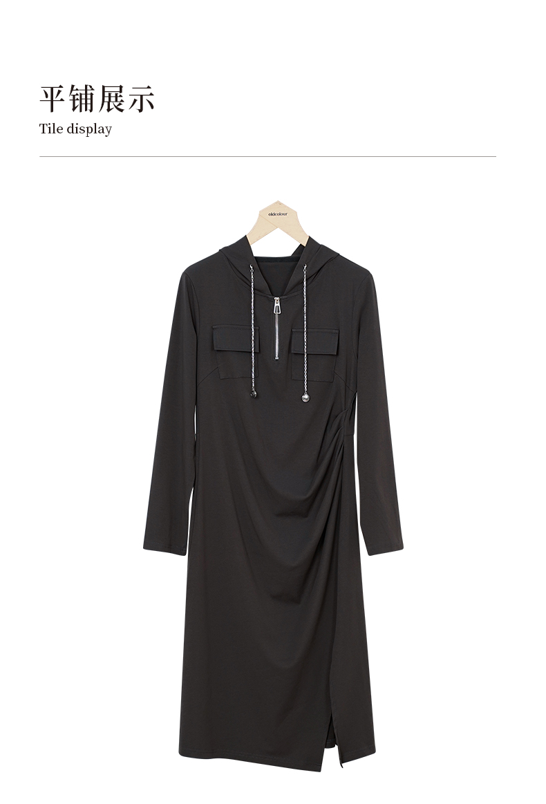 oldcolour秋季新款美式复古撞色开叉显瘦连帽卫衣长裙女P381003A1