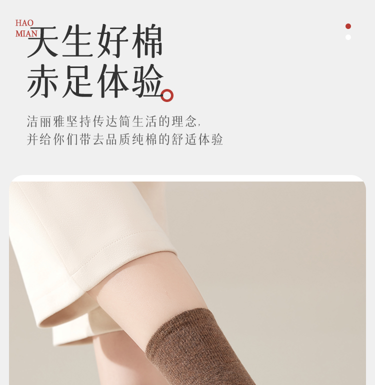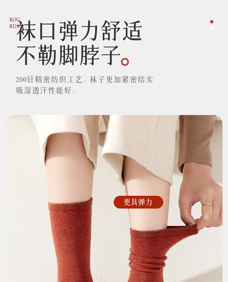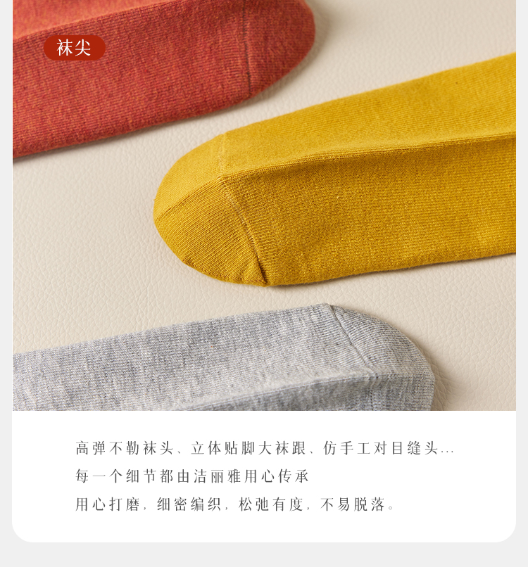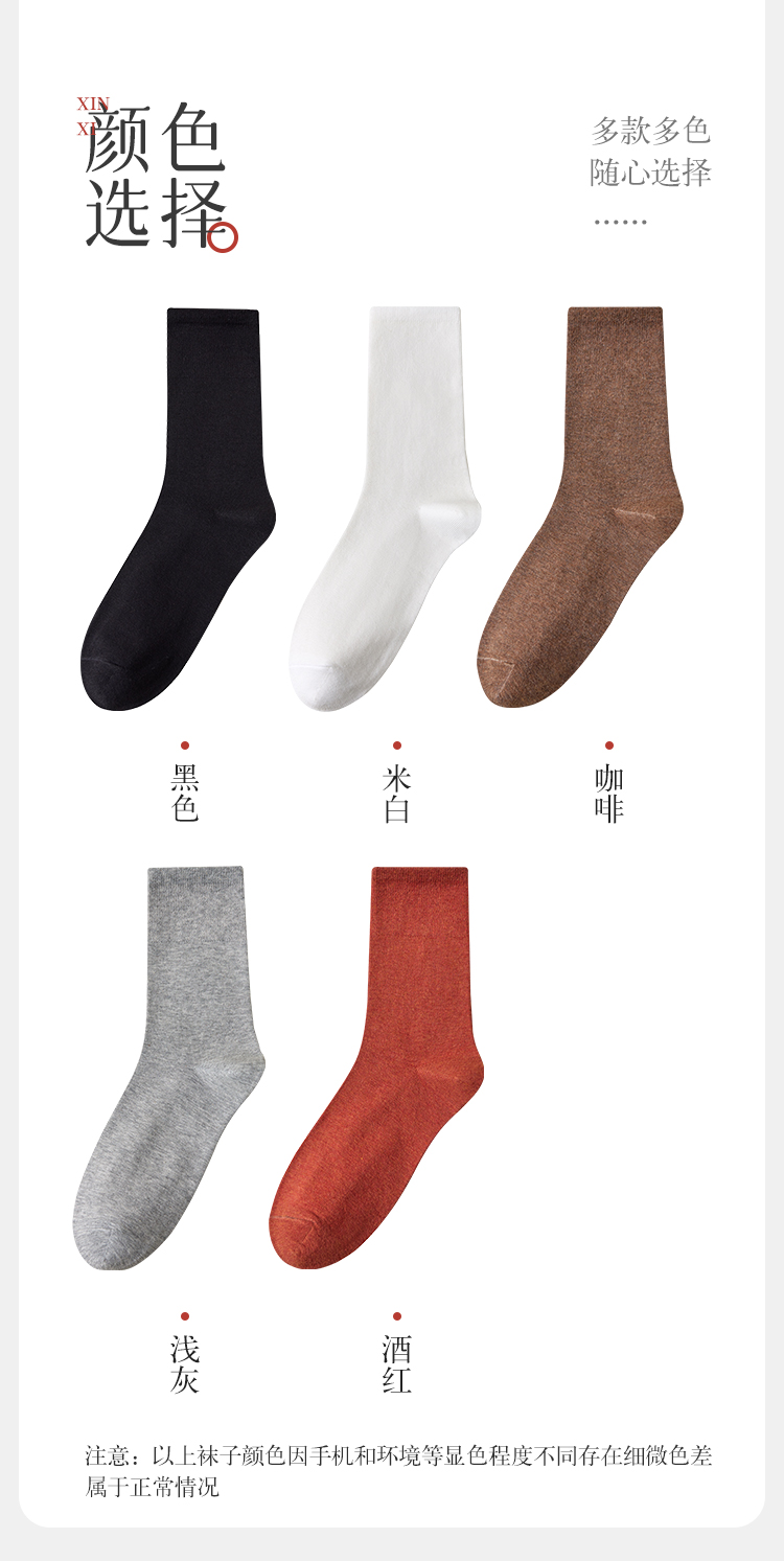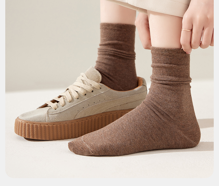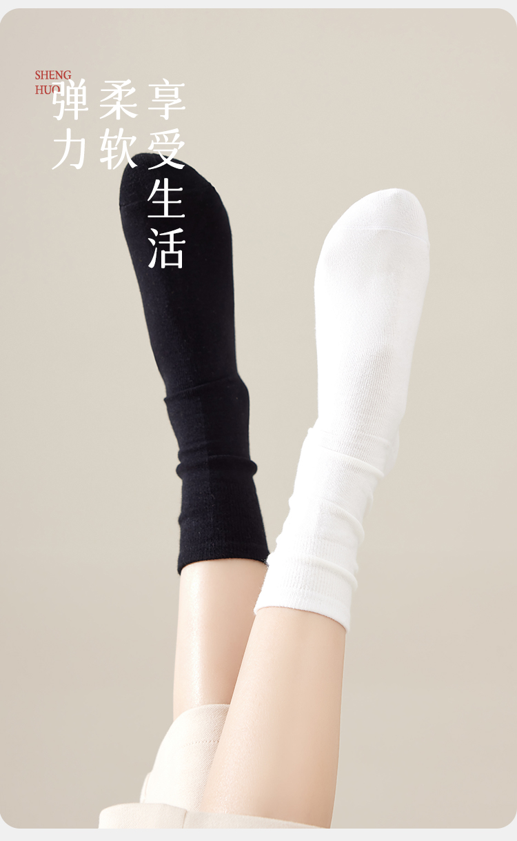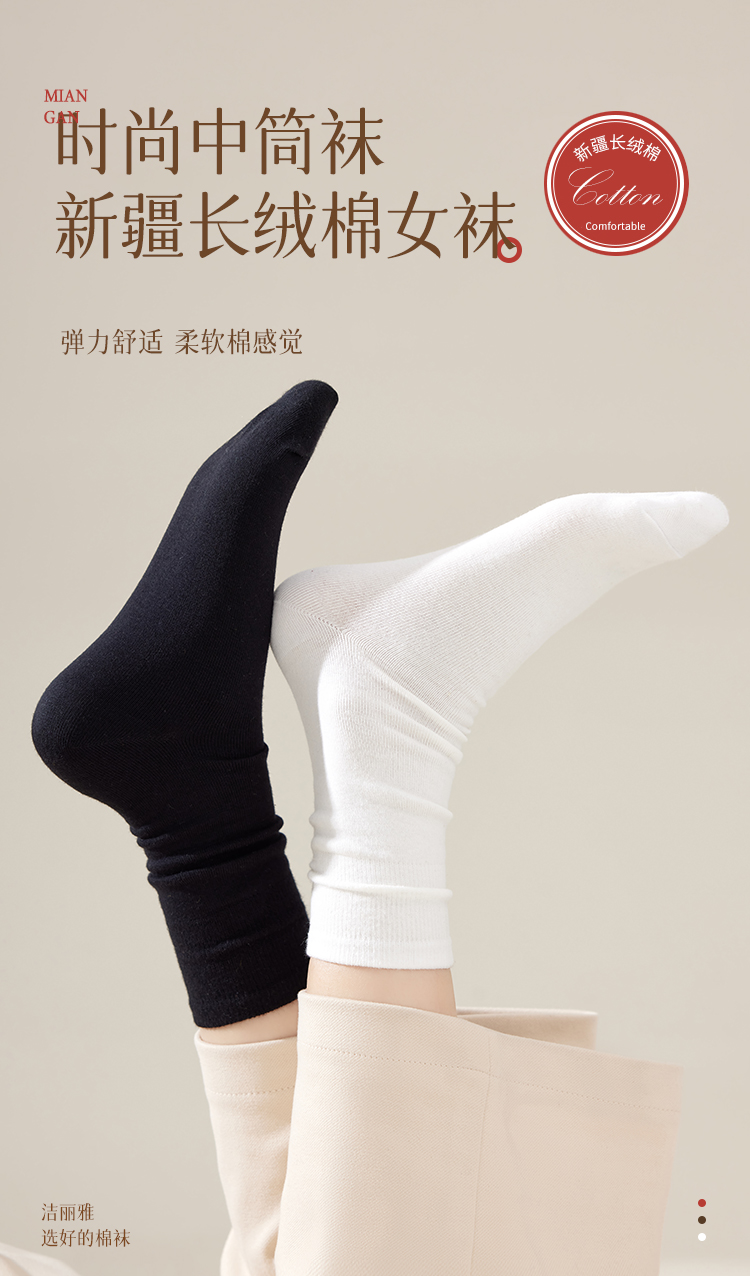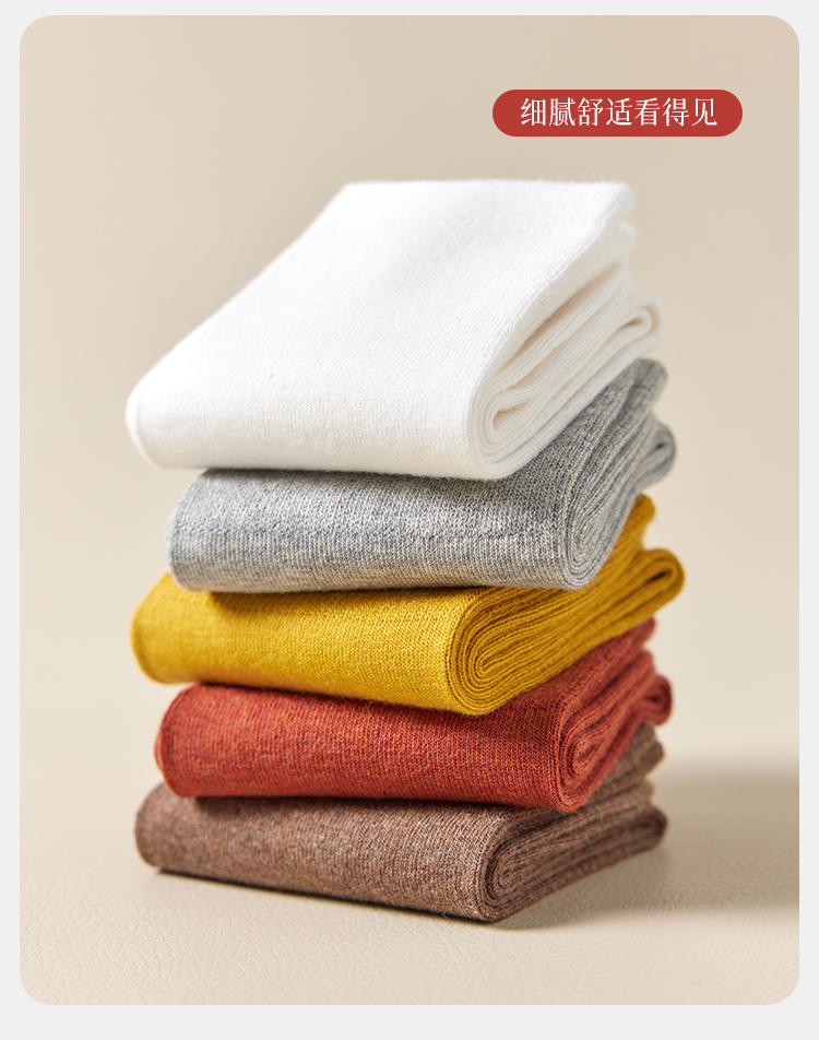 洁丽雅5双装中筒女袜棉质亲肤堆堆袜简约纯色高弹舒适袜子女士