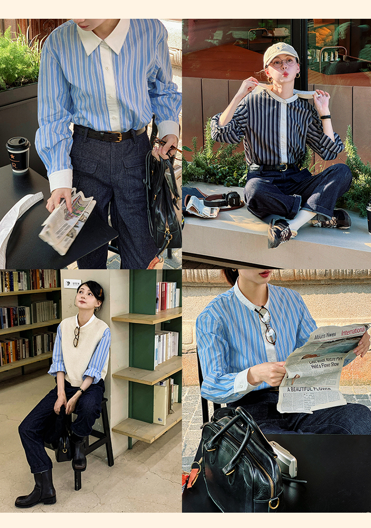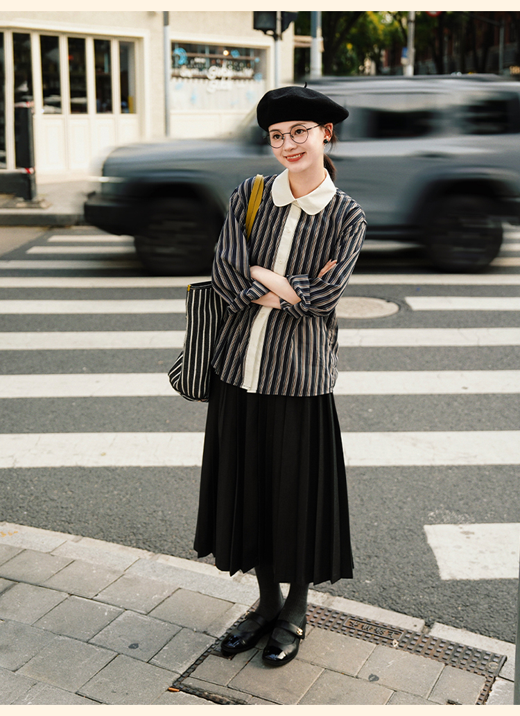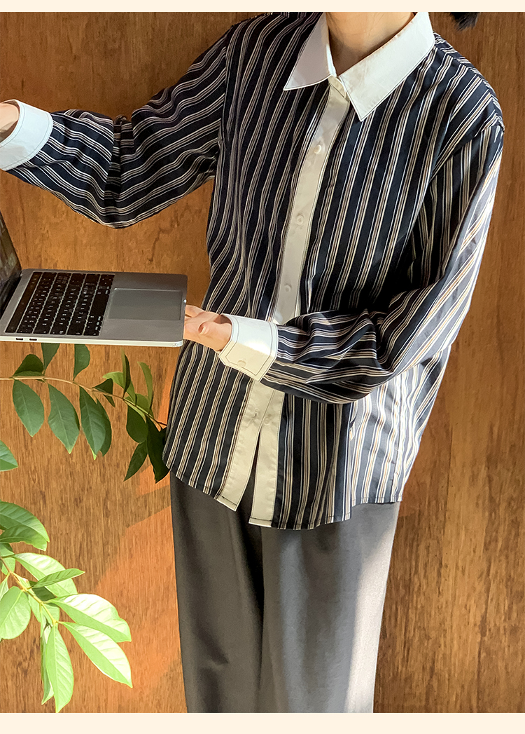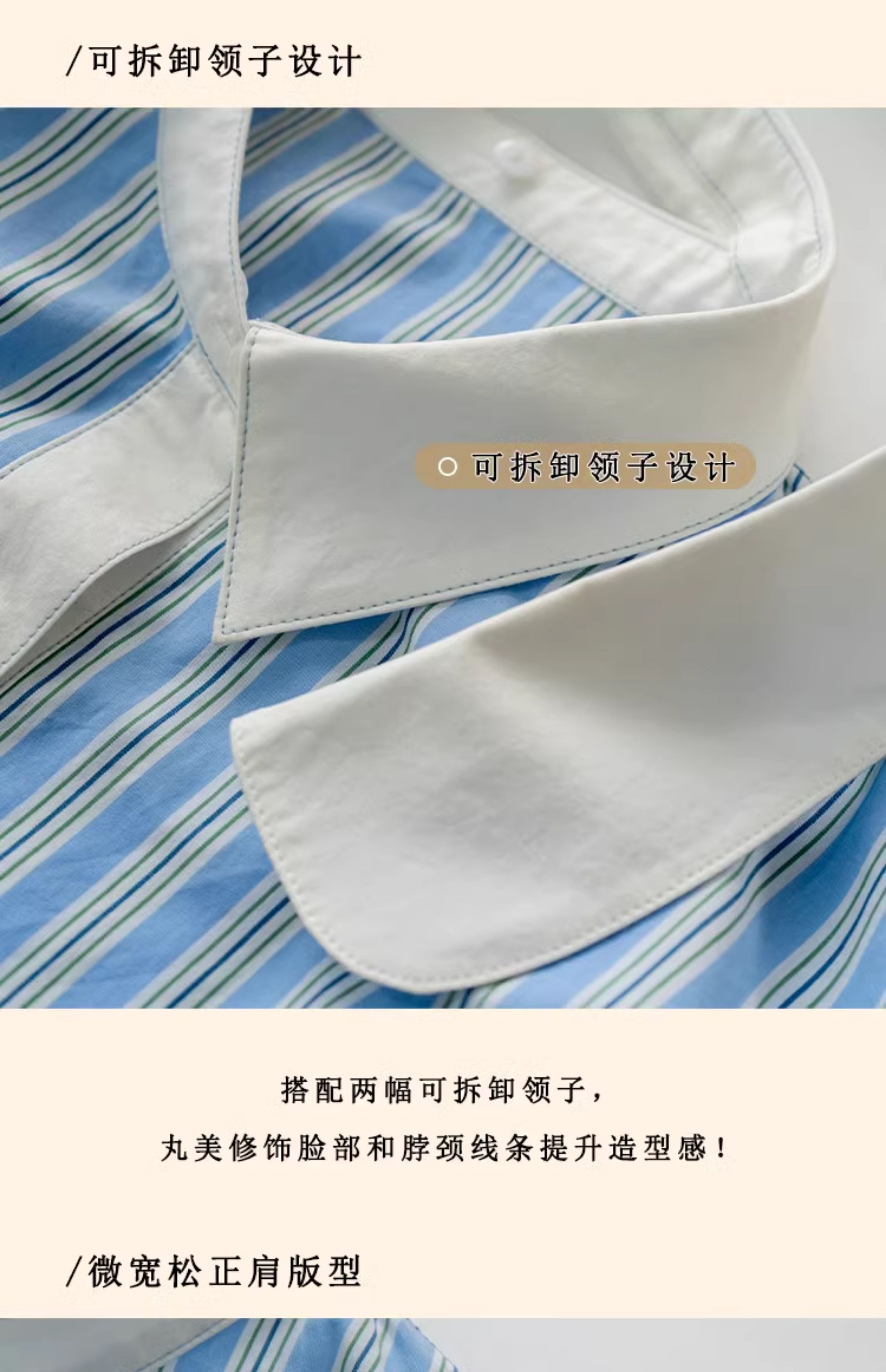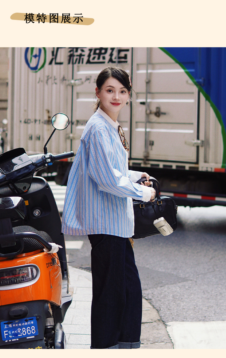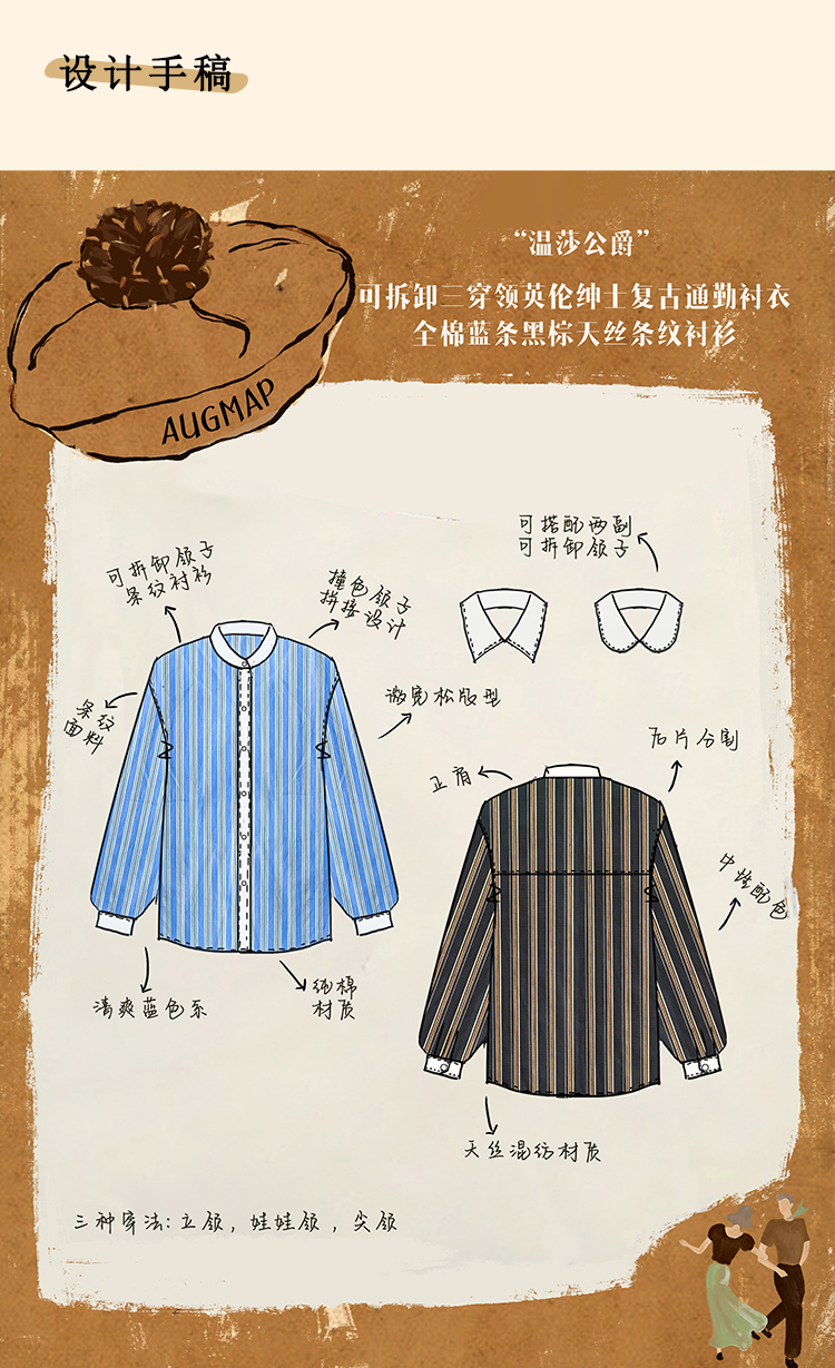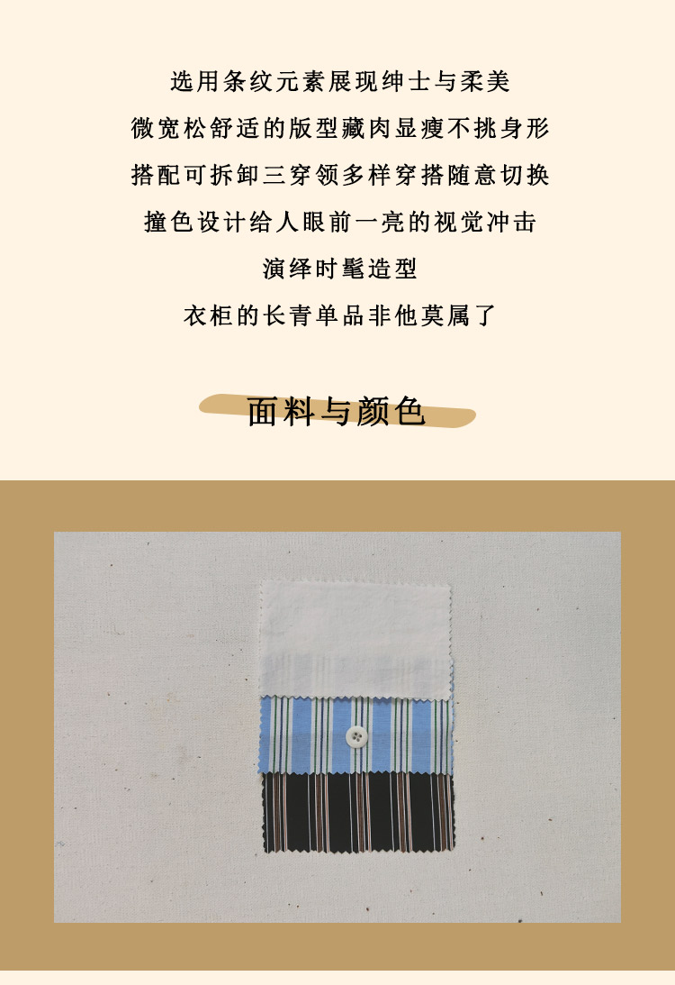 浮生八记/24C089/可拆卸三穿领英伦绅士复古通勤条纹衬衫
