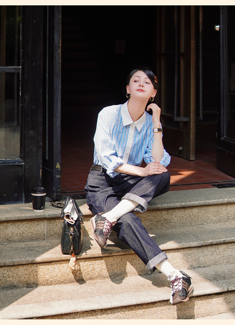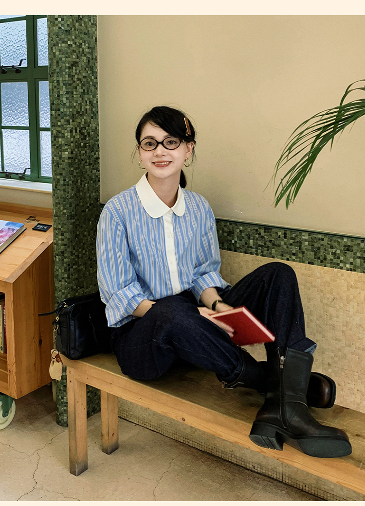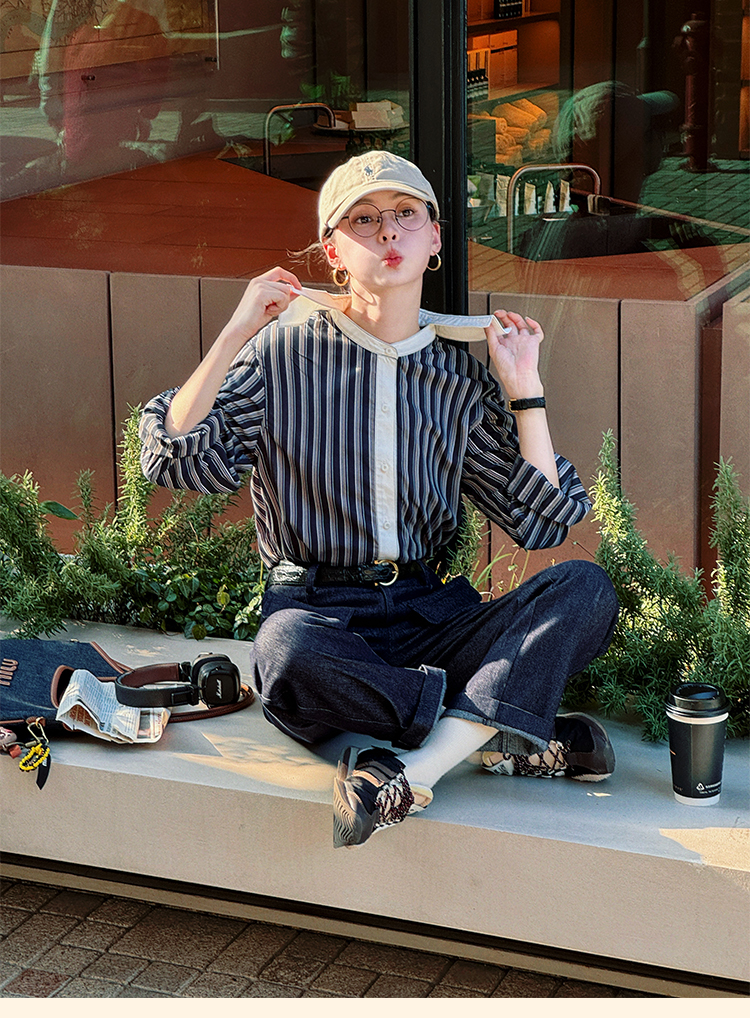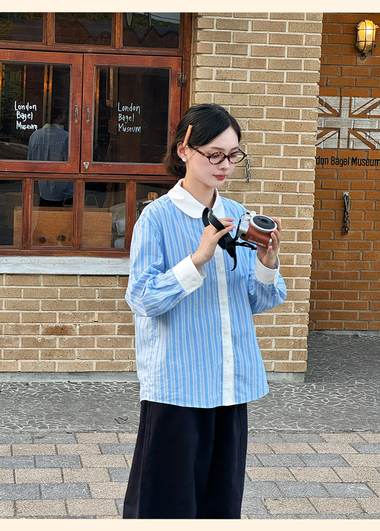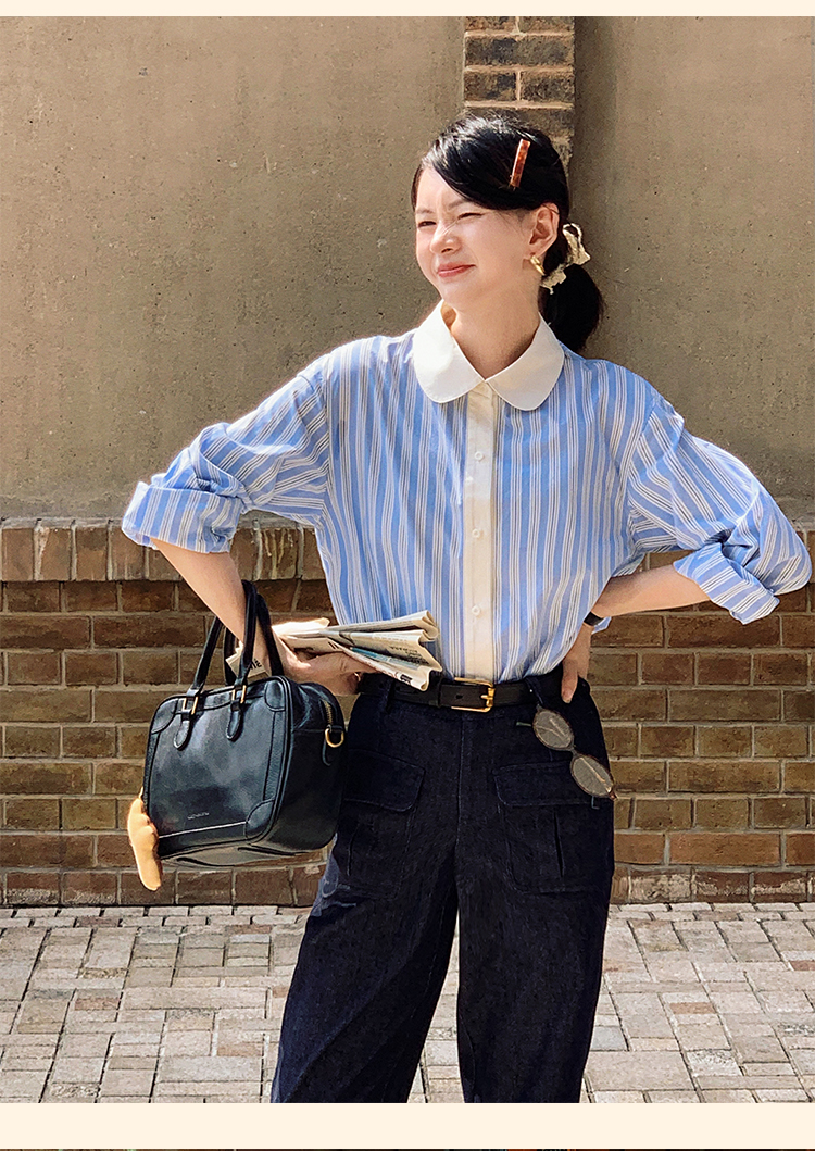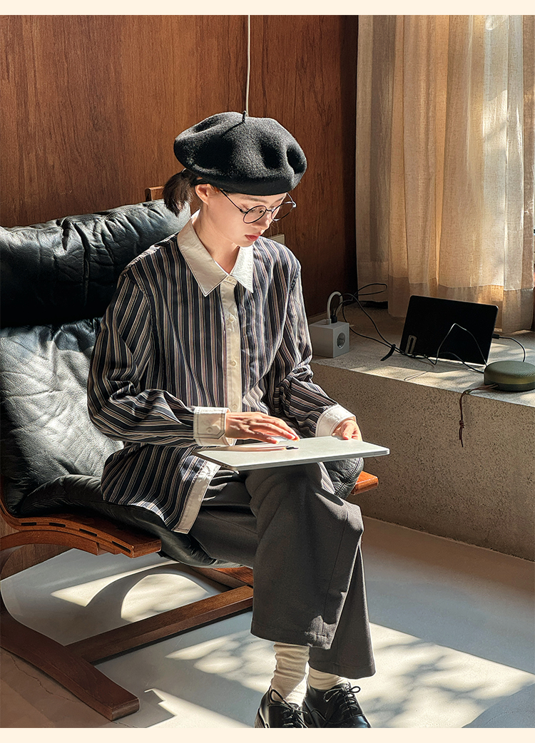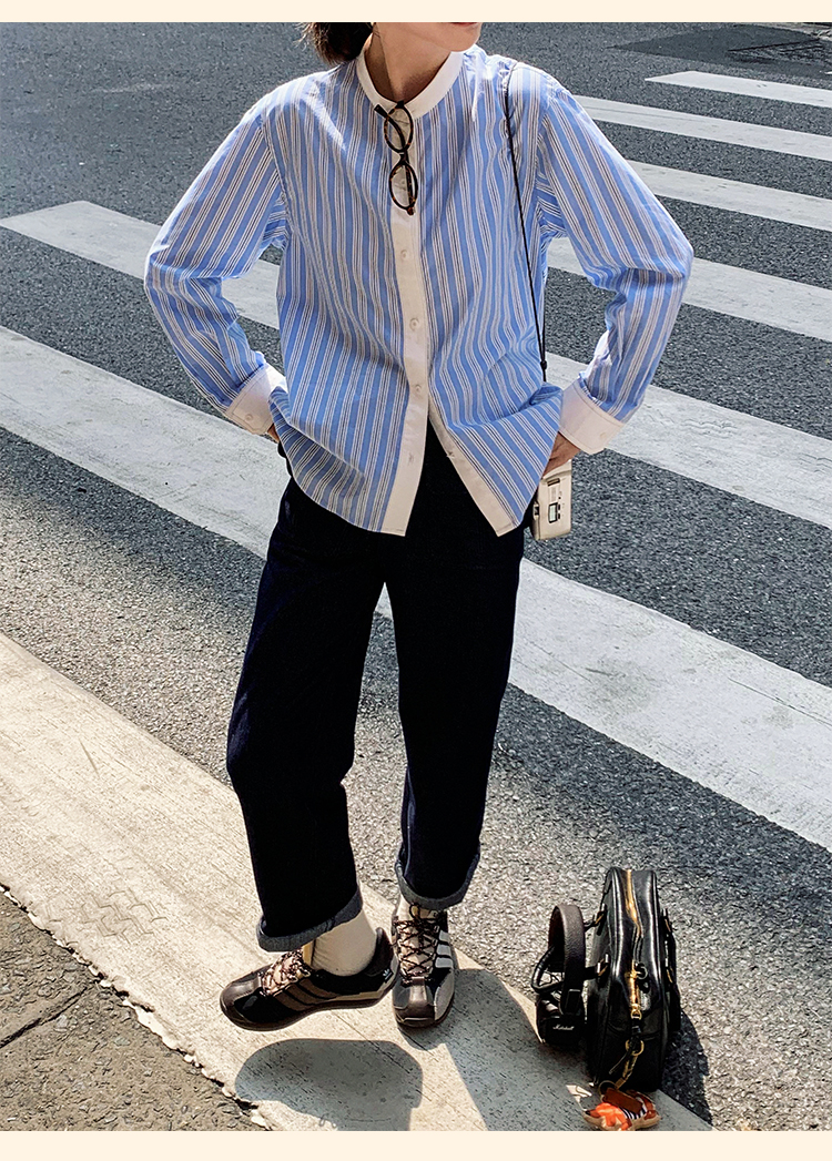 浮生八记/24C089/可拆卸三穿领英伦绅士复古通勤条纹衬衫