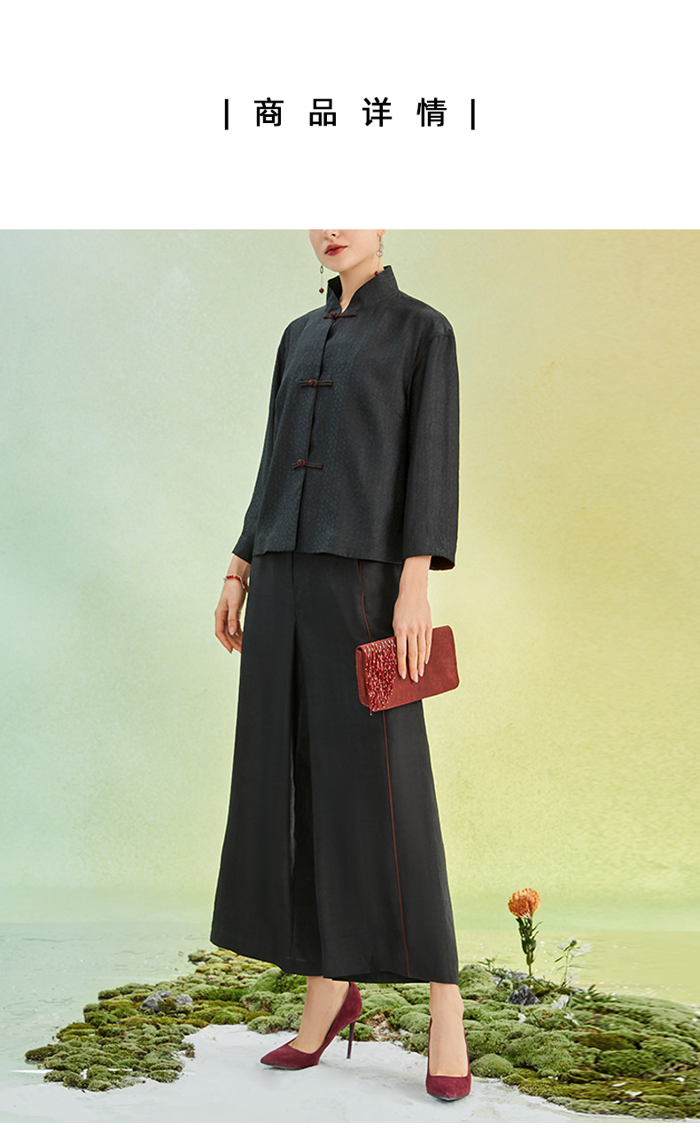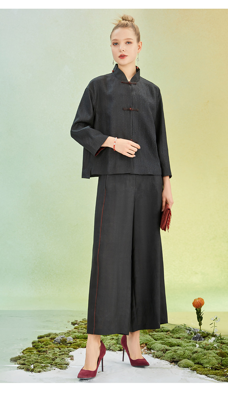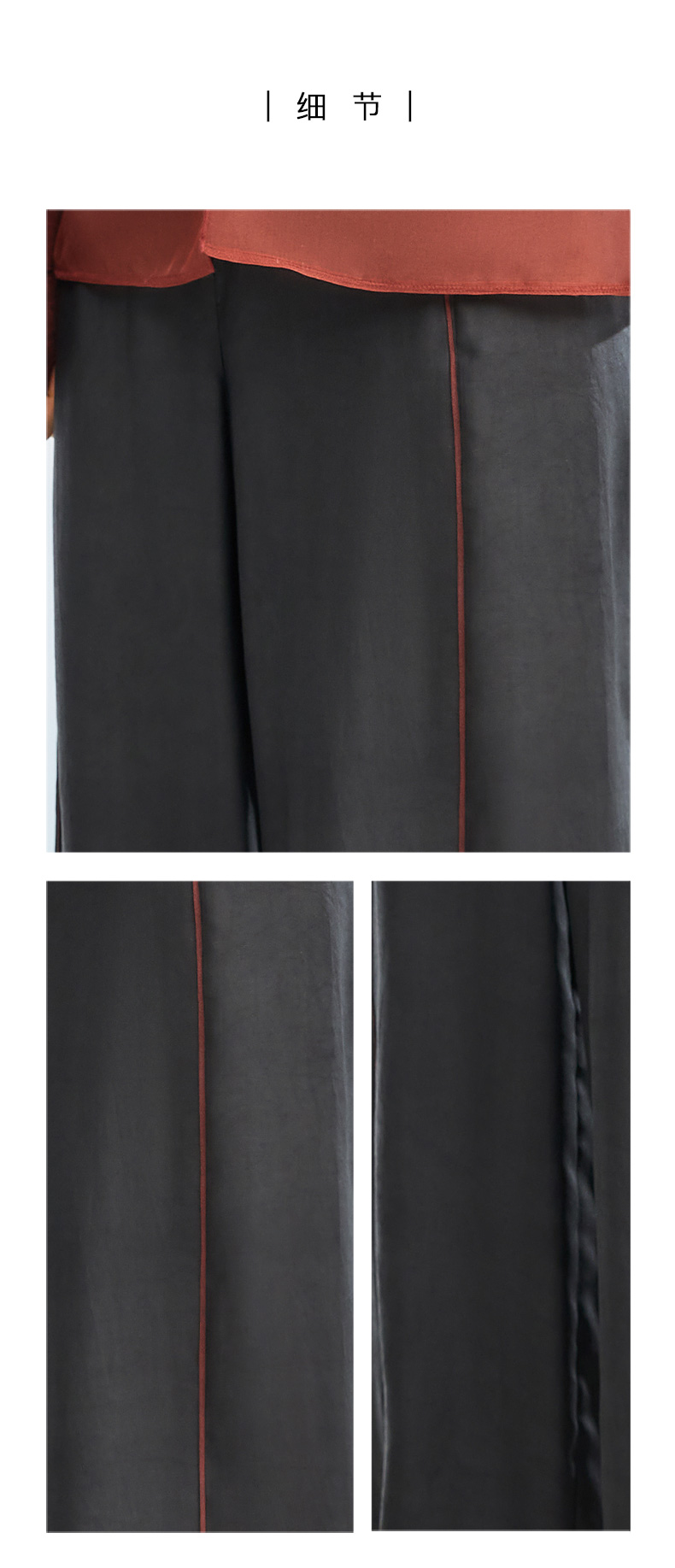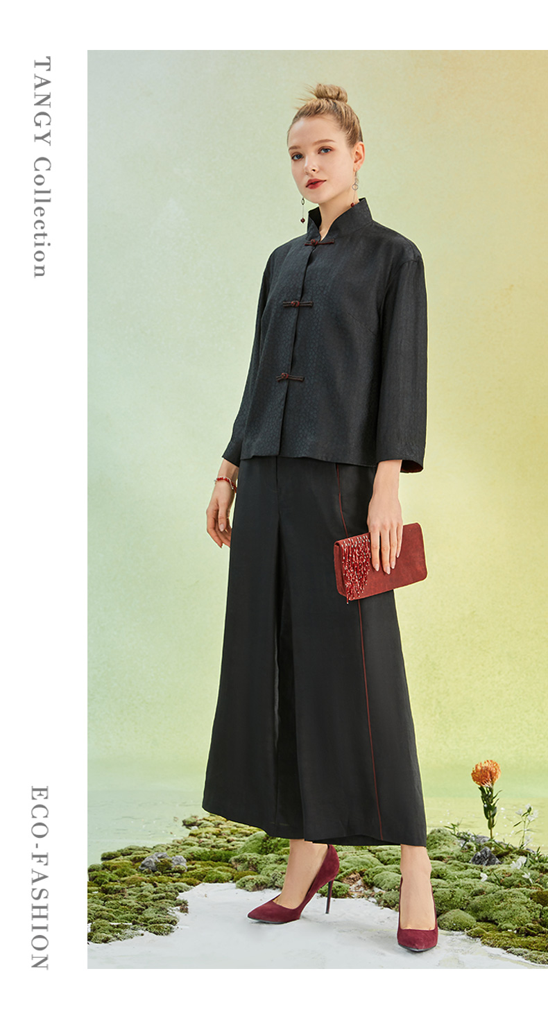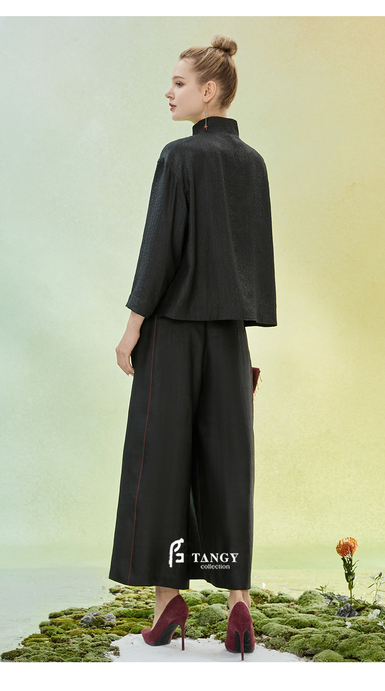 TANGY Collection/天意精品2022年春夏新品撞色线条莨绸直筒休闲裤