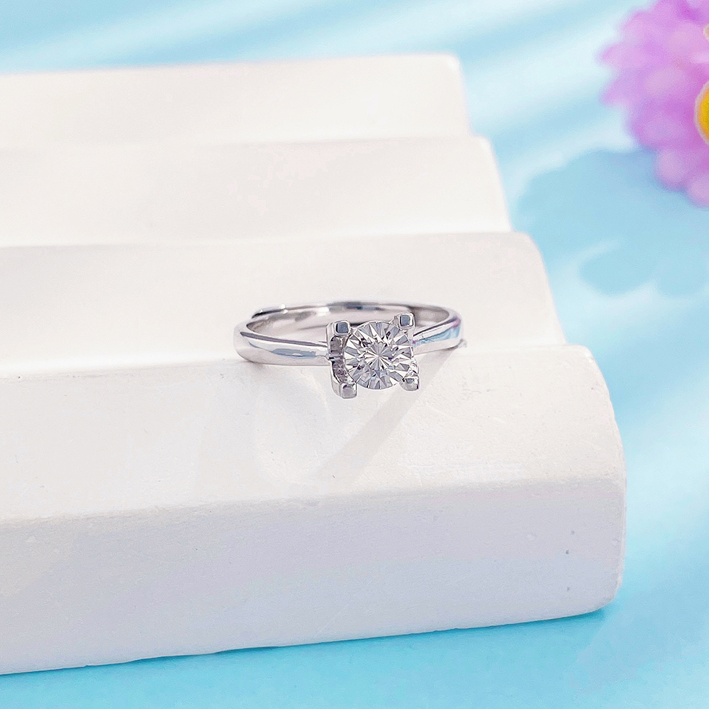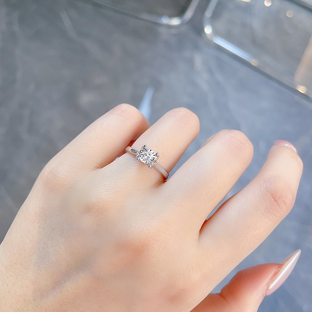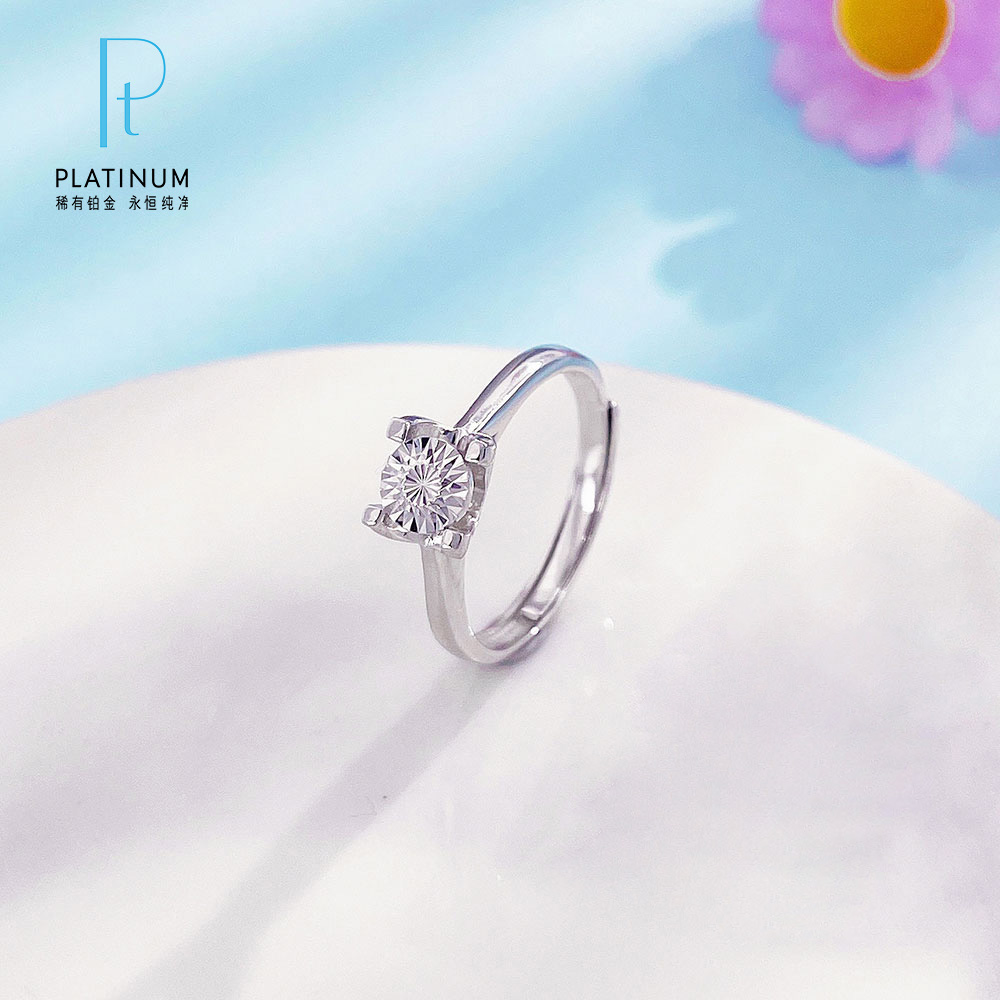 【线上铂金馆】PT950 #CNC 【国际铂金协会】铂金实心活口戒指经典牛头四爪直臂仿钻女戒(BJZ00211)预售产品下单后不退款不退货不换货不补差价)