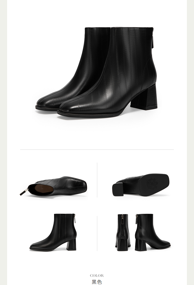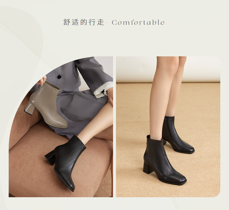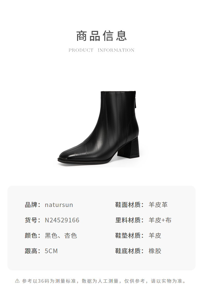natursun羊皮时装靴秋冬季复古粗跟短靴显瘦气质靴子女鞋N24529166