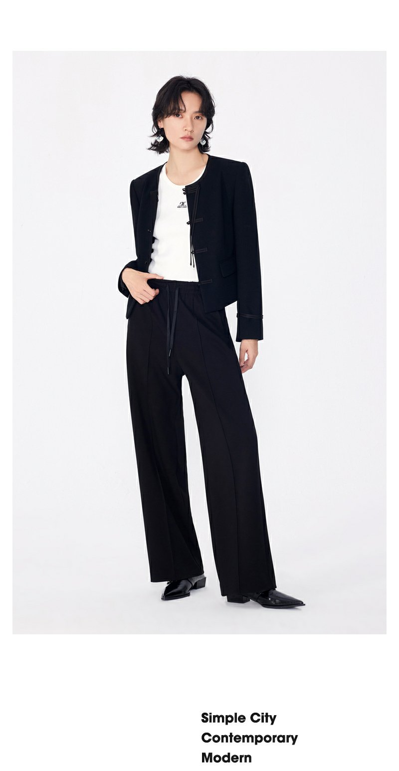 NEELLY纳俪商场同款春季新款简约通勤直筒休闲裤女百搭针织长裤N25024H04565