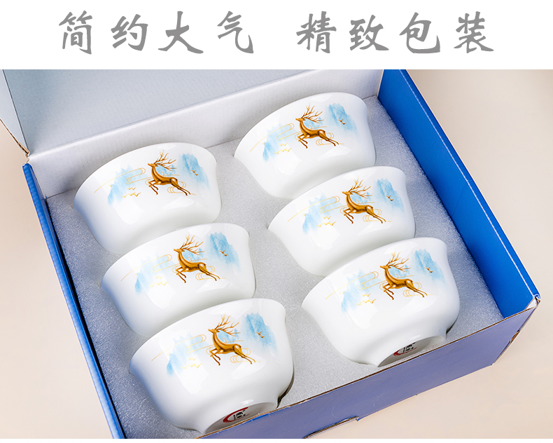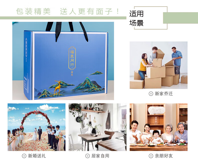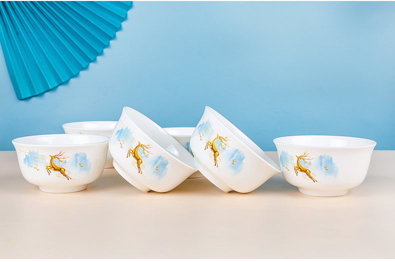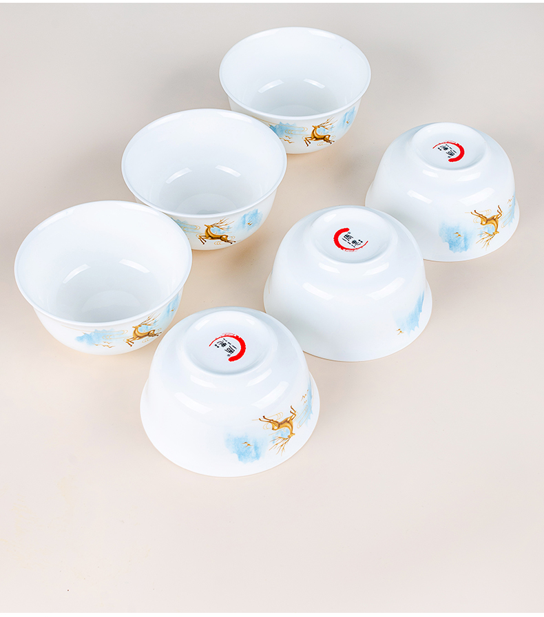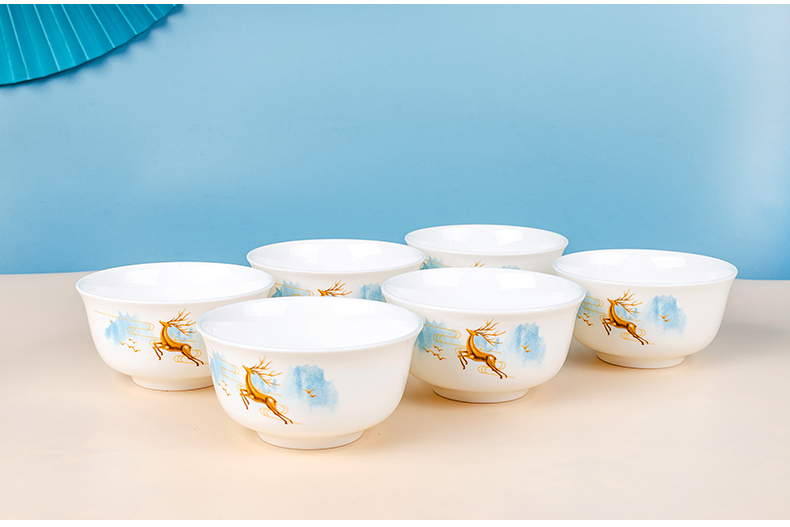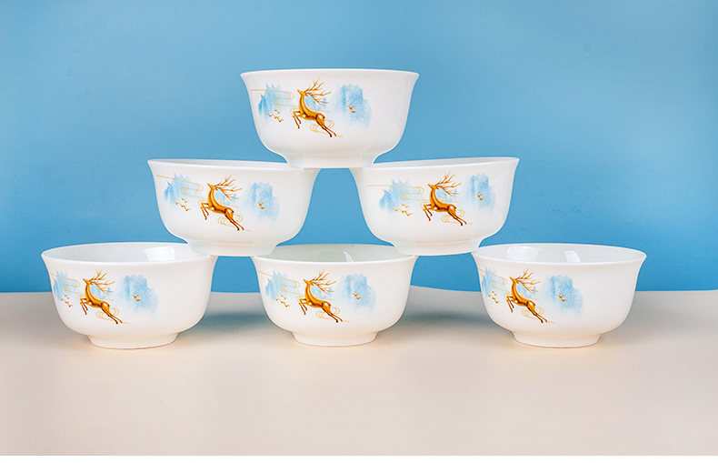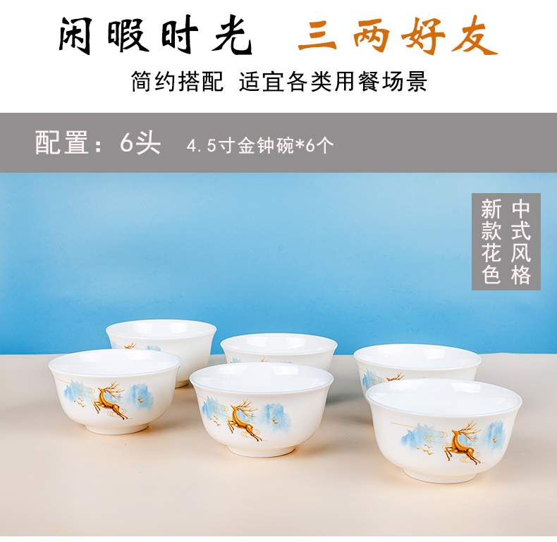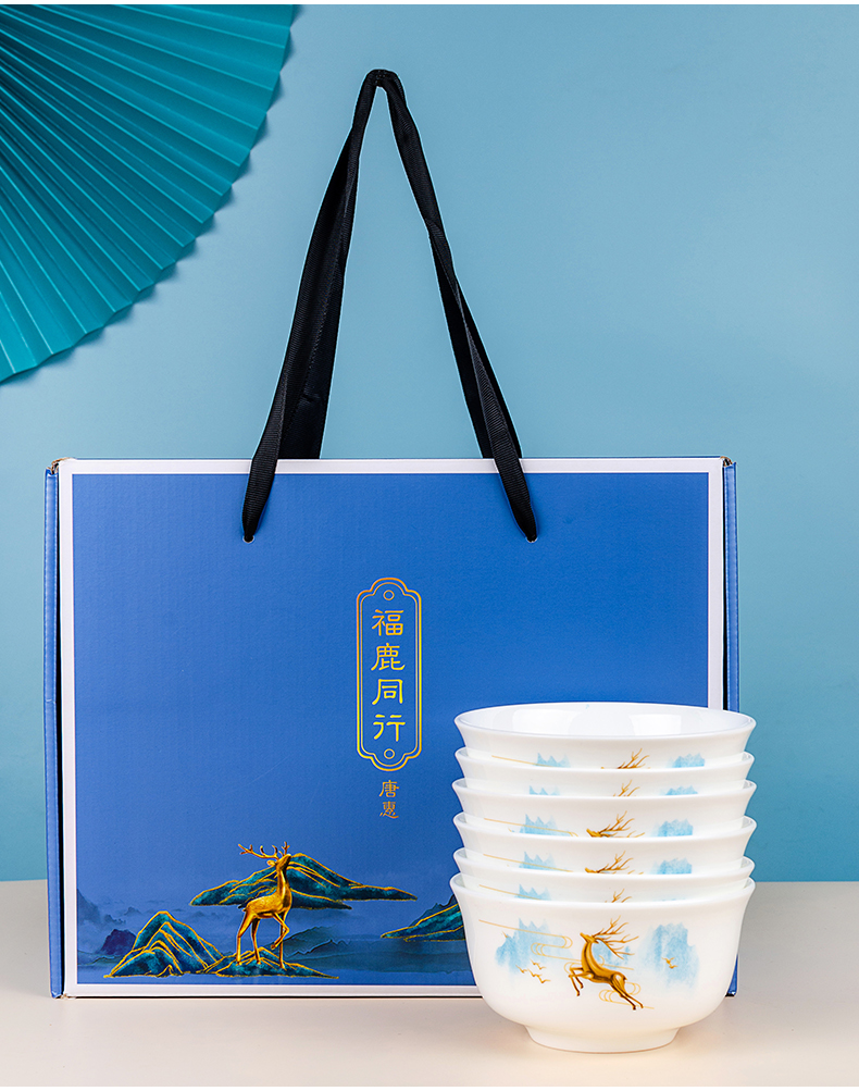 唐惠 碗筷家用套装 年会婚庆 礼品碗具筷子中式餐具组合礼品碗套装新款家用4.5寸金钟面碗六碗福鹿同行 套餐