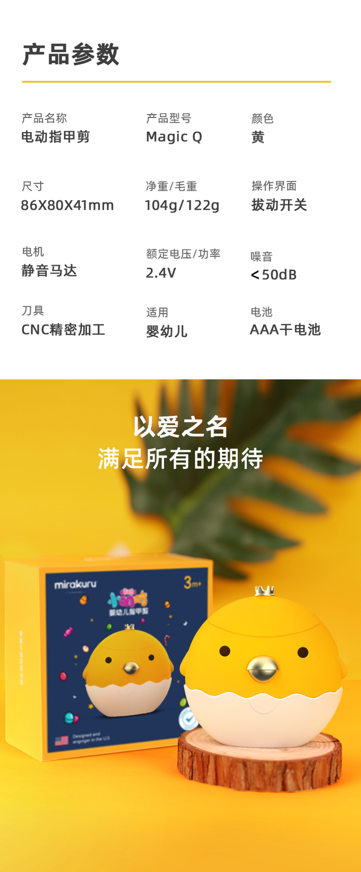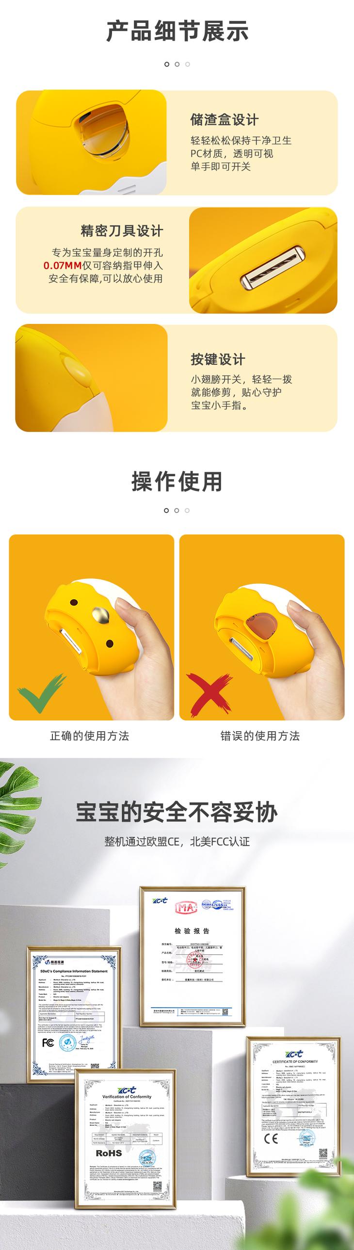 mirakuru儿童电动指甲刀修剪器婴幼儿专用防夹肉磨甲器宝宝指甲剪刀防飞溅