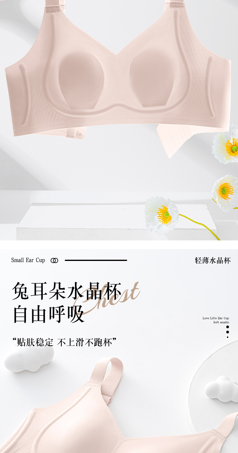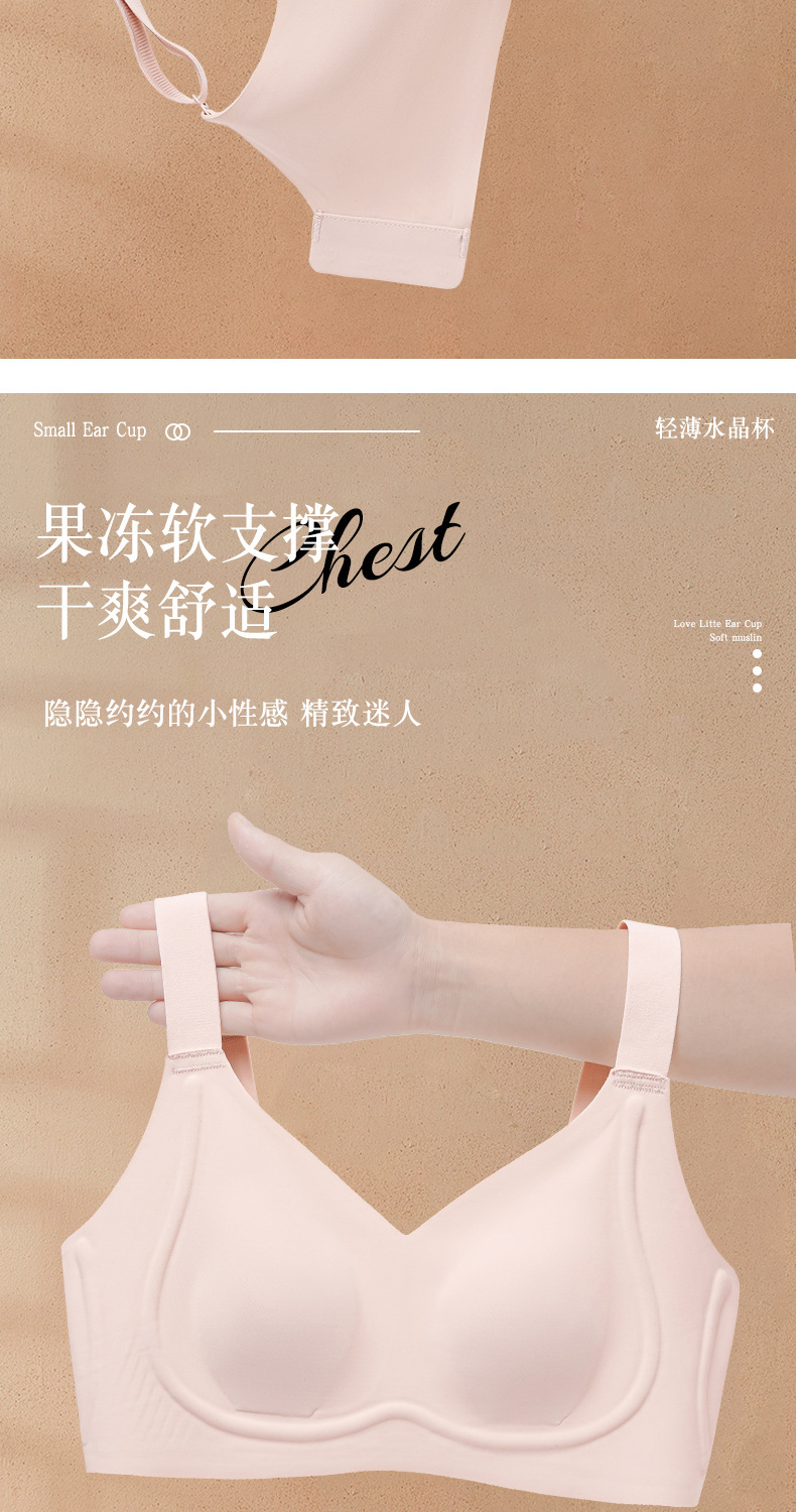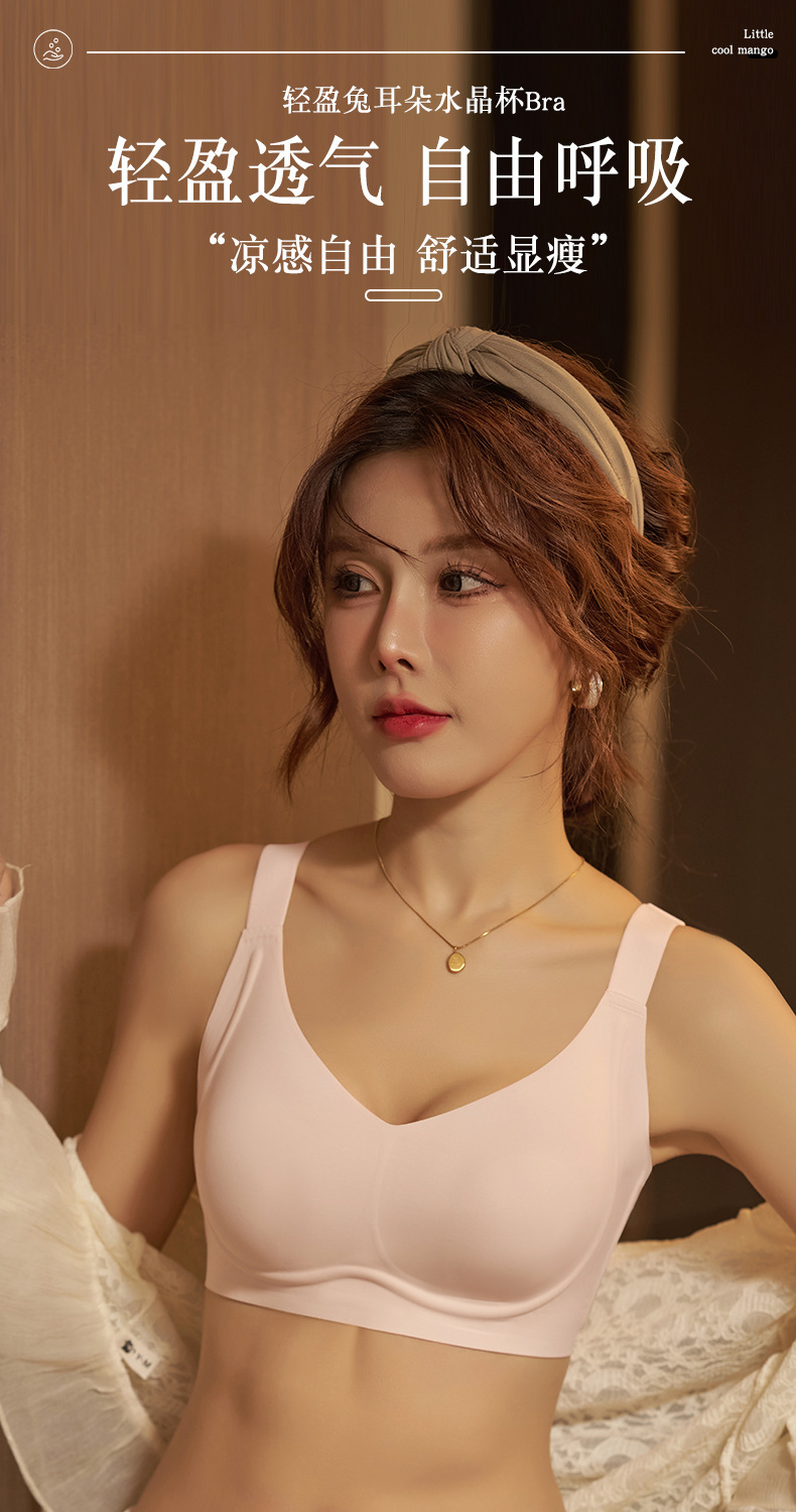 无痕胖mm大码文胸兔耳朵水晶杯超薄款大胸显小收副乳果冻胶内衣女