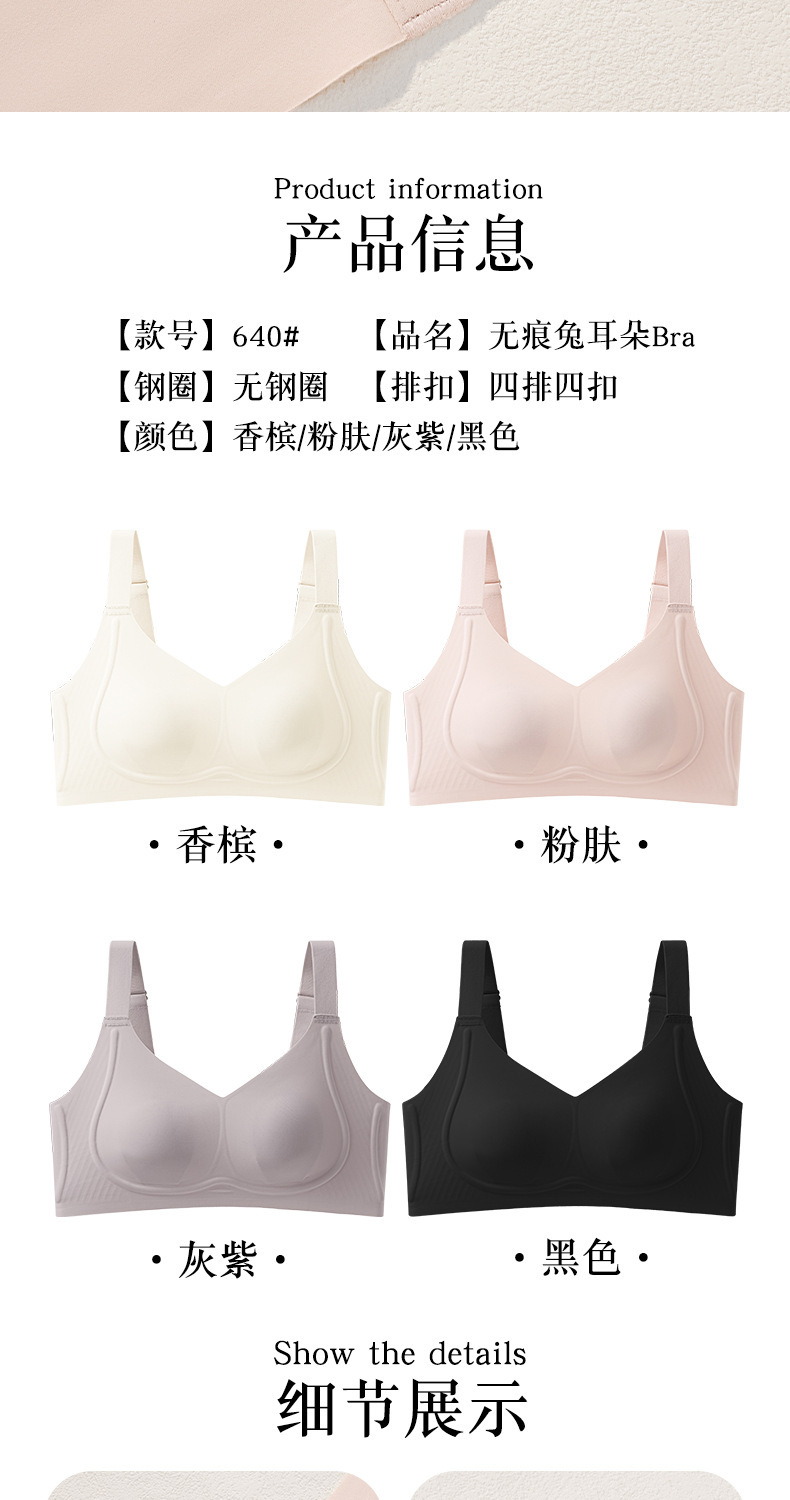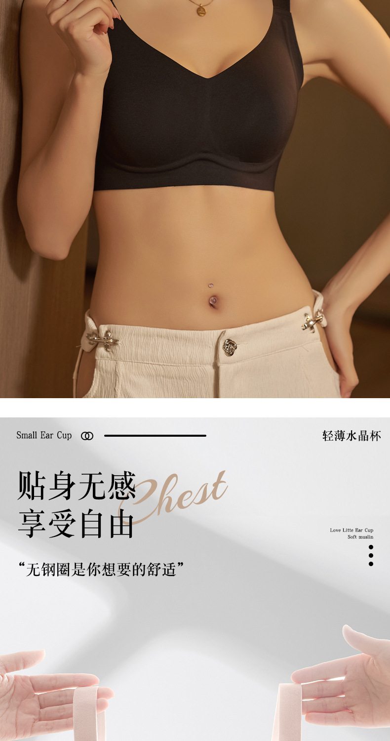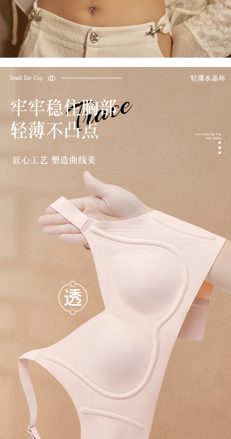 无痕胖mm大码文胸兔耳朵水晶杯超薄款大胸显小收副乳果冻胶内衣女