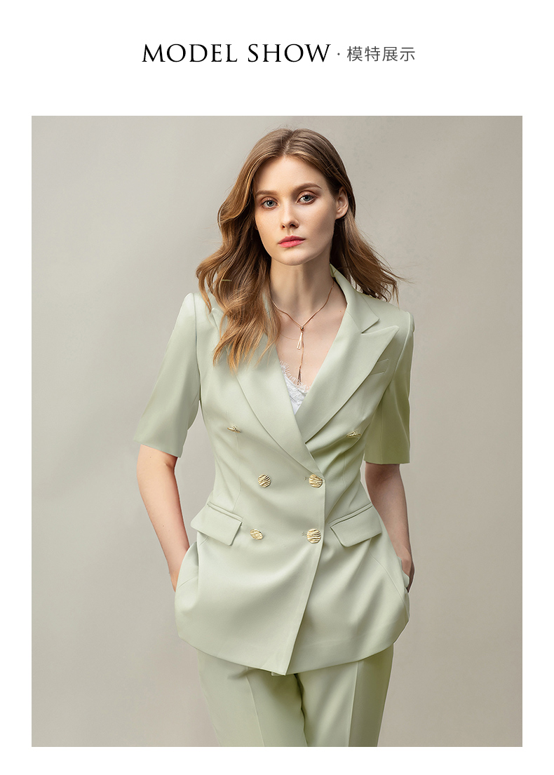 夏季高端绿色西装套裤女名媛修身职业西服套装薄款艺考面试工作服C13211+P13211