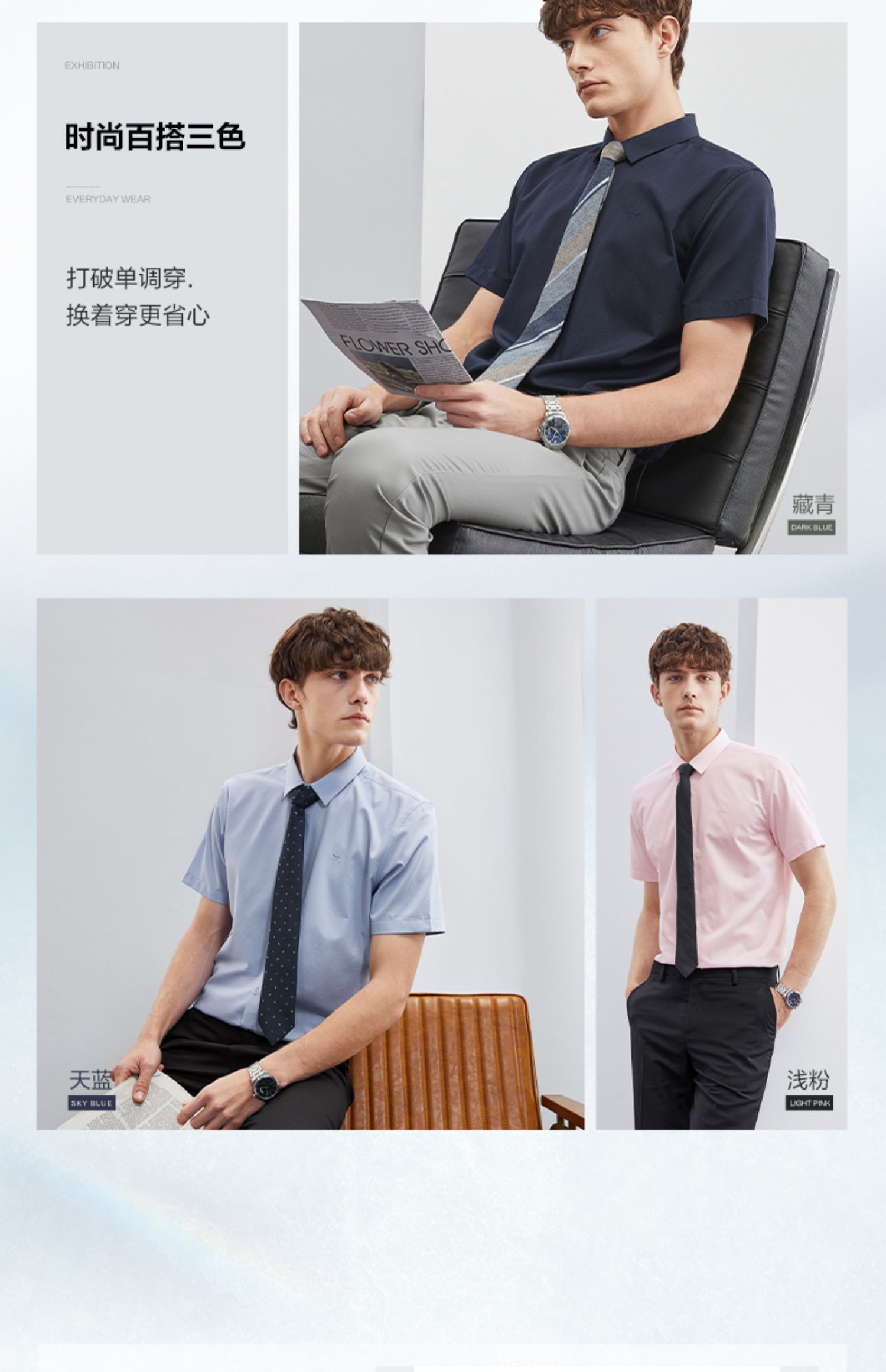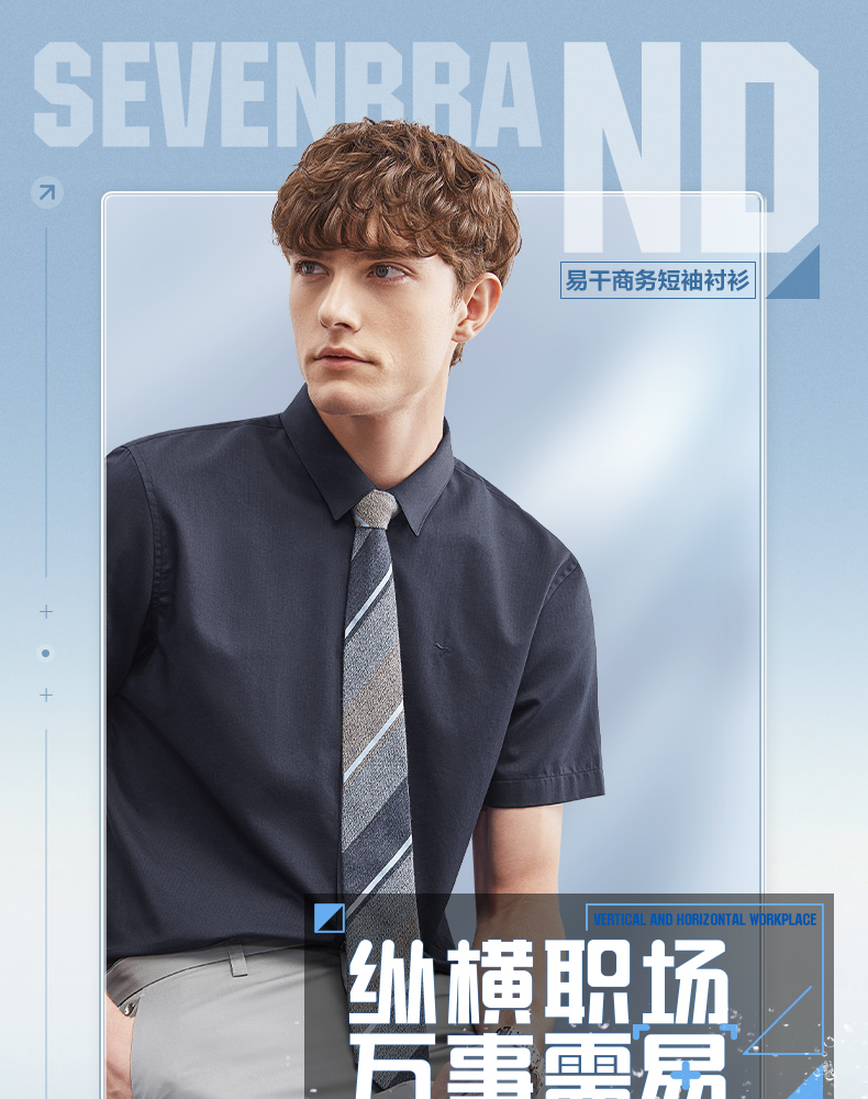 【易干】柒牌短袖衬衫男夏季新款商务休闲中青年亲肤方领衬衣 124A70320