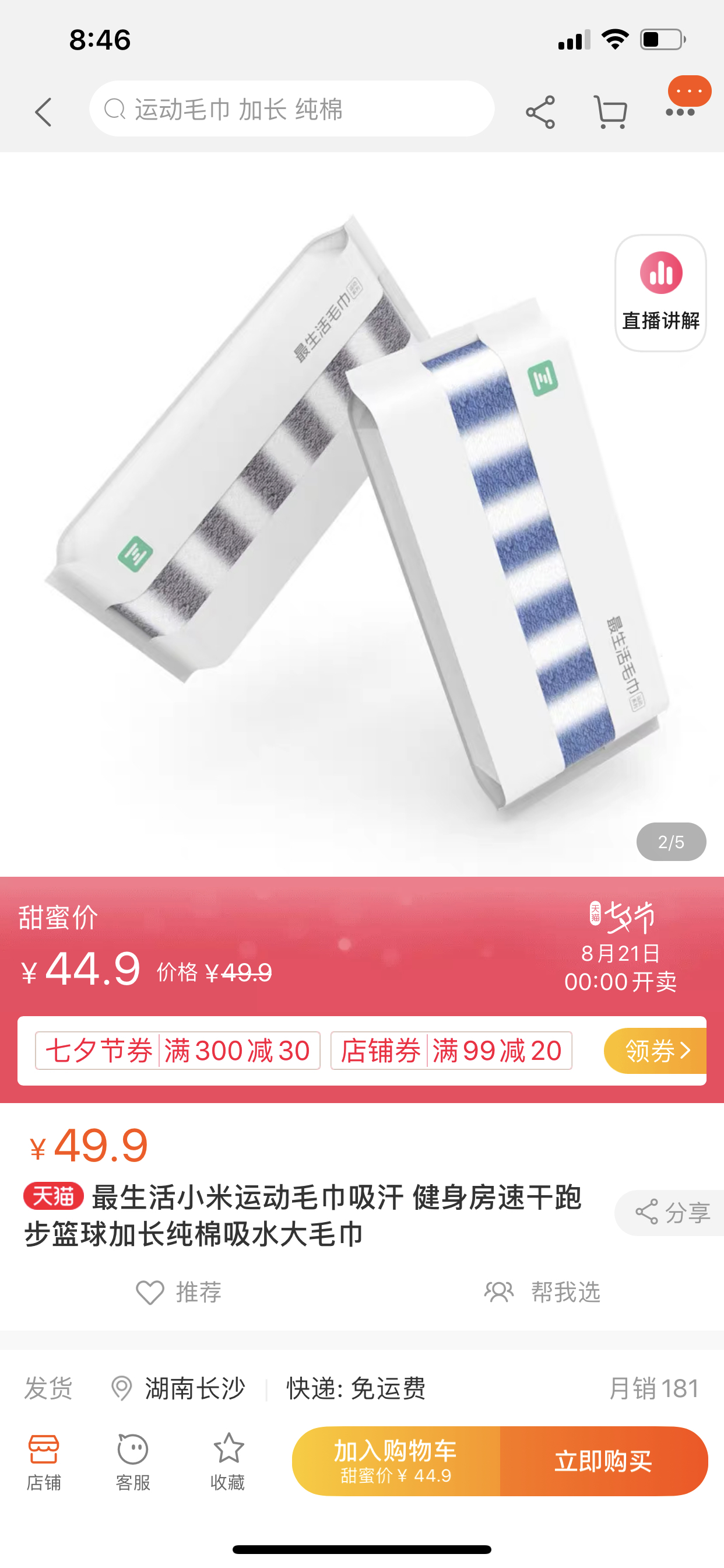 小米有品最生活运动吸汗毛巾无菌包装1174