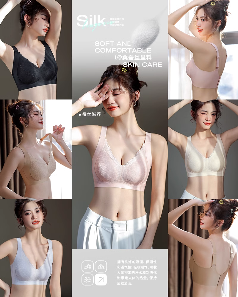 蕾丝蚕丝养护4排扣文胸UB53098