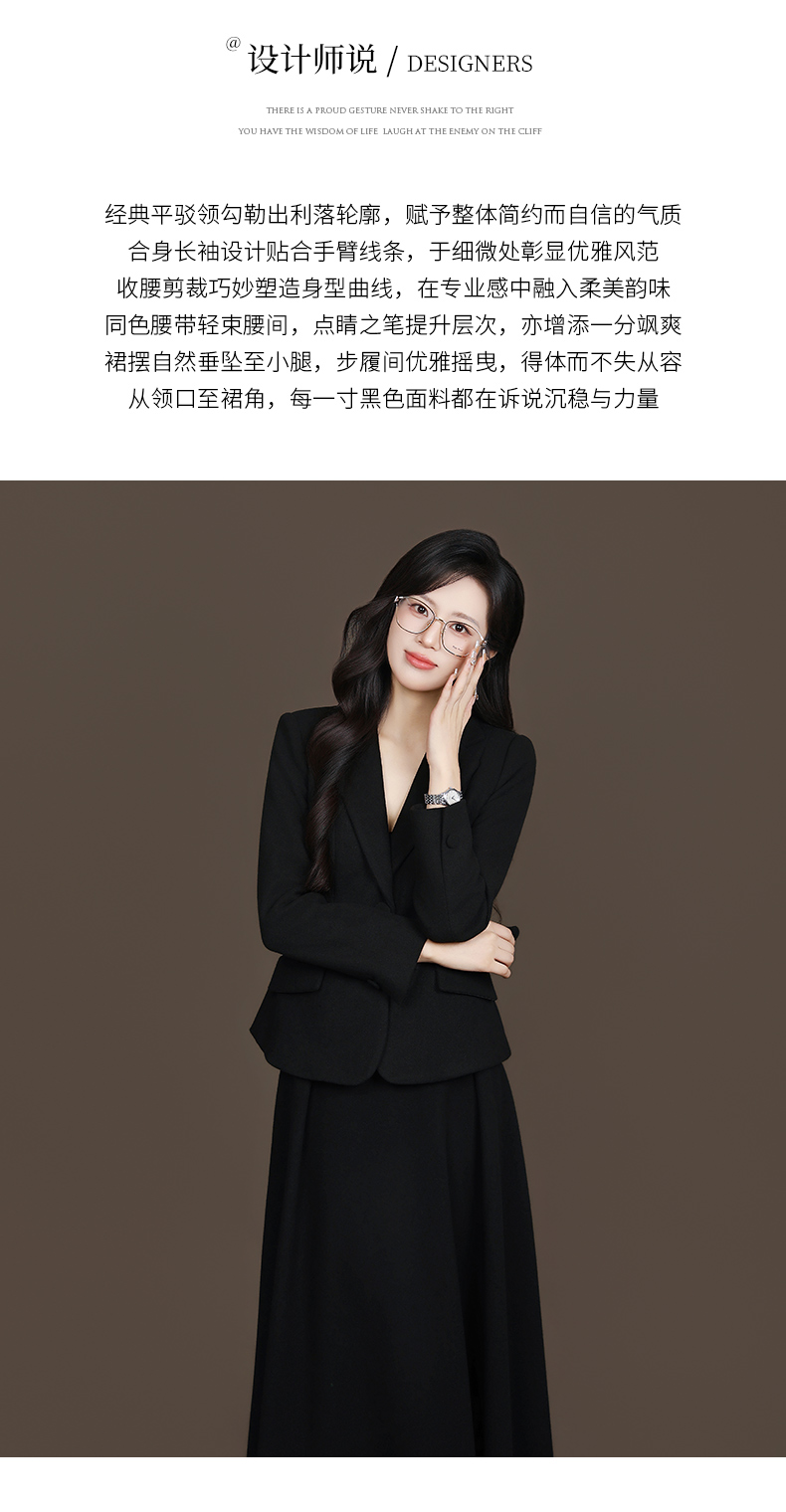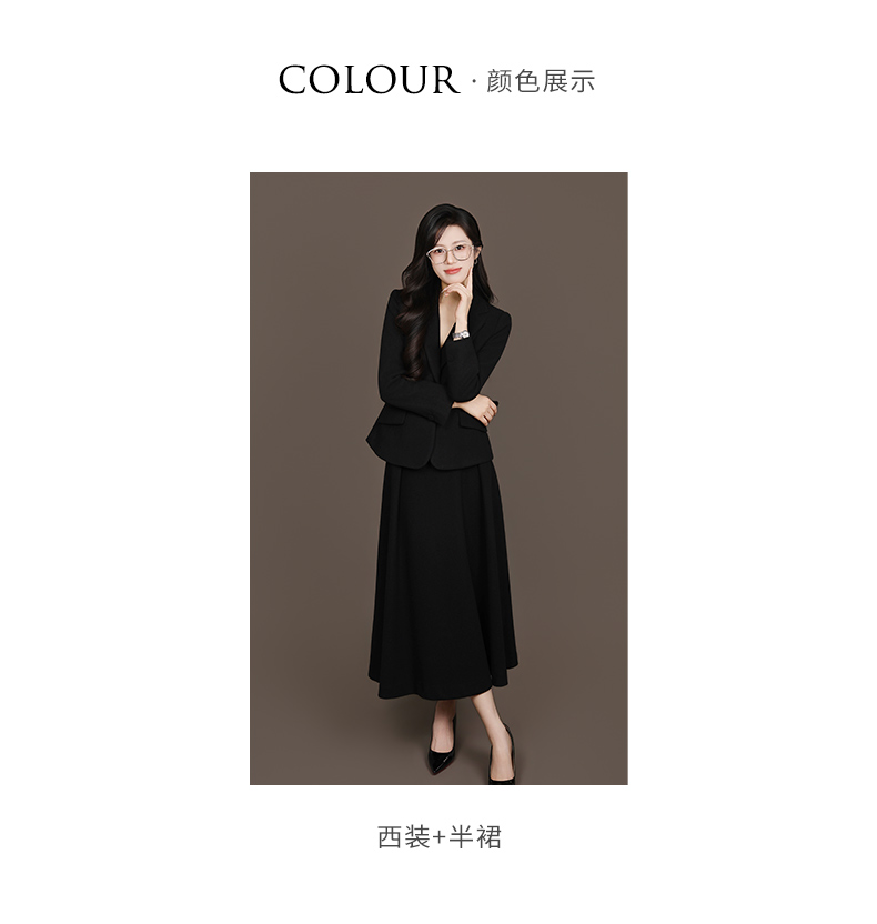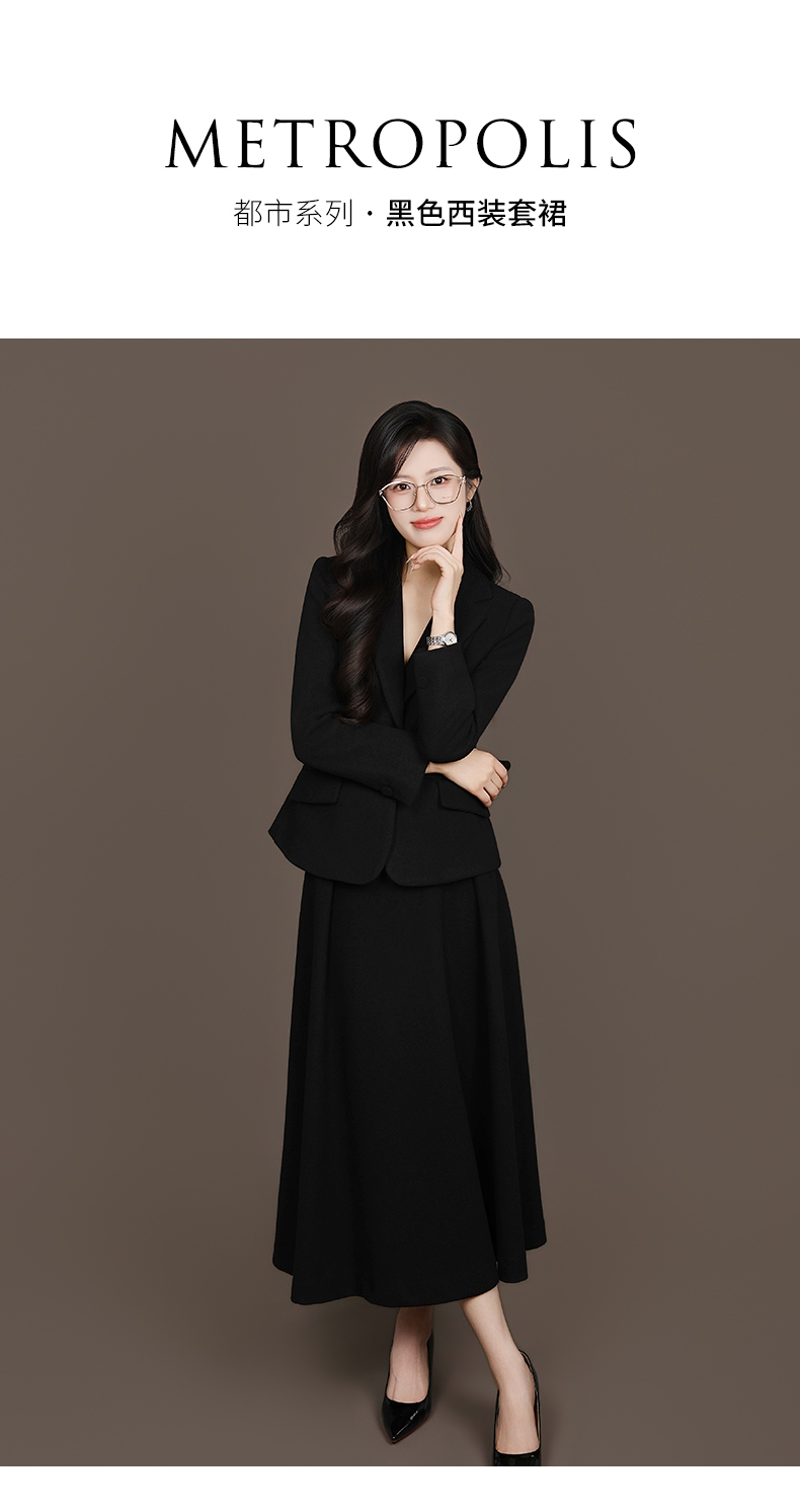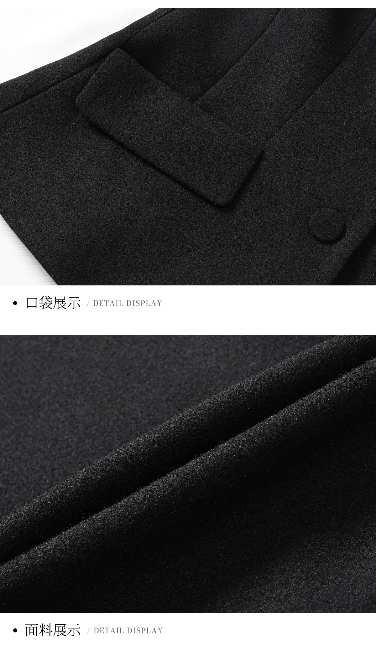 法小曼*子珍专款/通勤风黑色毛呢西装套装女修身收腰呢子职业套裙气质秋冬款