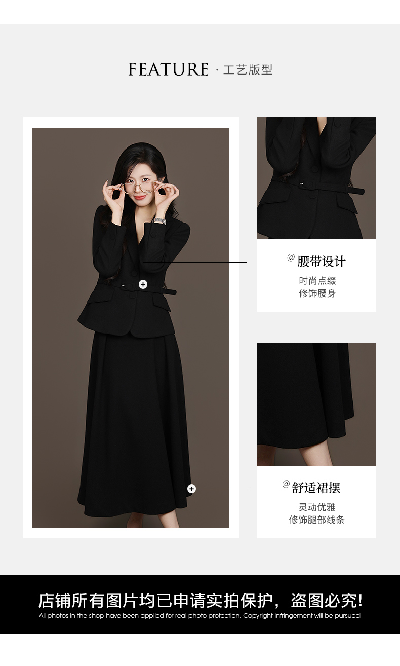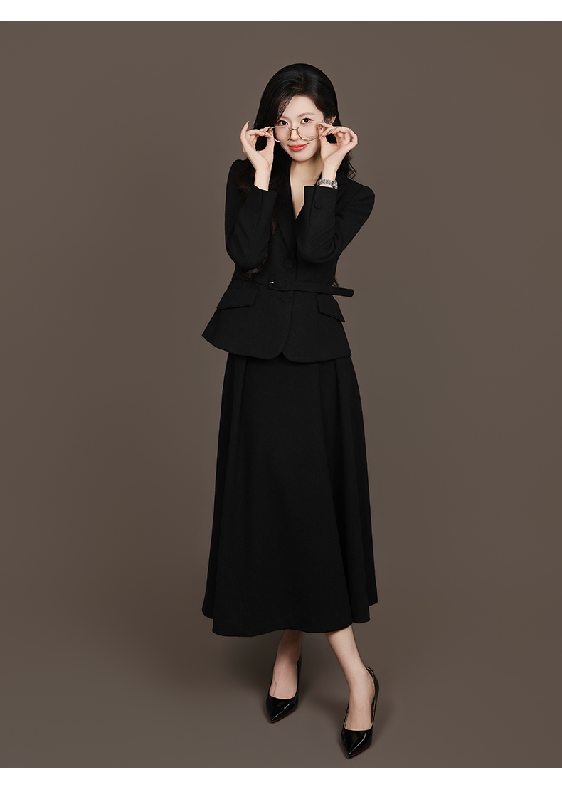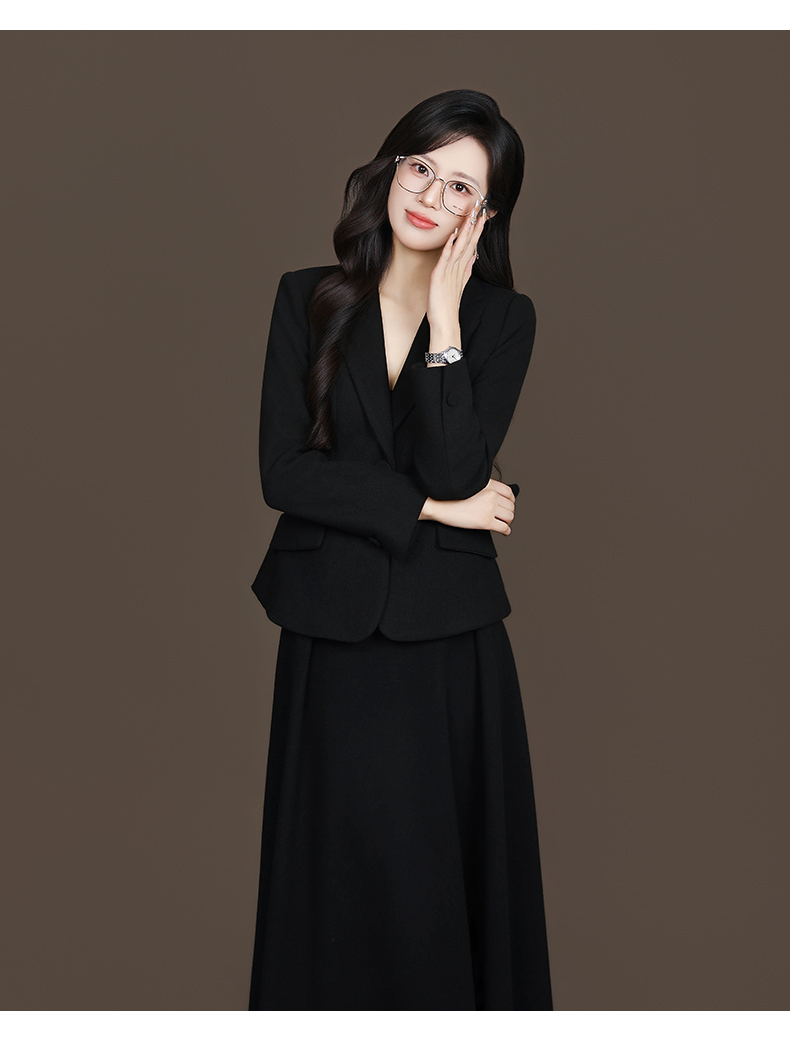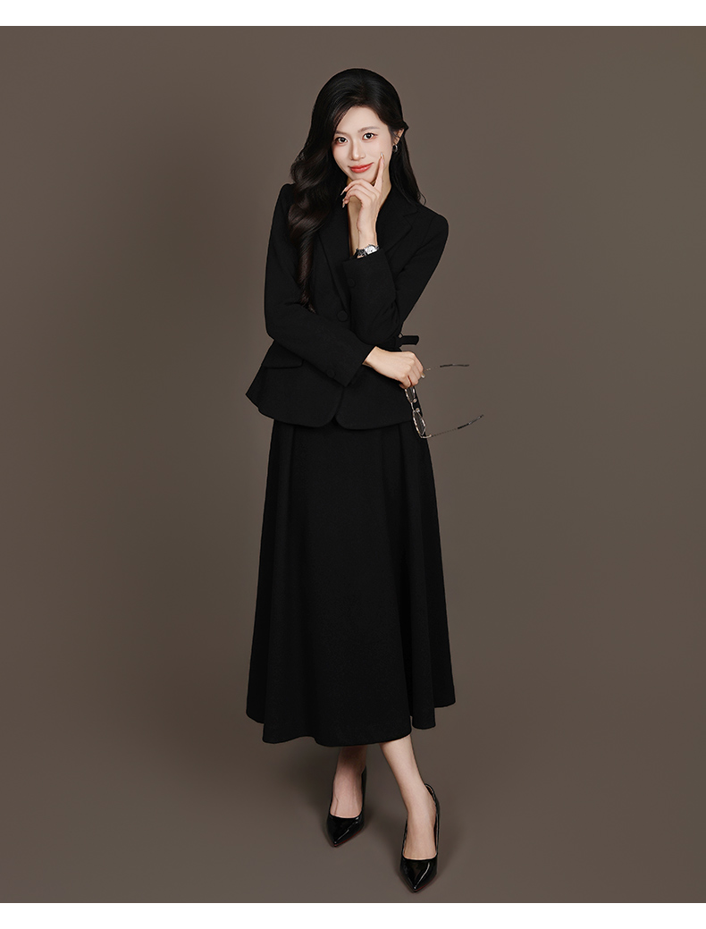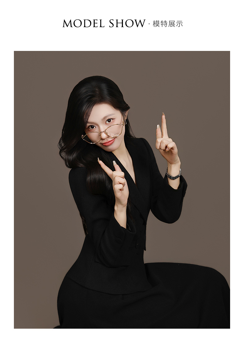 法小曼*子珍专款/通勤风黑色毛呢西装套装女修身收腰呢子职业套裙气质秋冬款