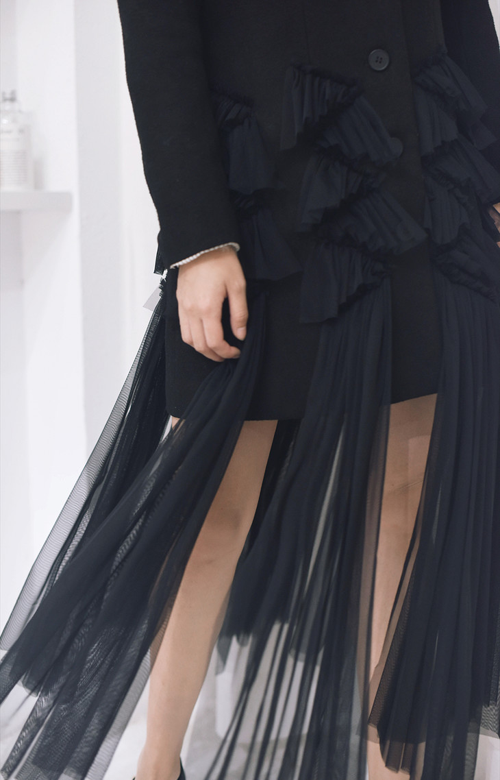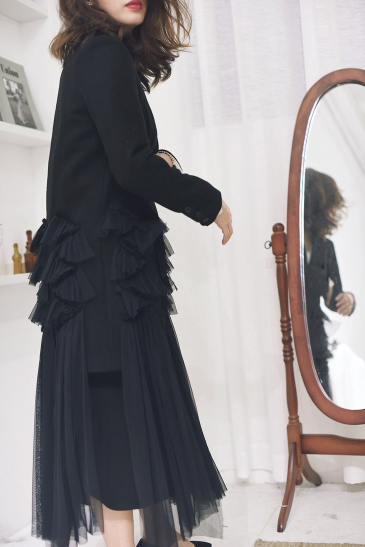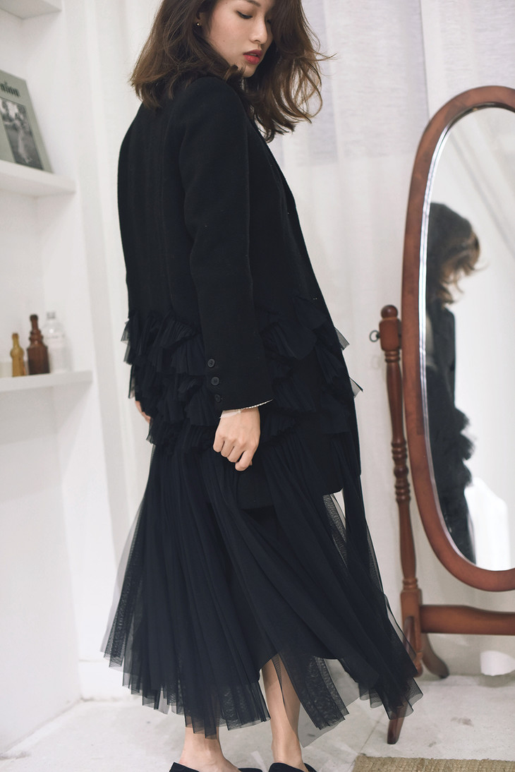 AtelierMissLu / Nicholas 黑色装饰拼纱羊毛大衣