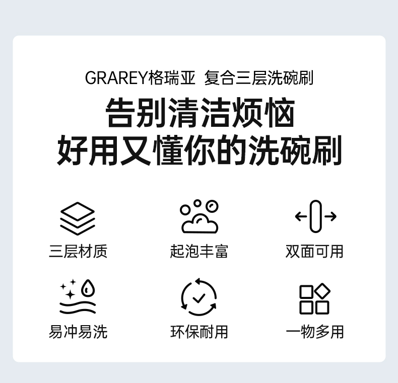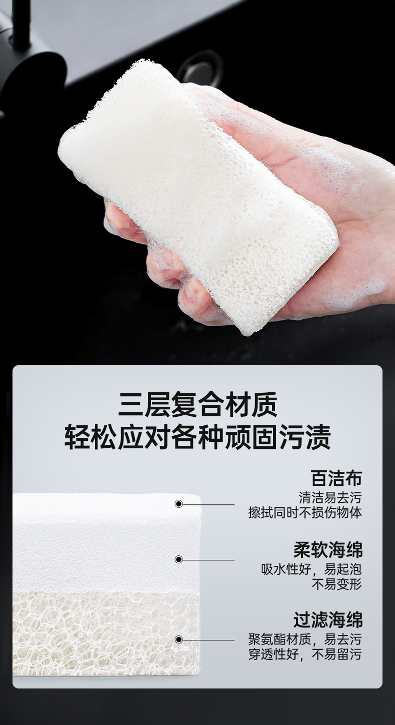 【4包20片】Grarey 格瑞亚 复合三层海绵擦 强力去污 易起泡 省洗洁精 1包5片装 A-3291