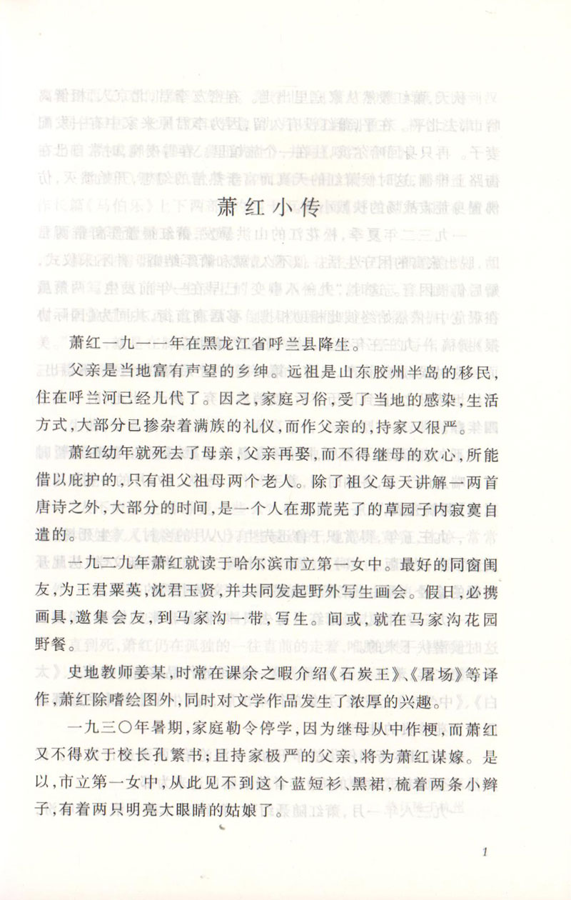 呼兰河传正版原著萧红著人民文学出版社五年级必读课外书四六年级中小学生必读经典畅销书课外阅读书籍