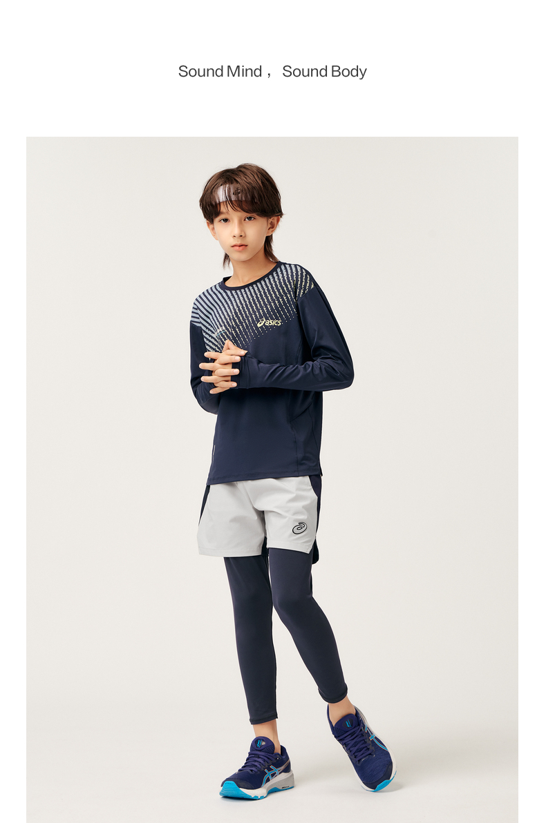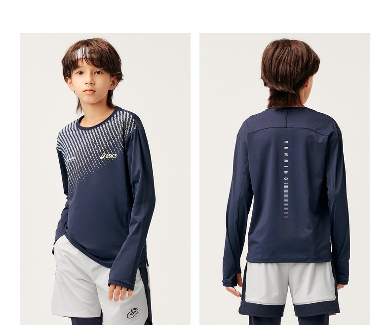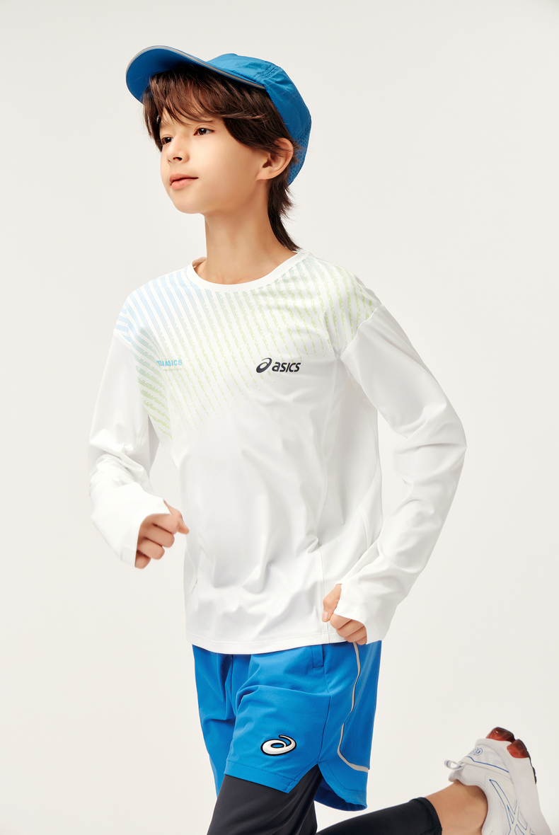 ASICS/亚瑟士童装2024年秋季新款男女童运动休闲长袖百搭针织T恤