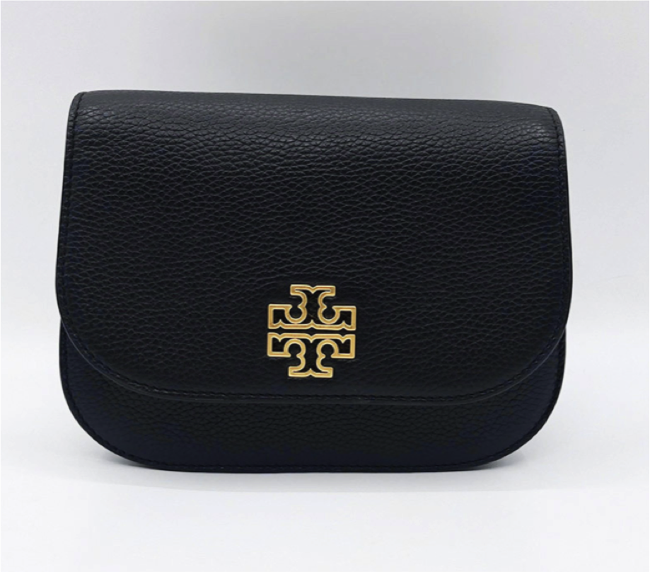 TORY BURCH Britten 金色图案徽标Logo翻盖皮革 马鞍包单肩斜挎包 黑色