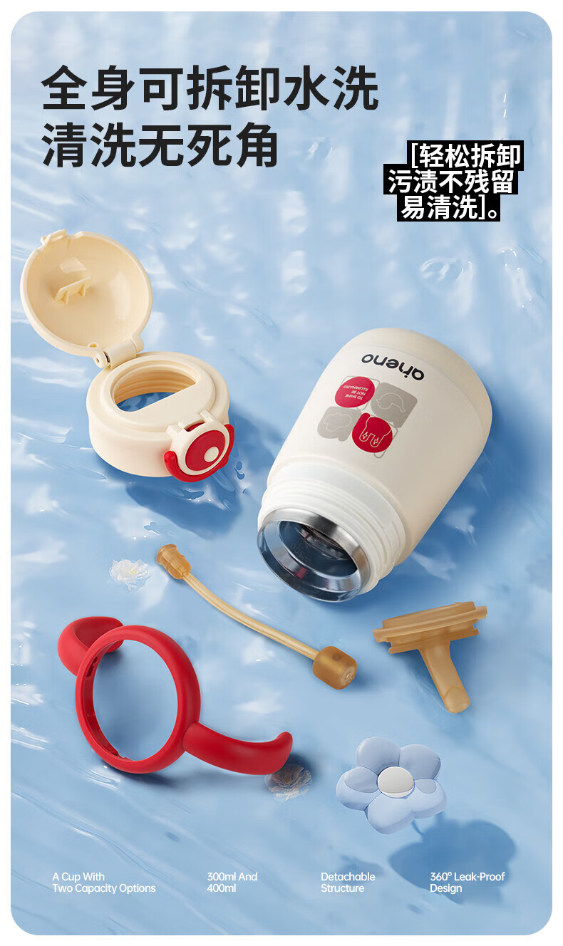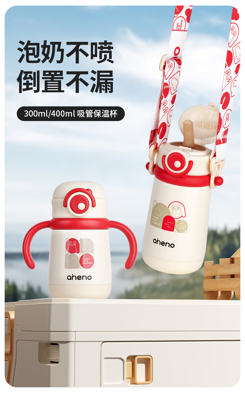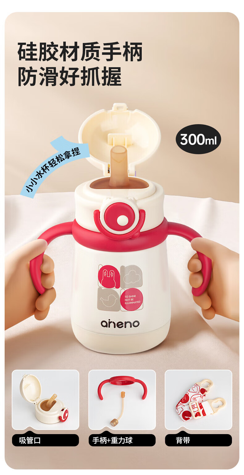 恩尼诺萌趣兔两用儿童吸管保温杯300ml