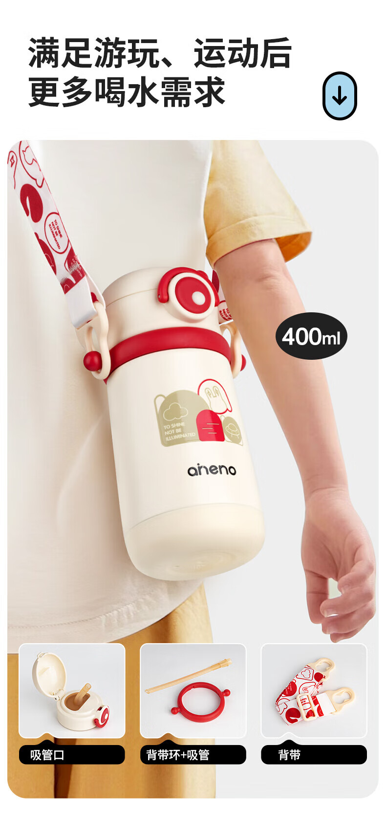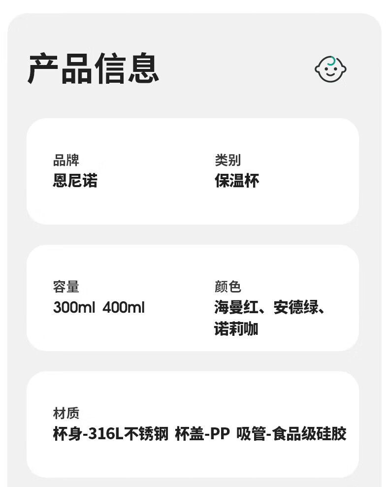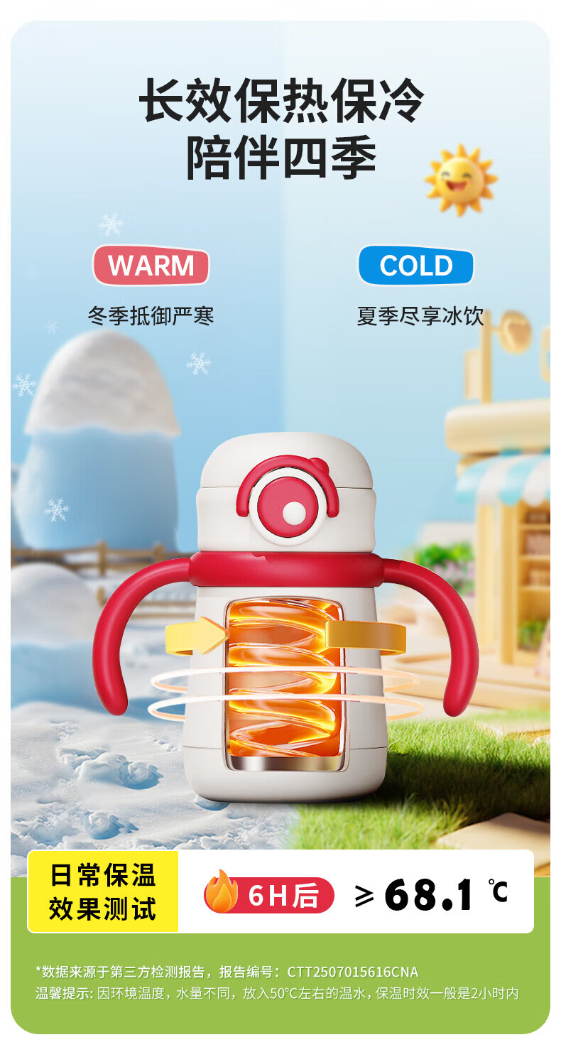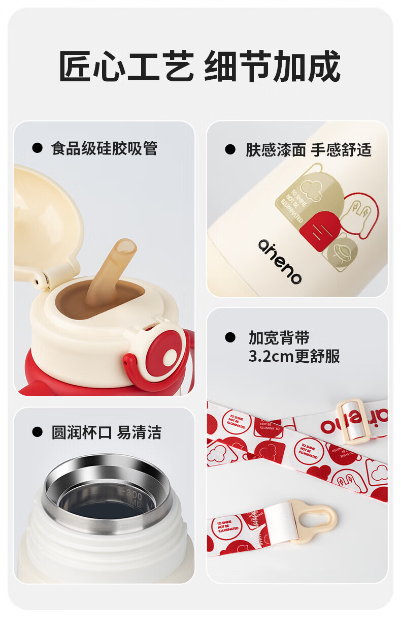 恩尼诺萌趣兔两用儿童吸管保温杯300ml