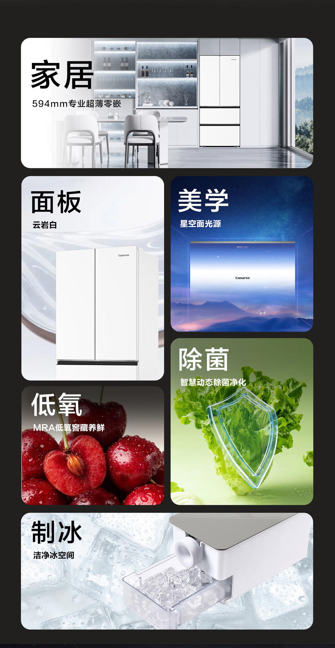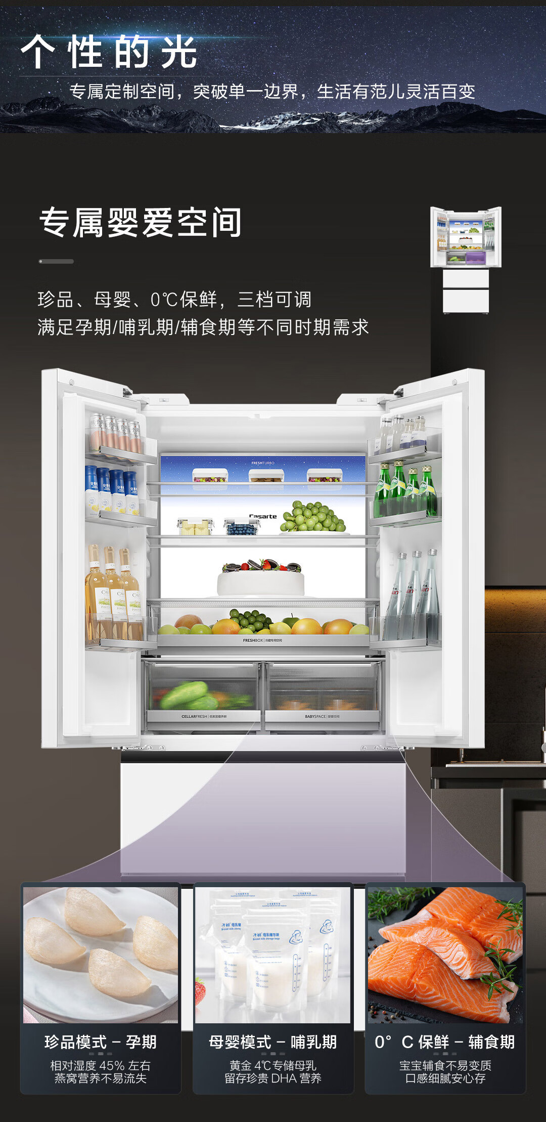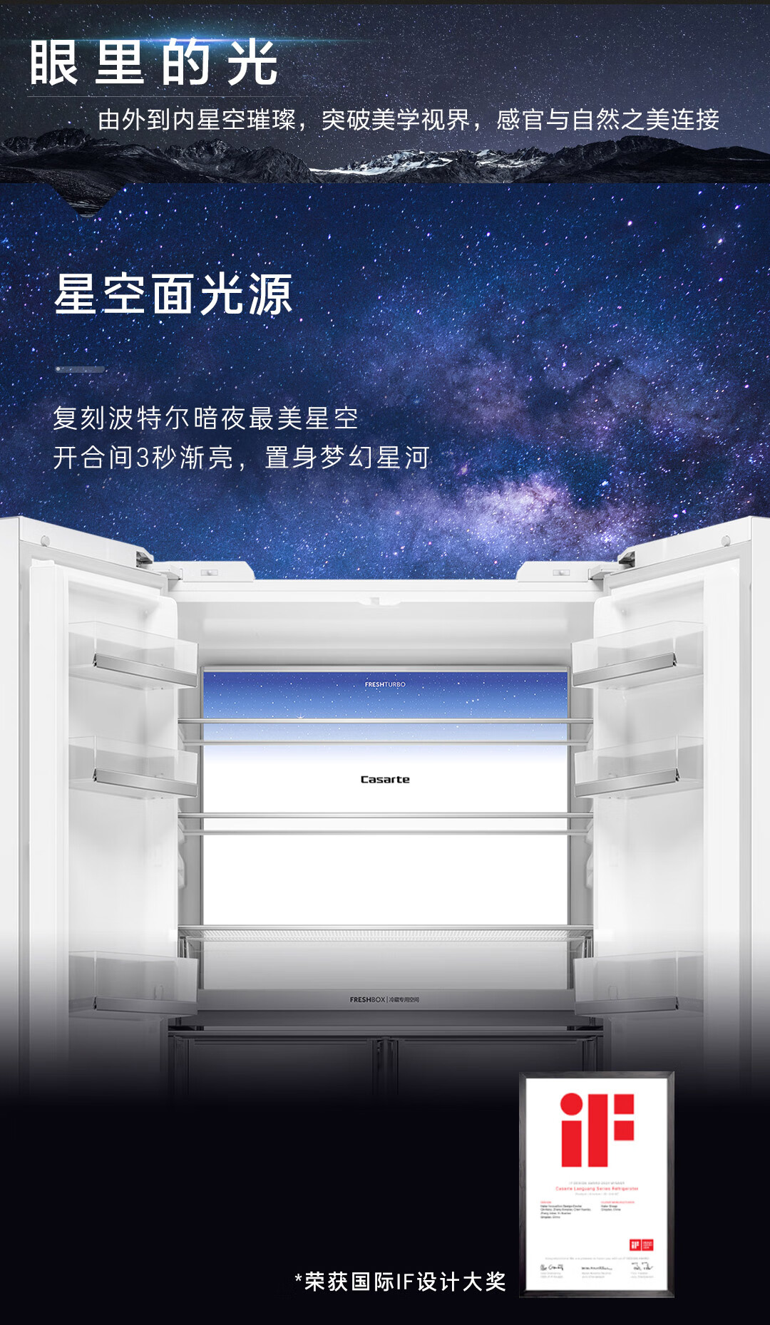 卡萨帝(Casarte)星空冰箱487升薄零嵌入式法式多门家用电冰箱 一级能效 智慧动态除菌净化