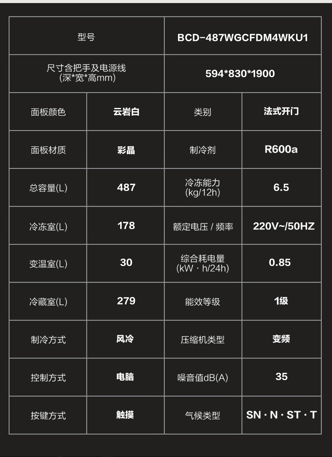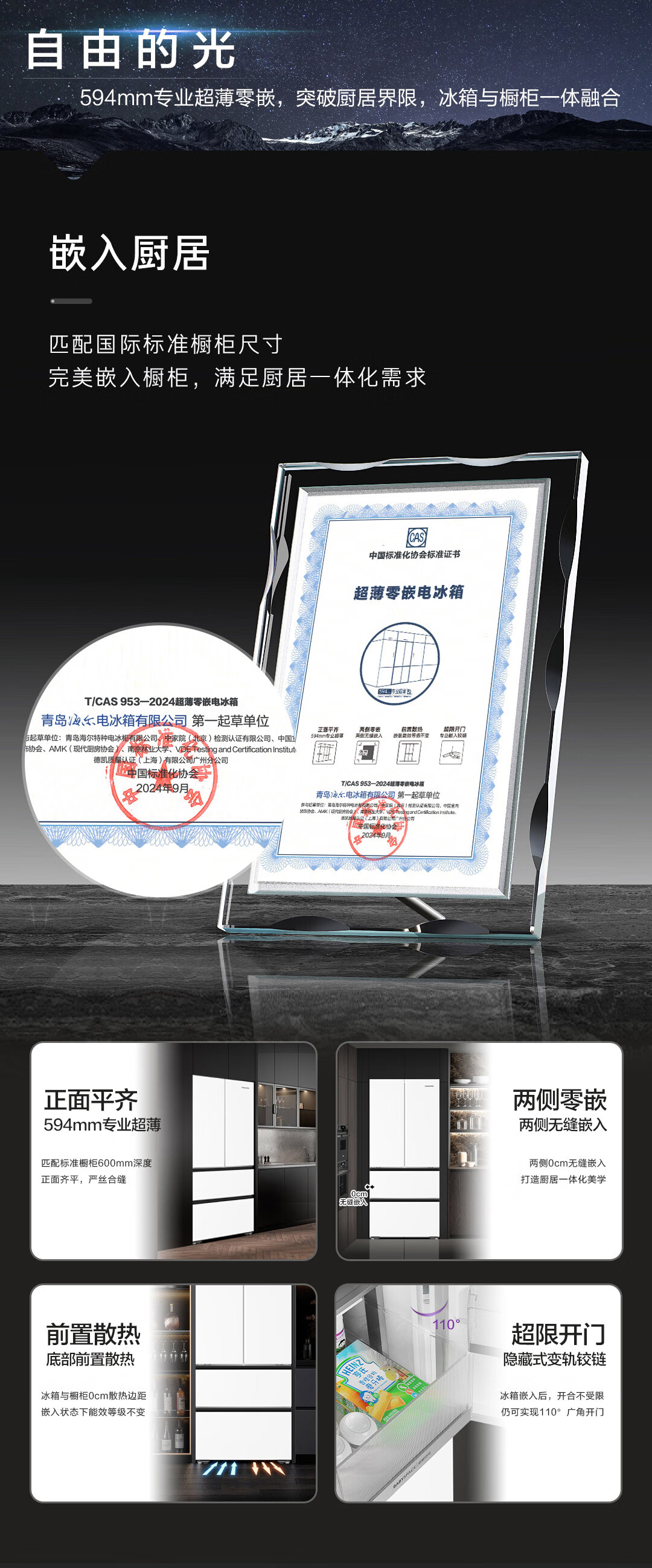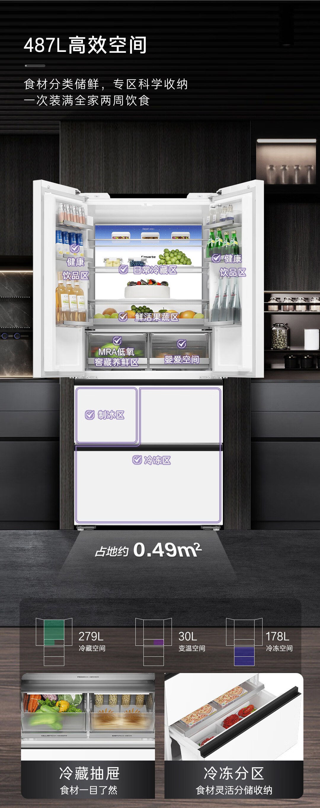卡萨帝(Casarte)星空冰箱487升薄零嵌入式法式多门家用电冰箱 一级能效 智慧动态除菌净化