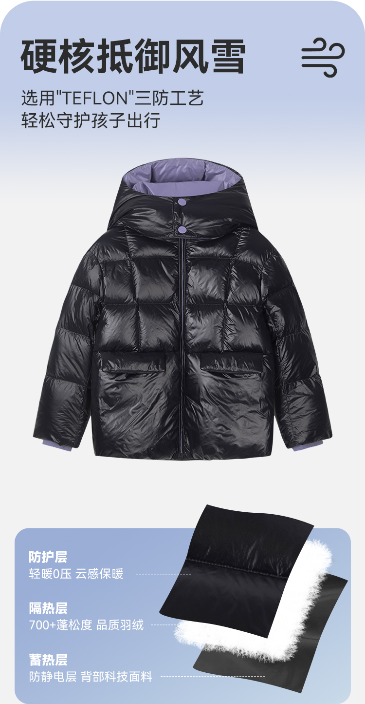 水孩儿童装2024冬季新款女童羽绒服抑菌轻盈中大童保暖外套连帽款