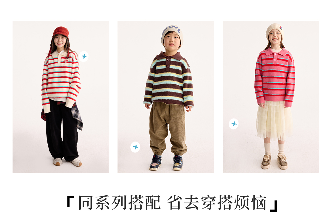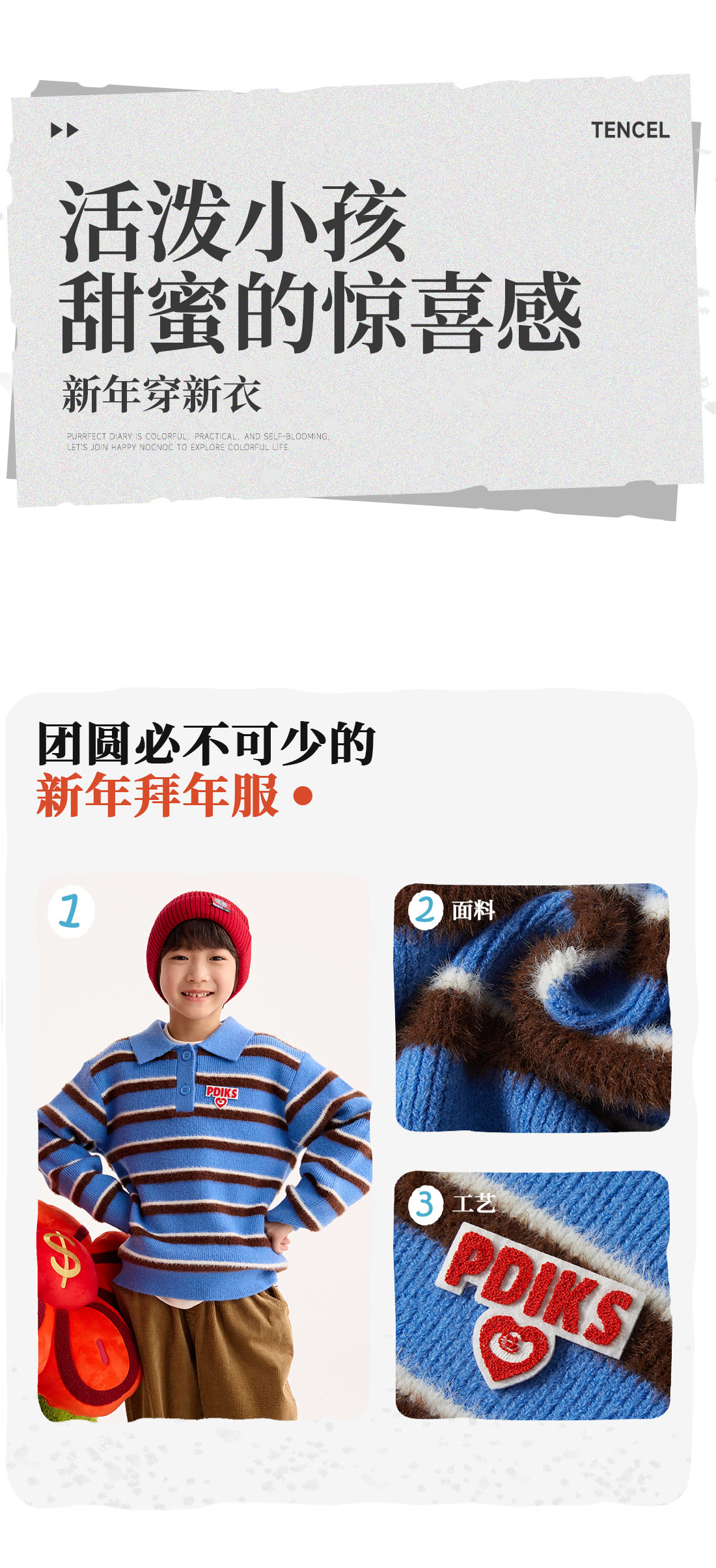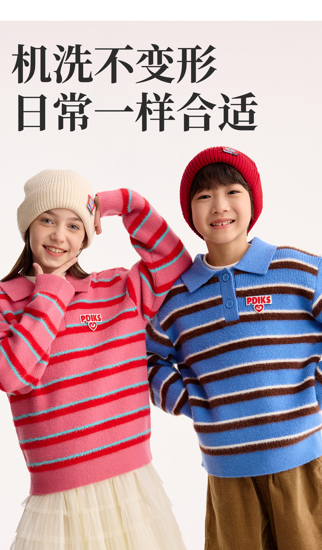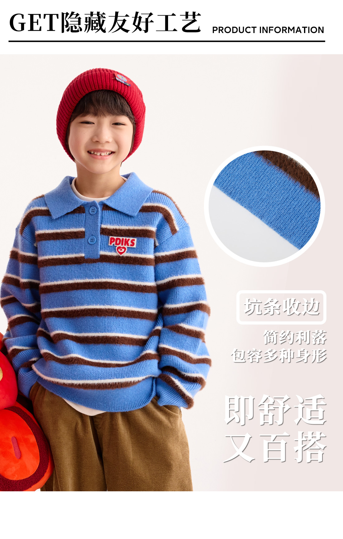 fx-【超级马力】咕噜日记儿童条纹POLO领毛衣亲子装男女童松软感上衣PDMY2515