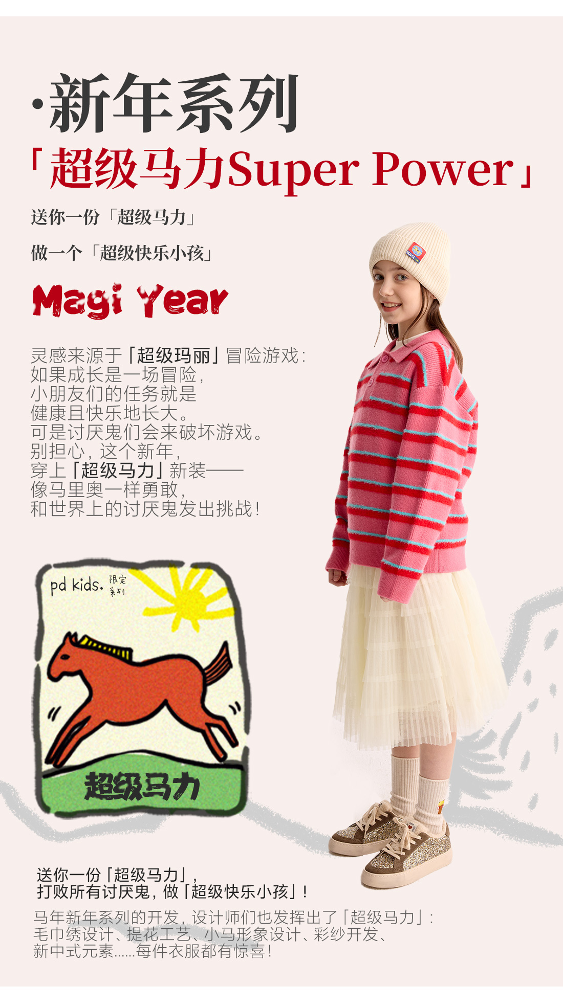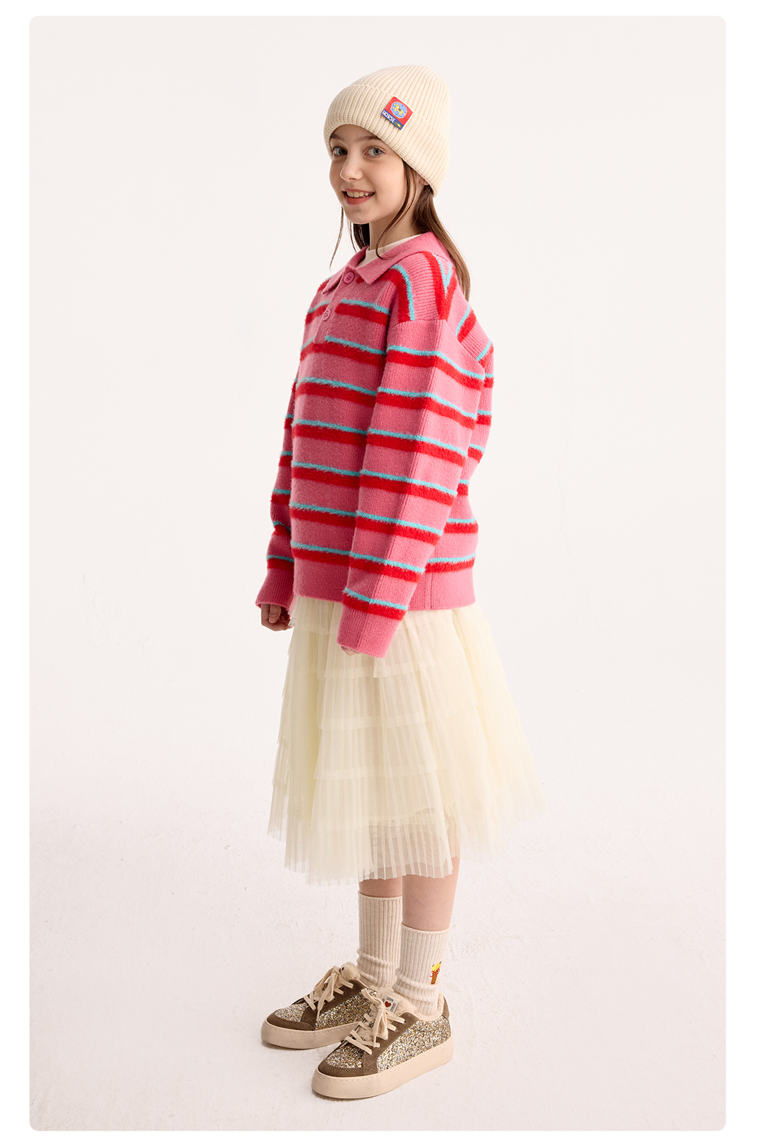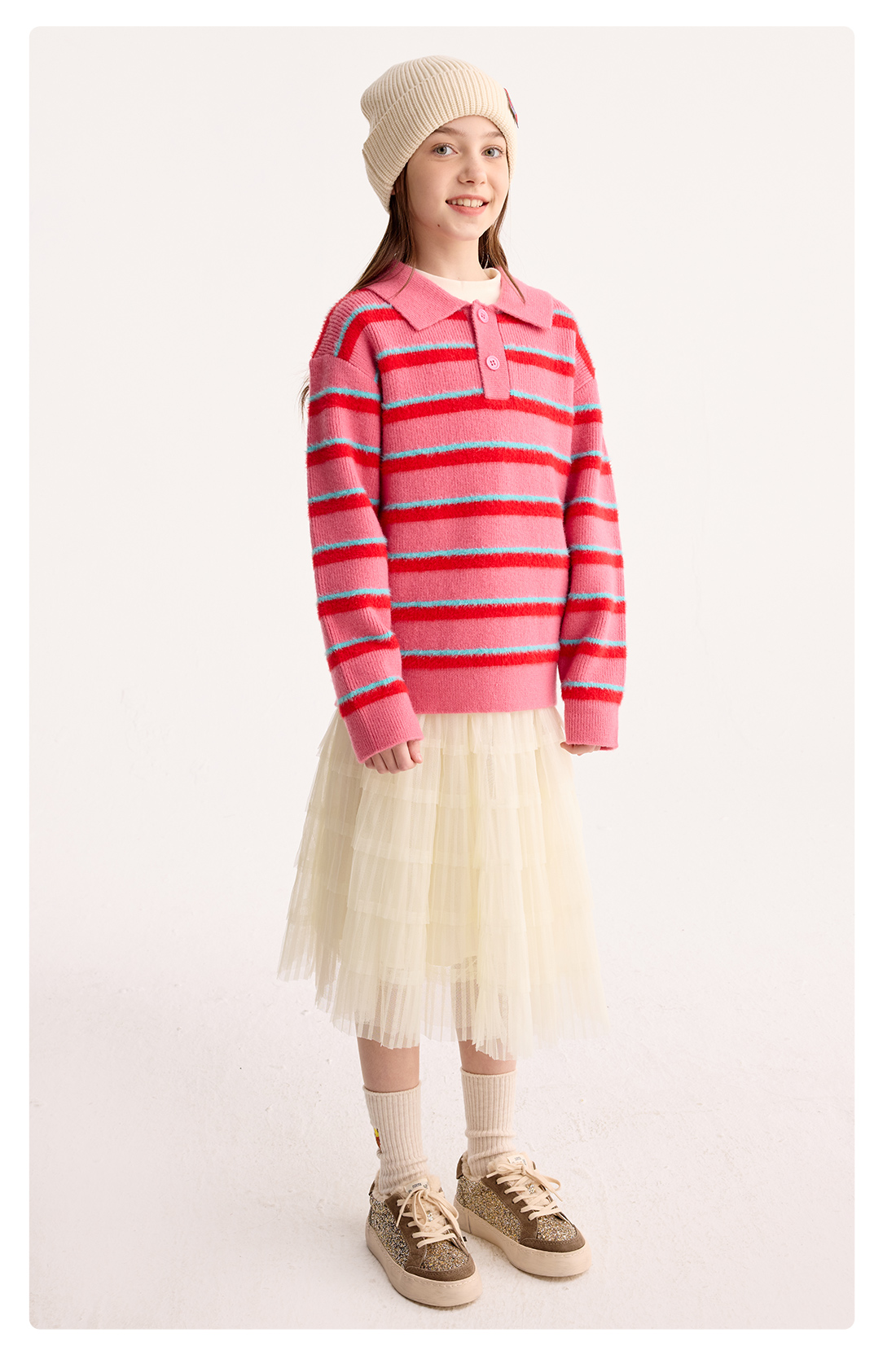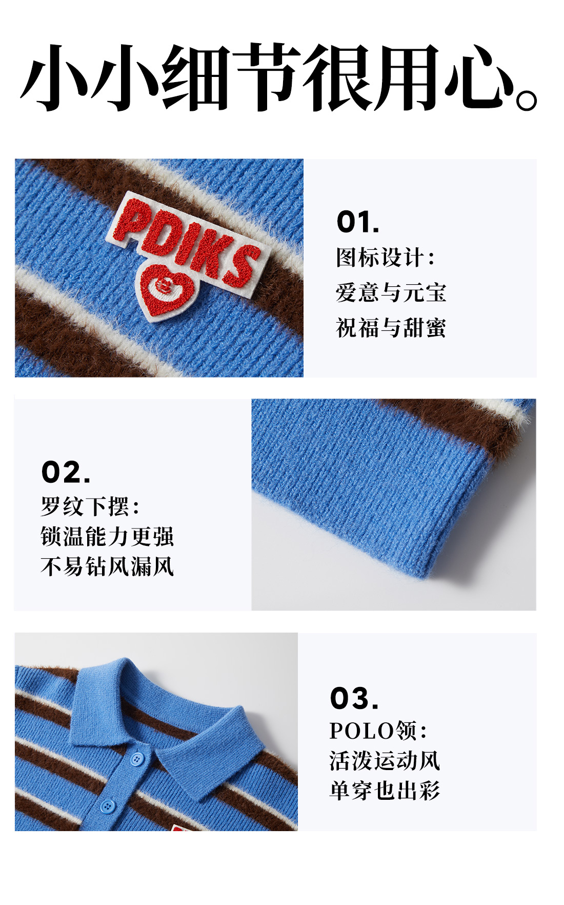 fx-【超级马力】咕噜日记儿童条纹POLO领毛衣亲子装男女童松软感上衣PDMY2515