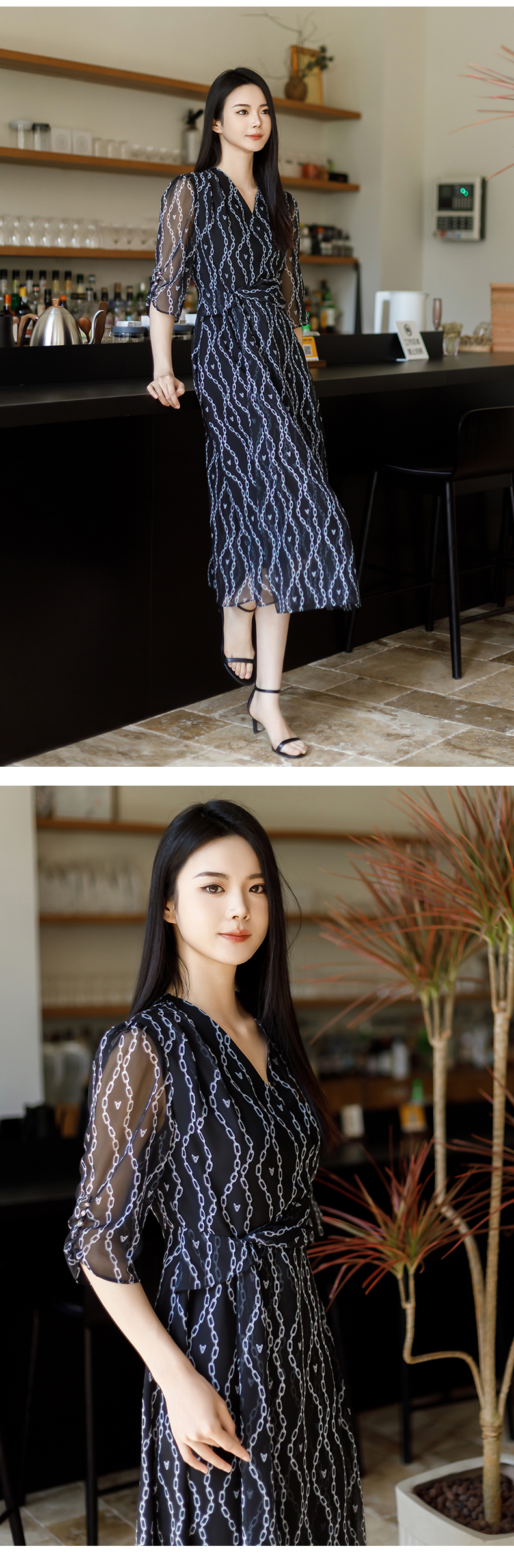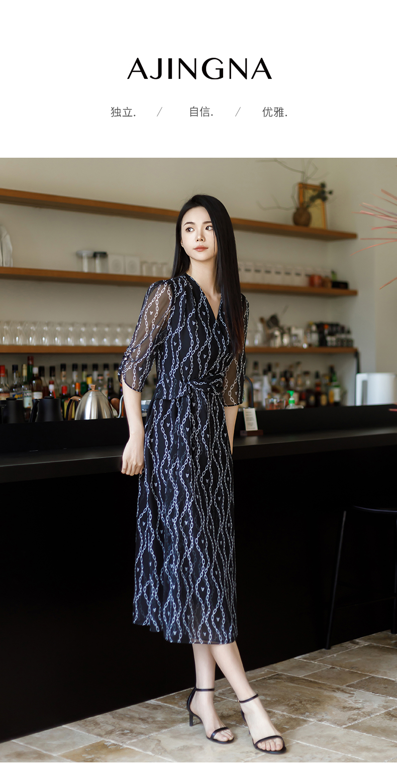 【商场同款】阿菁娜夏季新款V领收腰连衣裙A30X112095