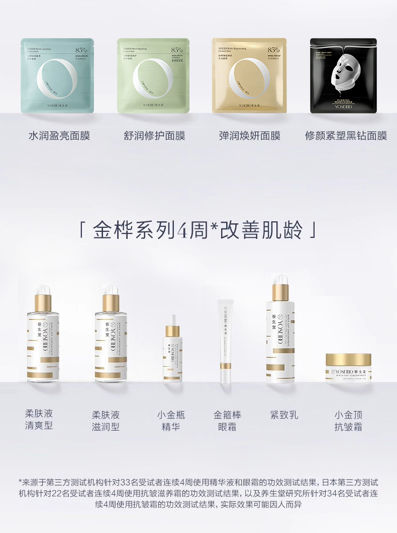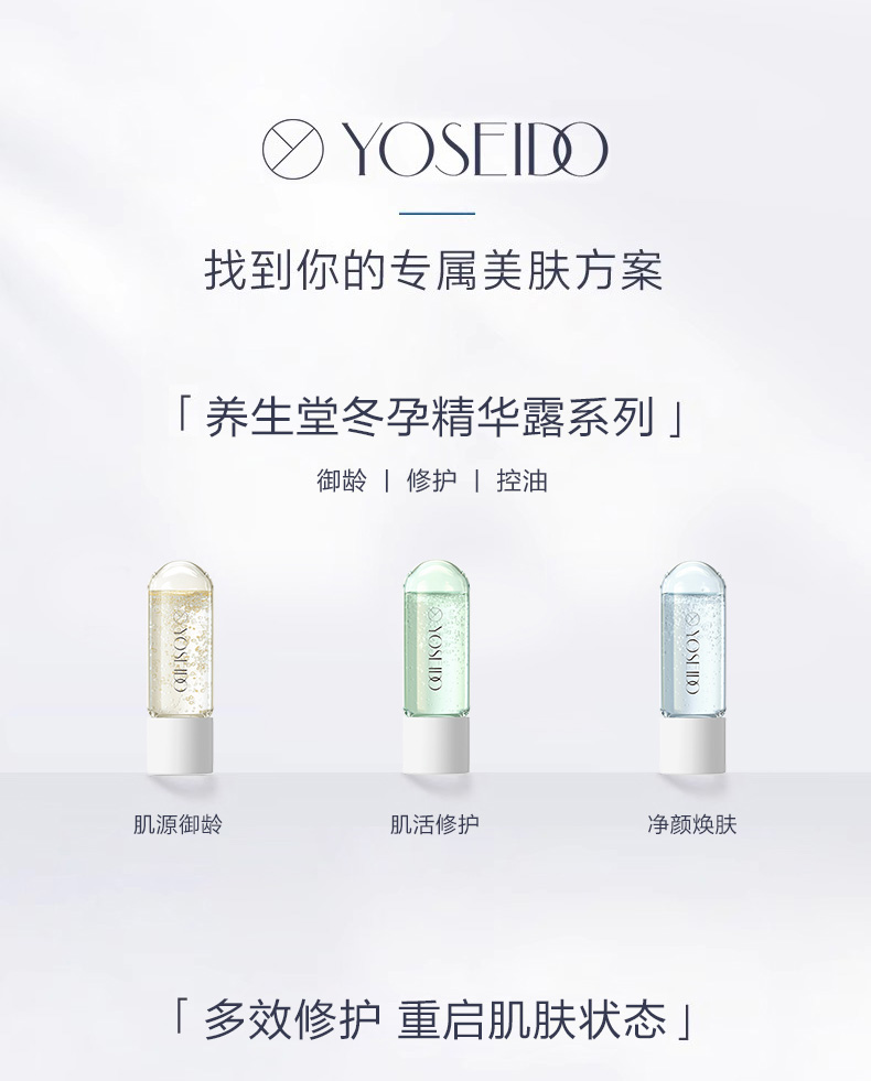 - 养生堂YOSEIDO,高端护肤品牌。专研白桦原液•来自北纬45° 的细胞抗老成分,源自1772年《丹麦药典》。不额外添加一滴水,让青春永续。